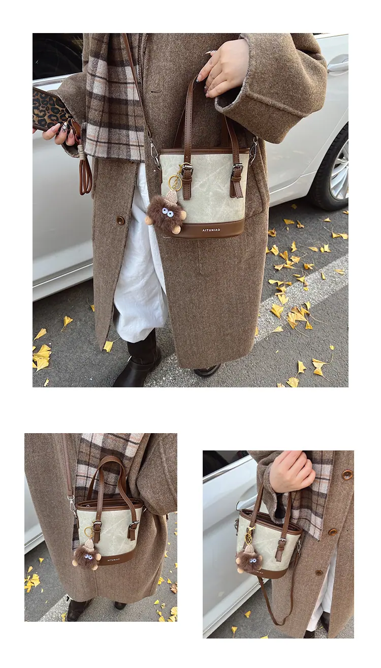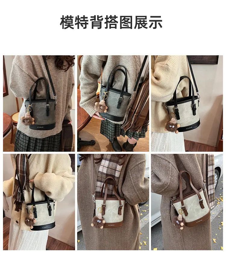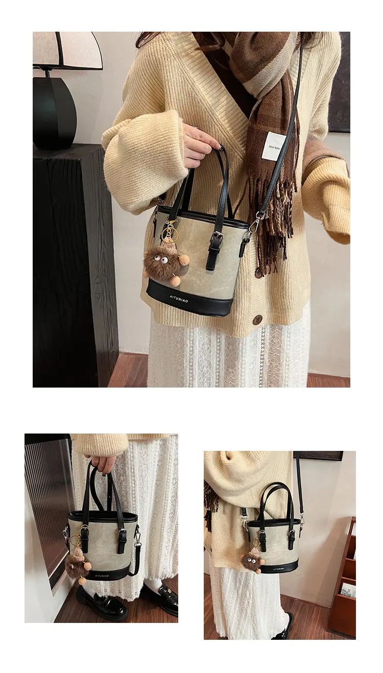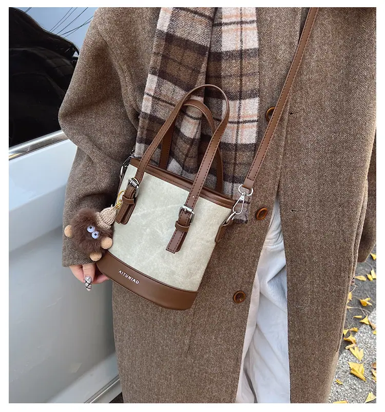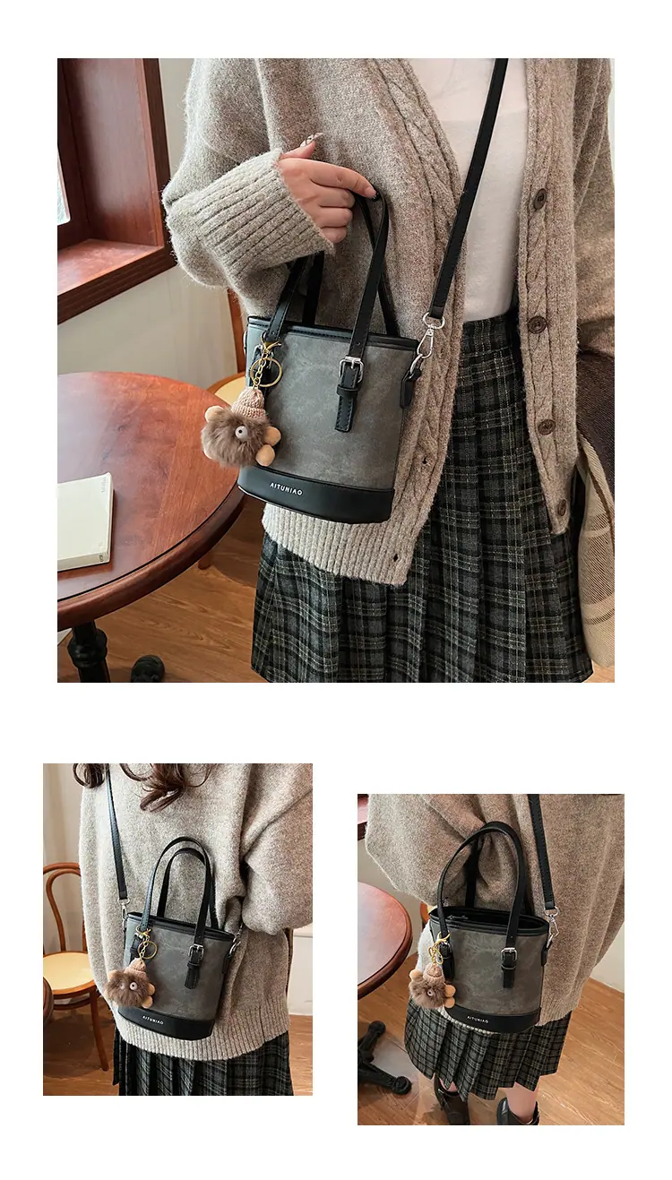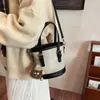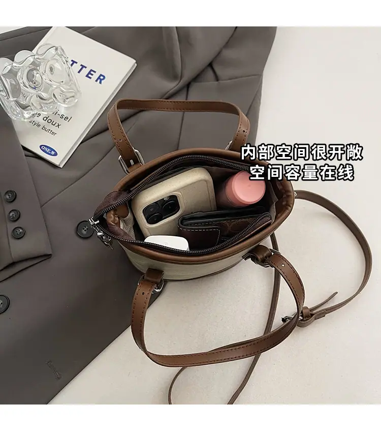Bolso de mano pequeño sencillo con bloques de color para mujer 2025 otoño nuevo estilo coreano tote bolso cubo nicho retro para ir al trabajo bandolera