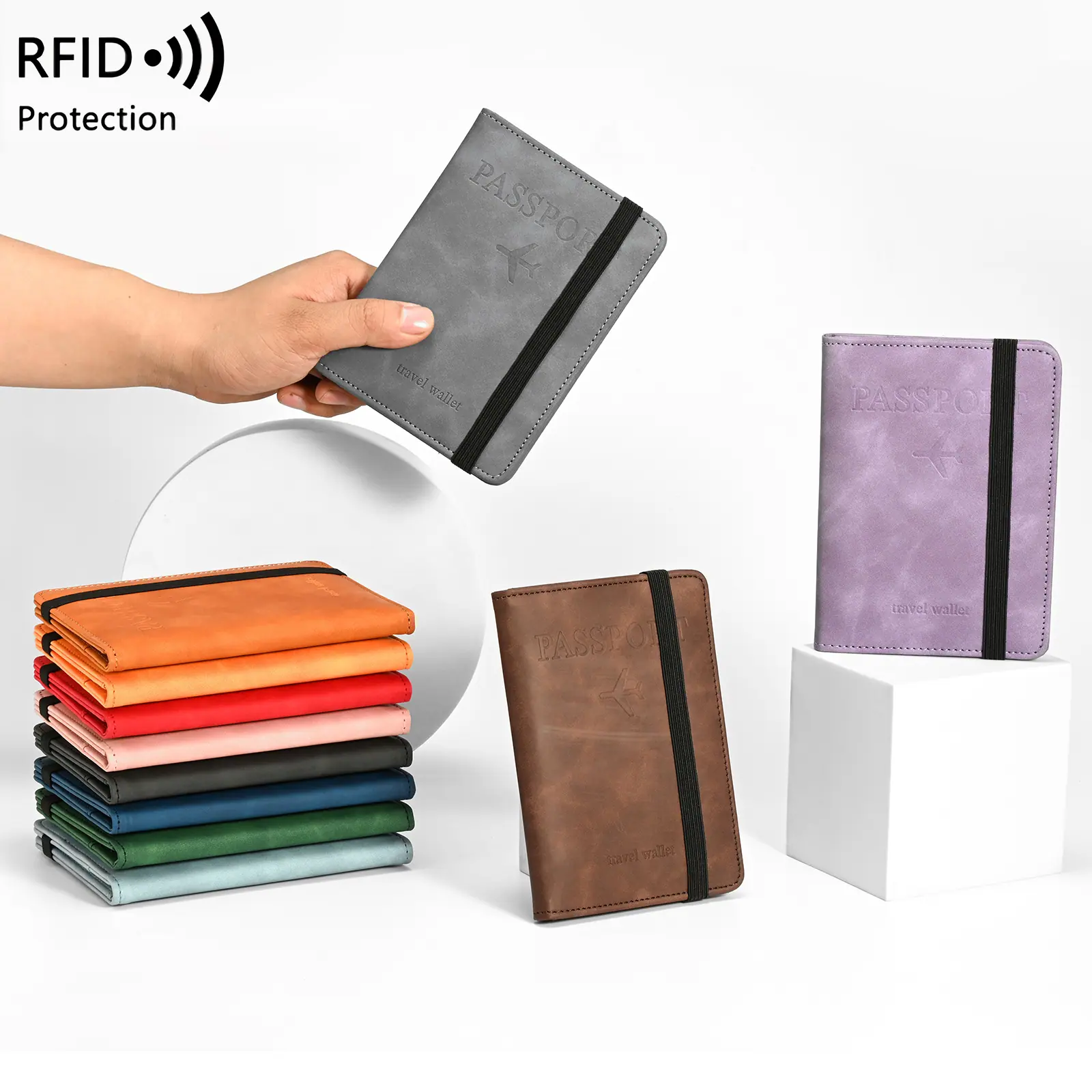 Bolsa de pasaporte antirrobo RFID transfronteriza, estuche de cuero PU, moda simple, tarjetero multifuncional, bolsa para documentos, tarjetero de viaje