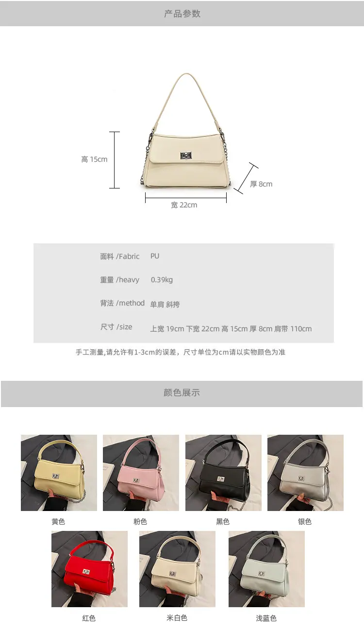 2025 Primavera Nueva Moda y Tendencia Bolso de Axila Bolso de Hombro Casual de Aspecto Elevado para Mujer Bolso Bandolera de Color Sólido