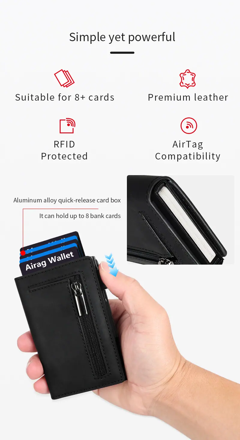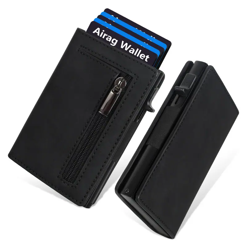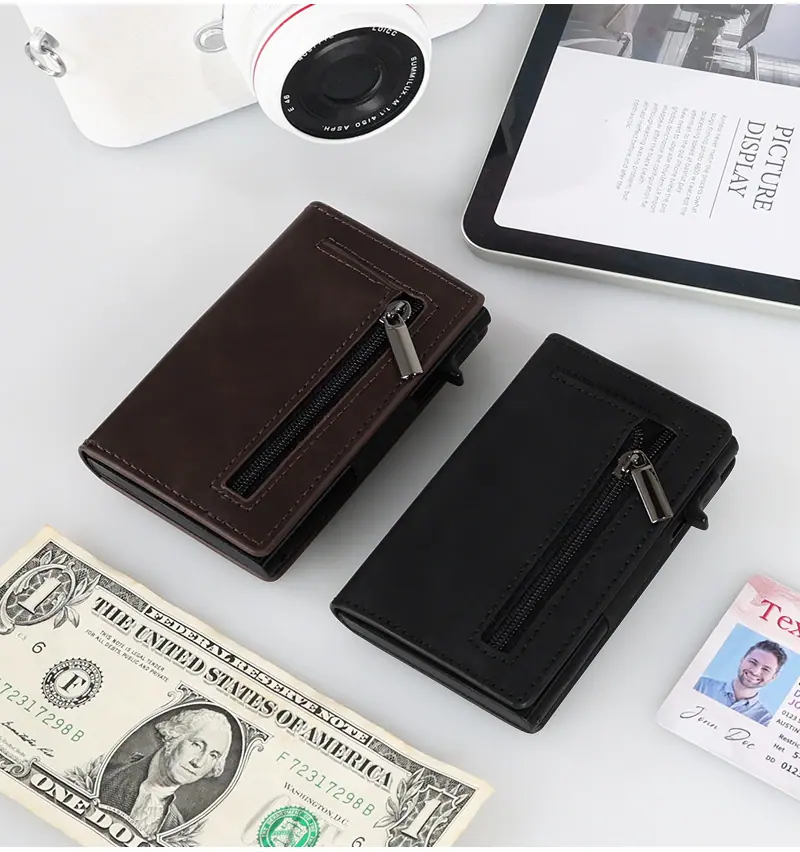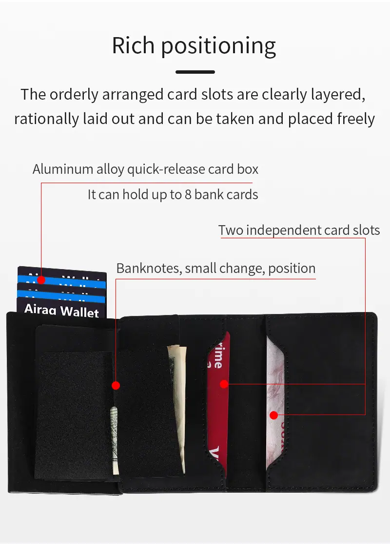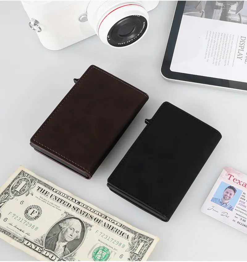 Nuevo tarjetero de aluminio rfid de venta caliente transfronteriza, billetera minimalista multifuncional con múltiples ranuras para tarjetas, tarjetero bi-fold para hombre, tarjetero para documentos
