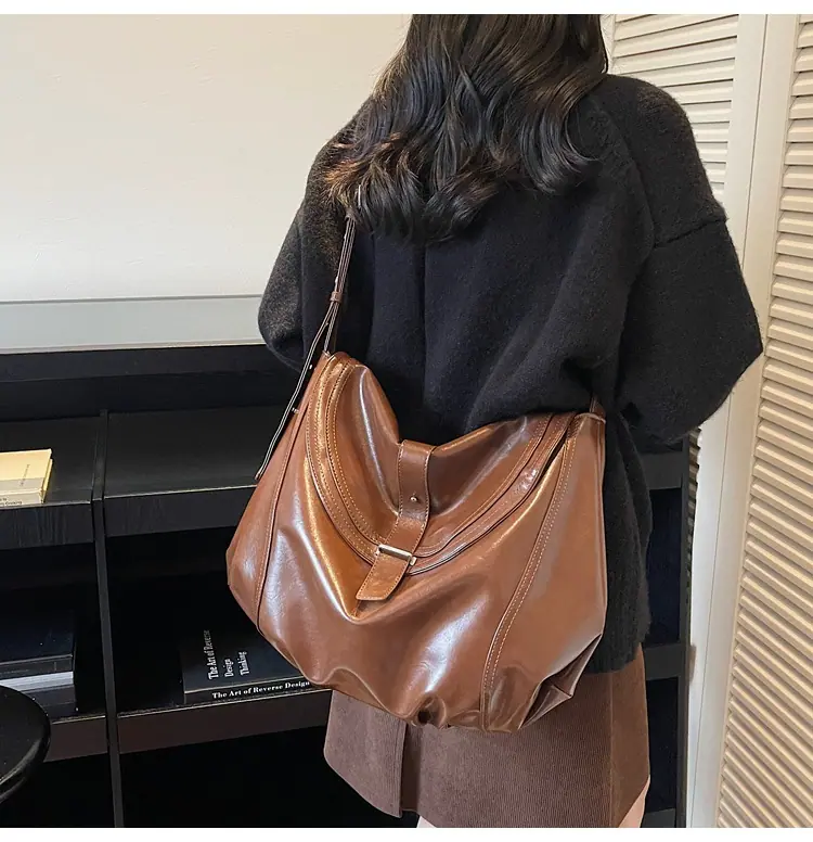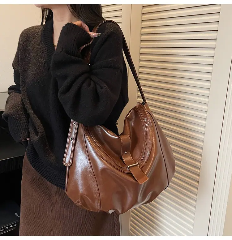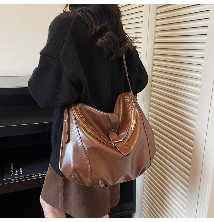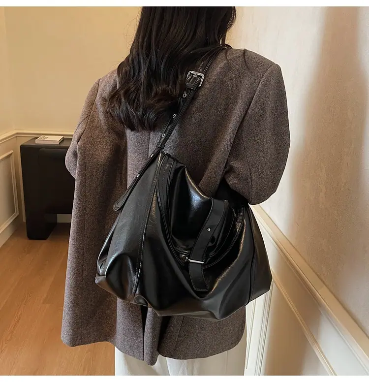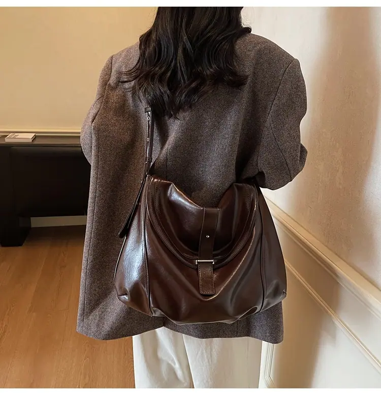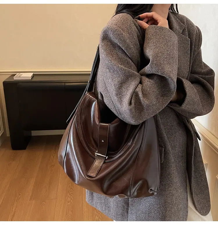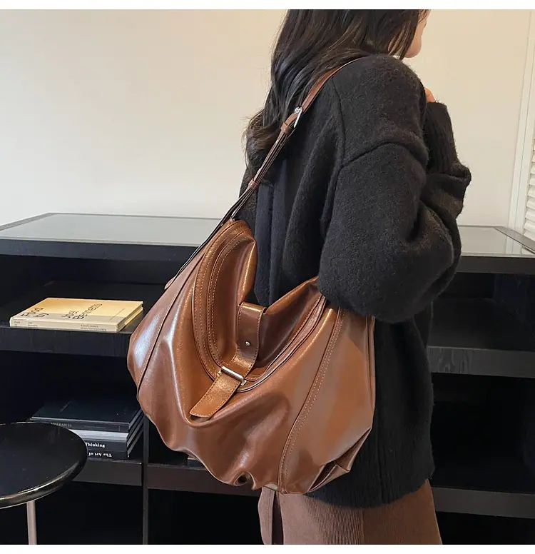 Bolso Retro de Axila Transfronterizo Otoño/Invierno para Mujer 2025 Nuevo Bolso Plisado para Viaje al Trabajo Simple de Gran Capacidad de un Solo Hombro Cruzado