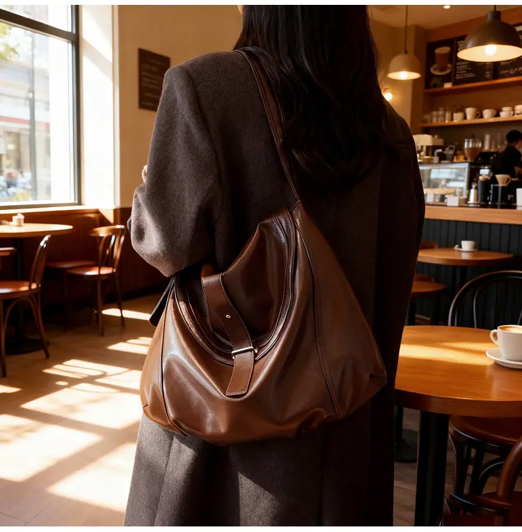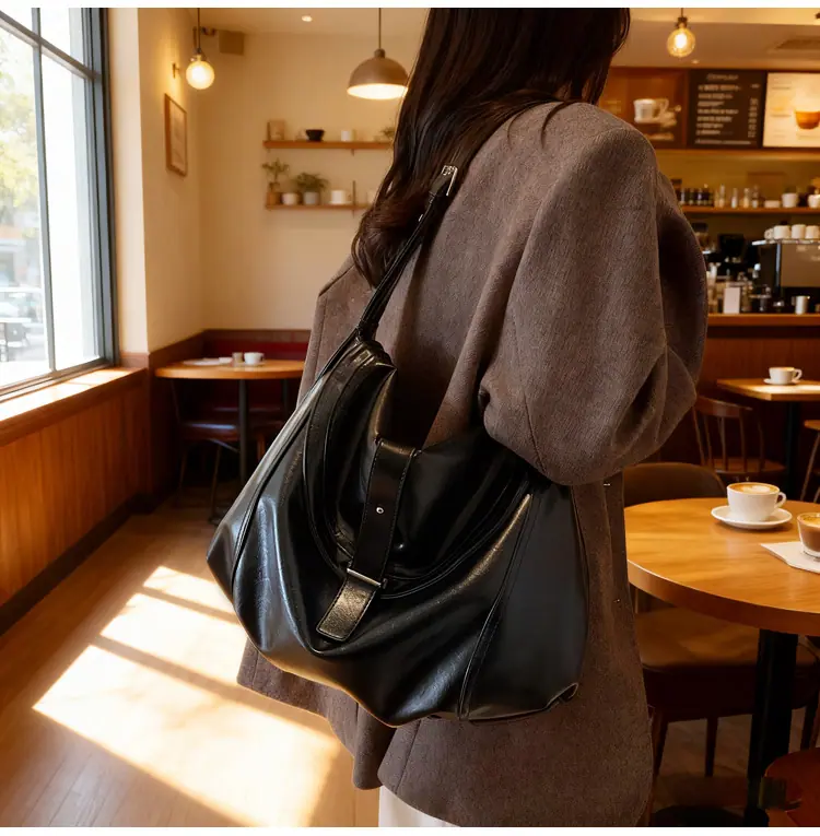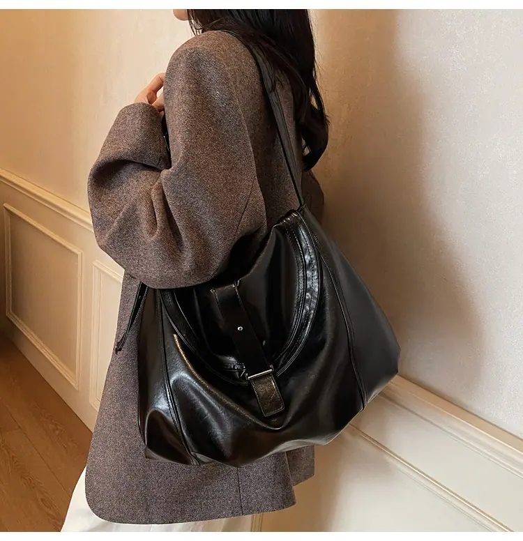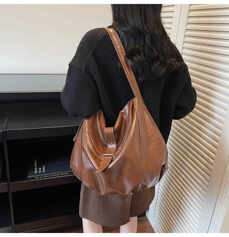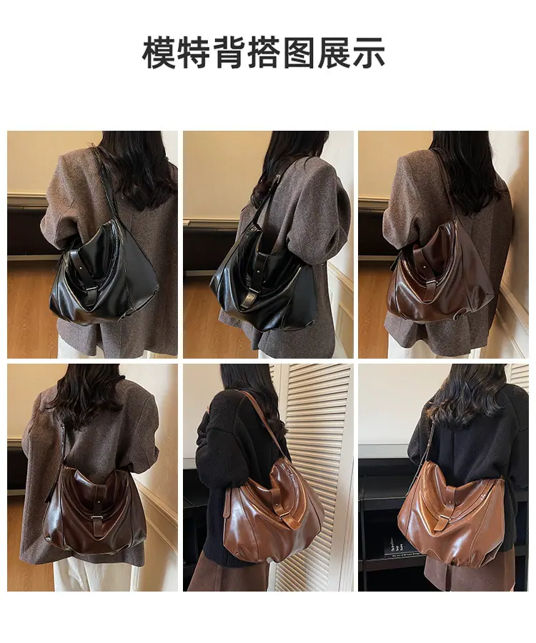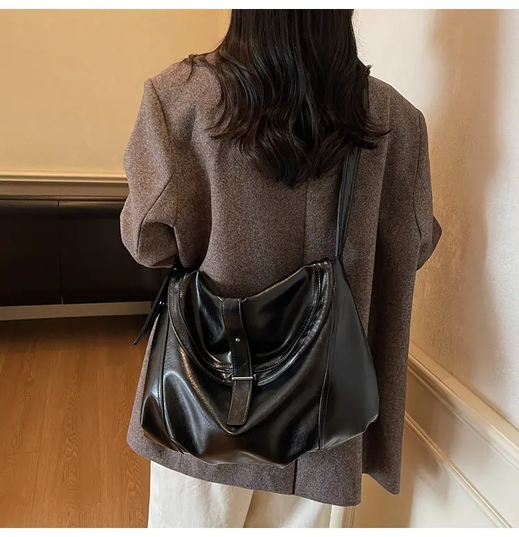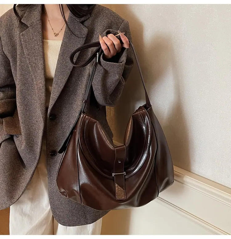 Bolso Retro de Axila Transfronterizo Otoño/Invierno para Mujer 2025 Nuevo Bolso Plisado para Viaje al Trabajo Simple de Gran Capacidad de un Solo Hombro Cruzado