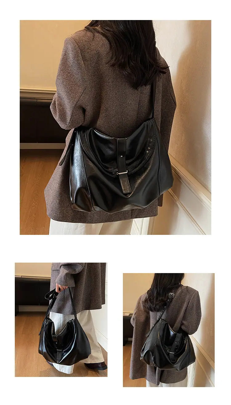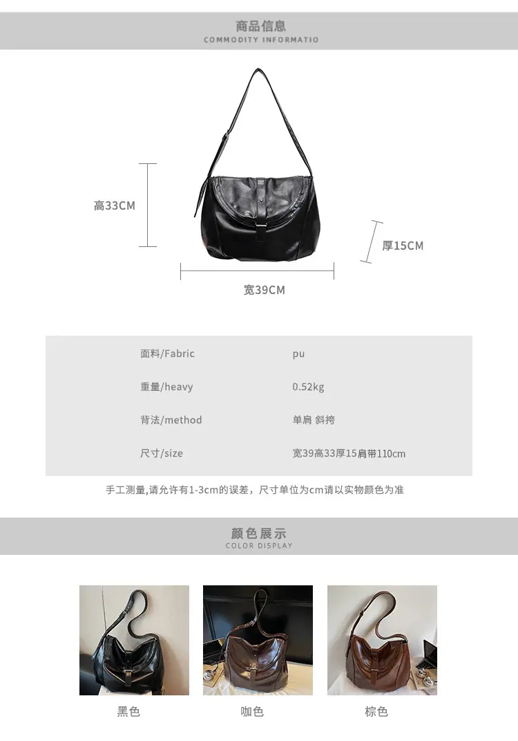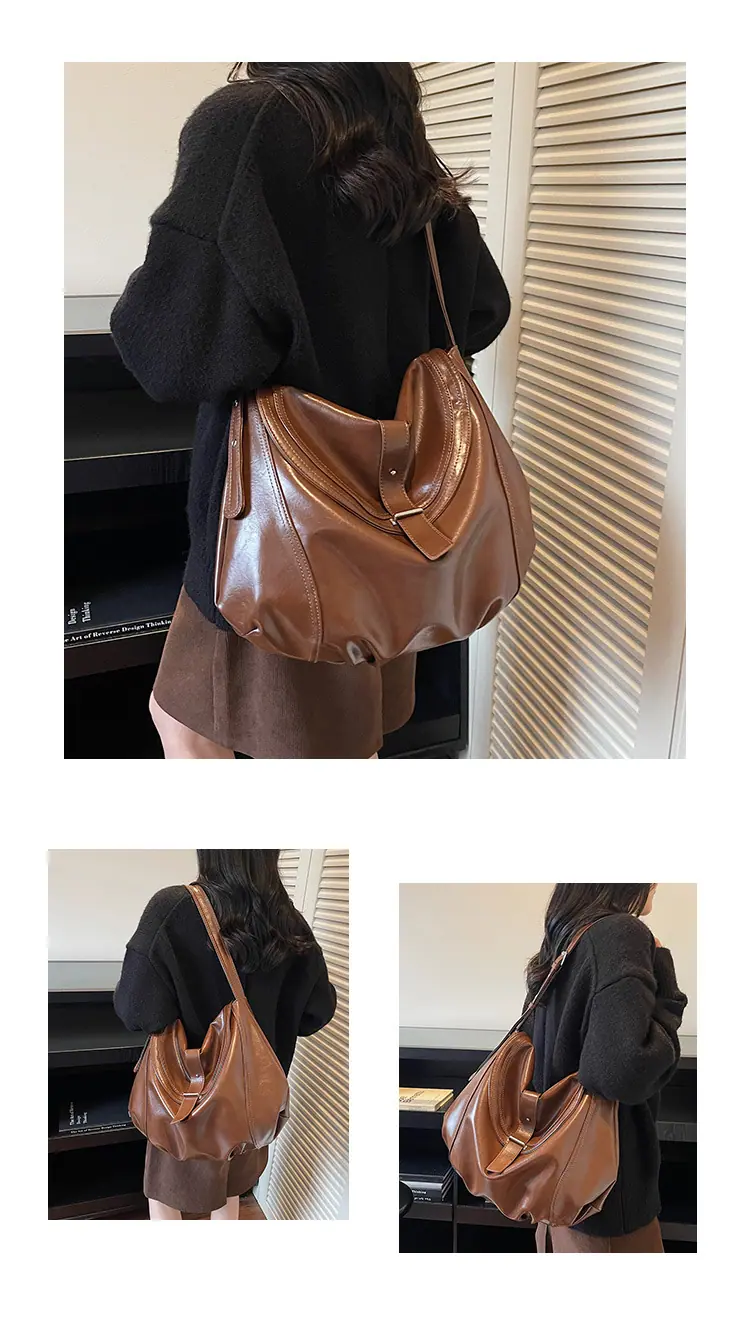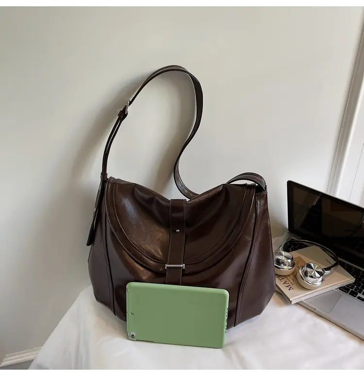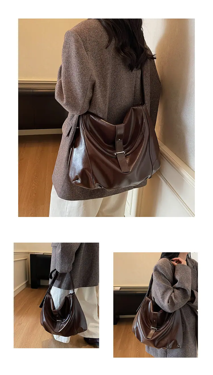 Bolso Retro de Axila Transfronterizo Otoño/Invierno para Mujer 2025 Nuevo Bolso Plisado para Viaje al Trabajo Simple de Gran Capacidad de un Solo Hombro Cruzado