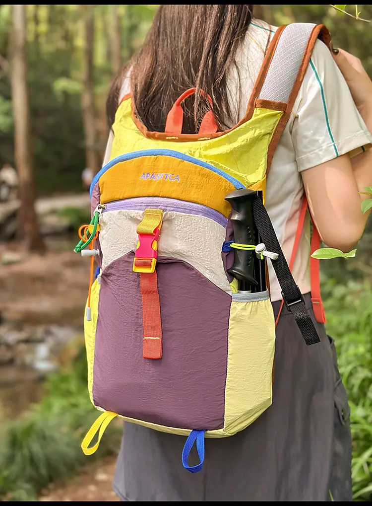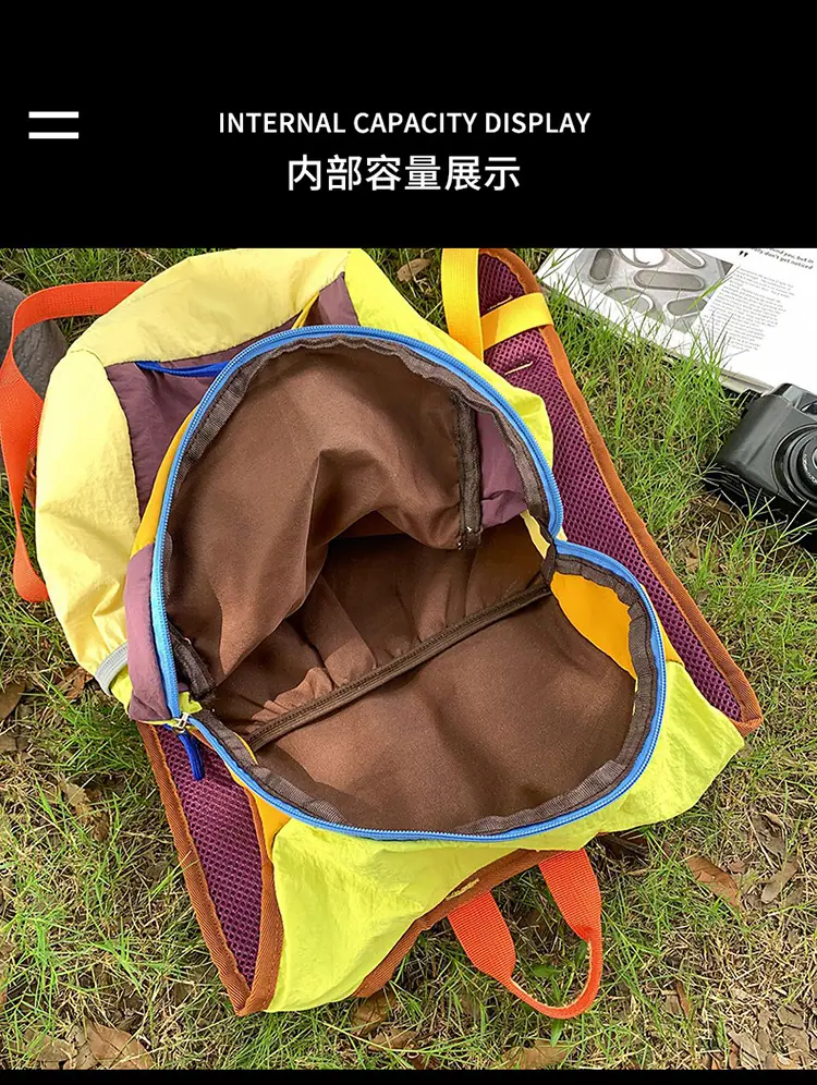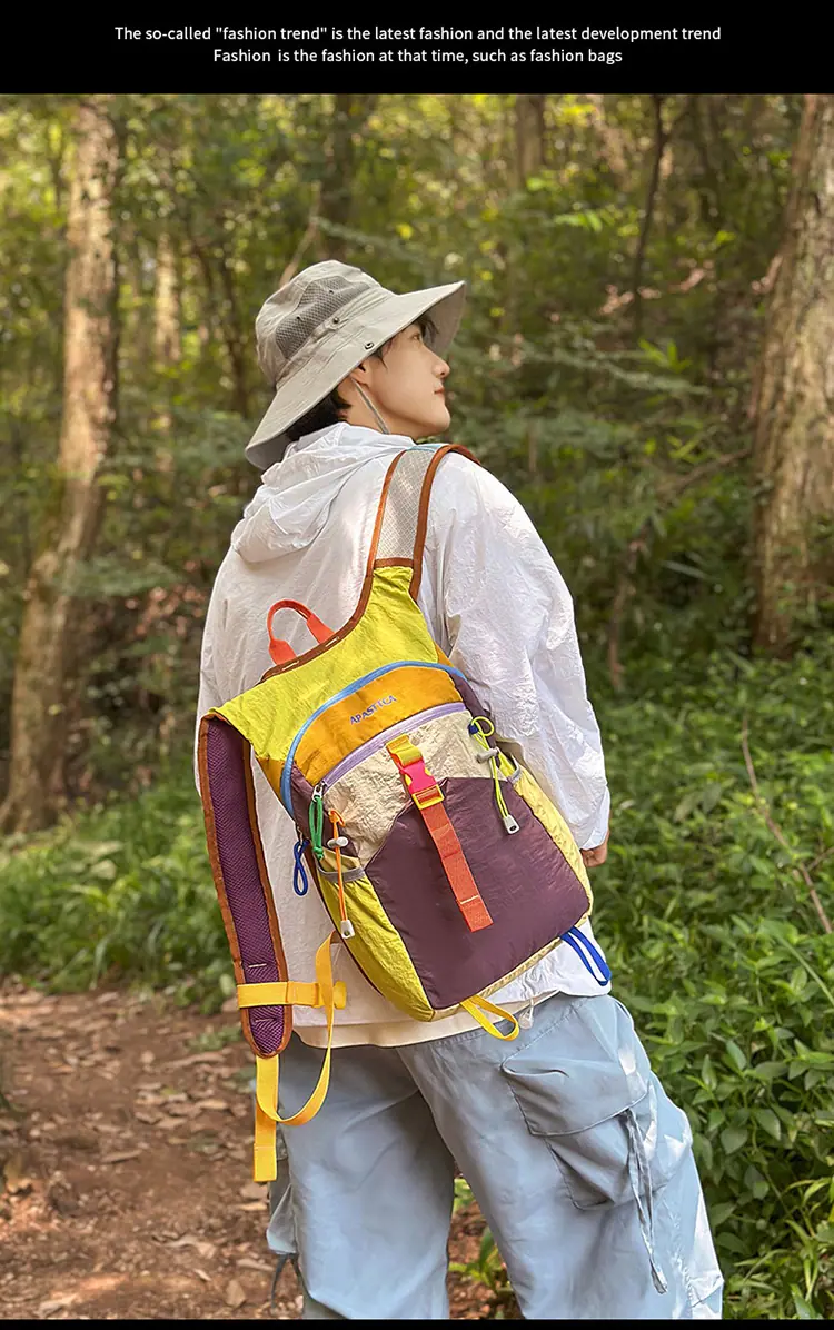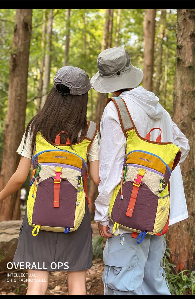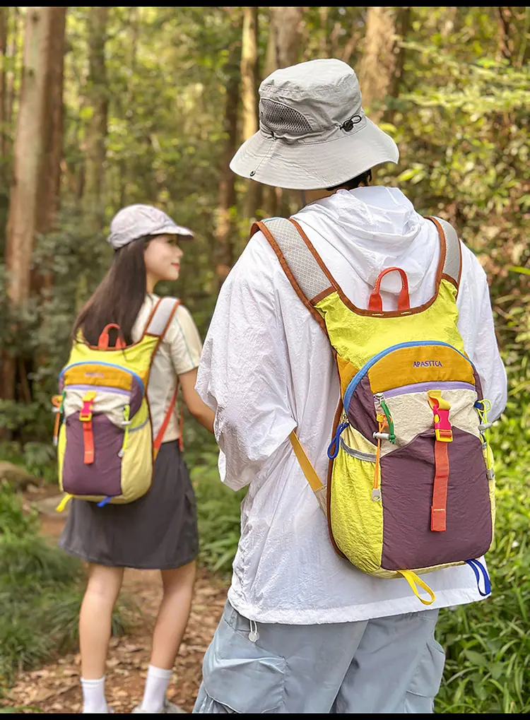 Mochila de Senderismo Impermeable con Bloques de Color de Moda Verano 2025, Mochila de Viaje Ligera y Moderna de Gran Capacidad