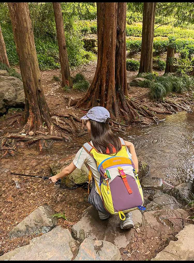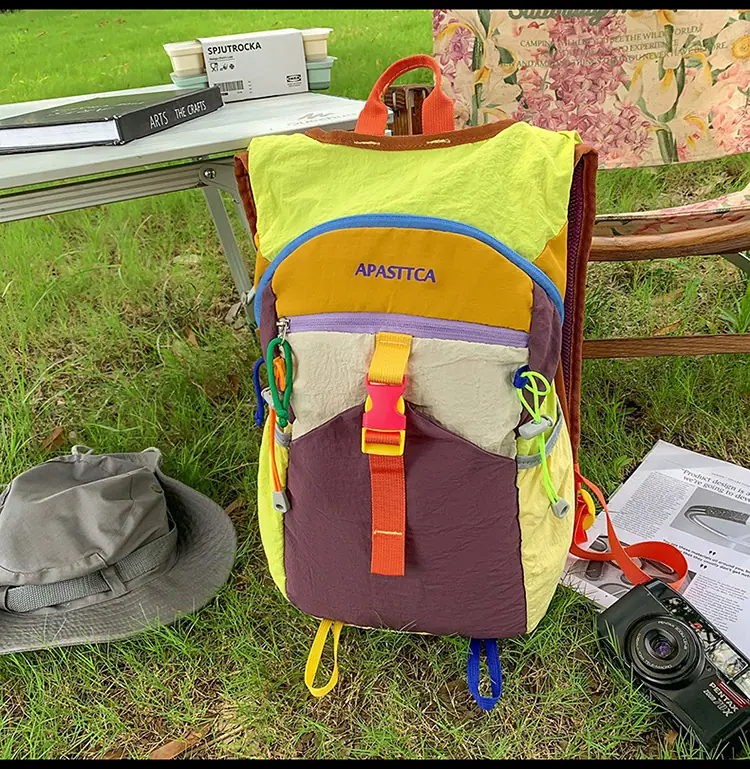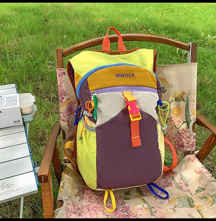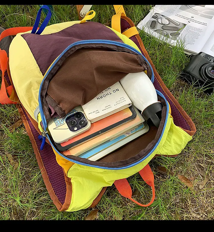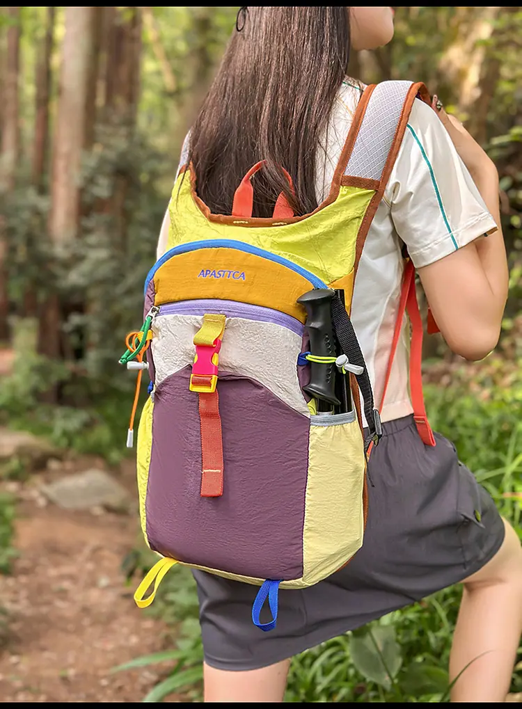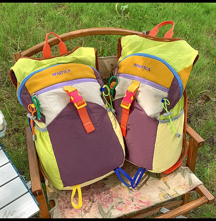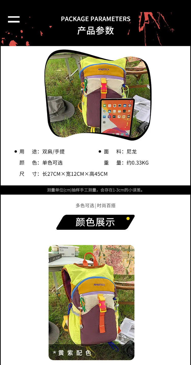 Mochila de Senderismo Impermeable con Bloques de Color de Moda Verano 2025, Mochila de Viaje Ligera y Moderna de Gran Capacidad