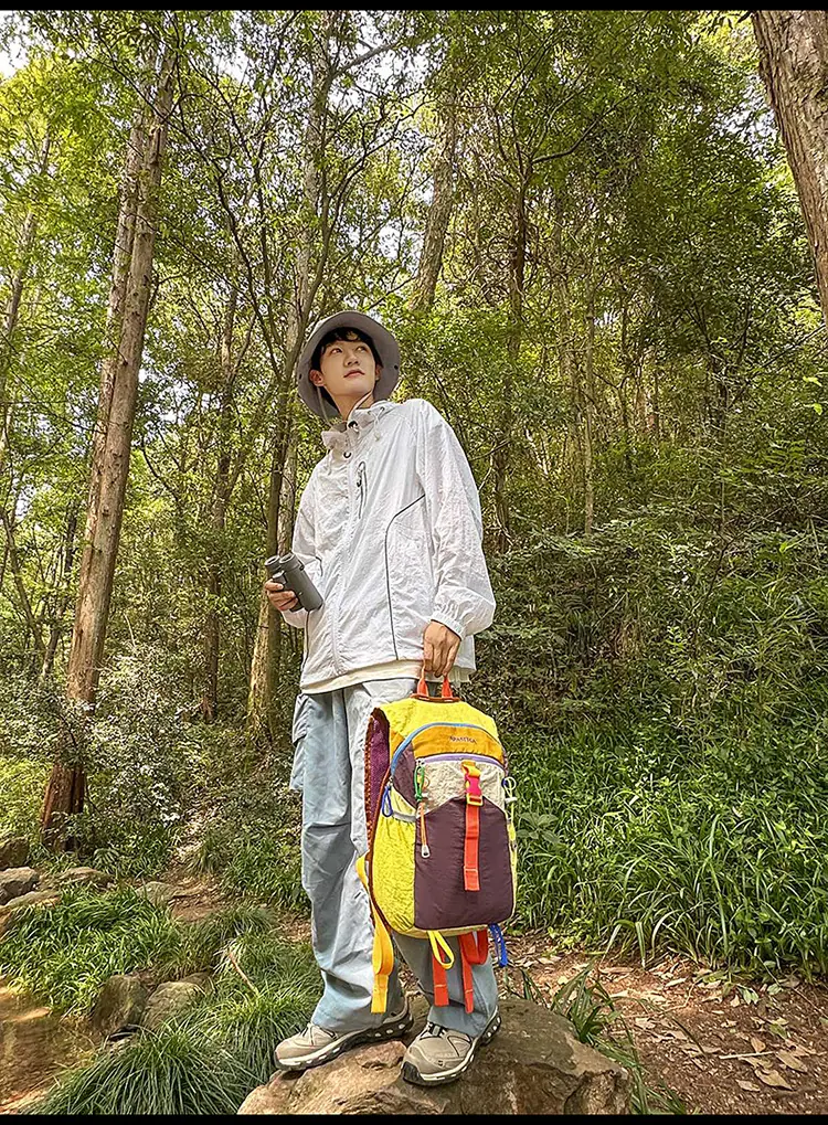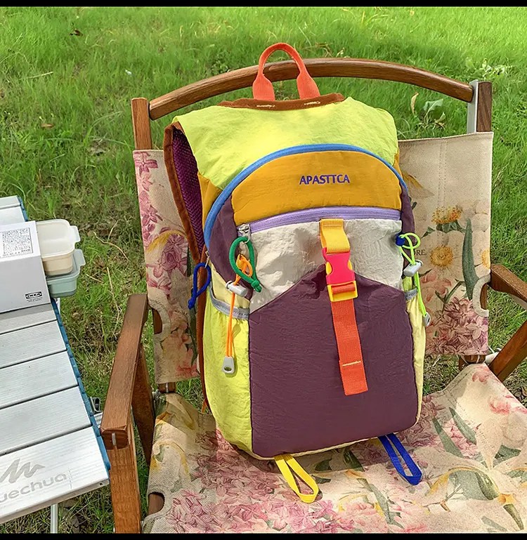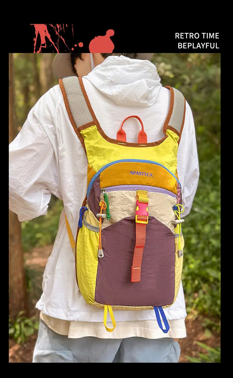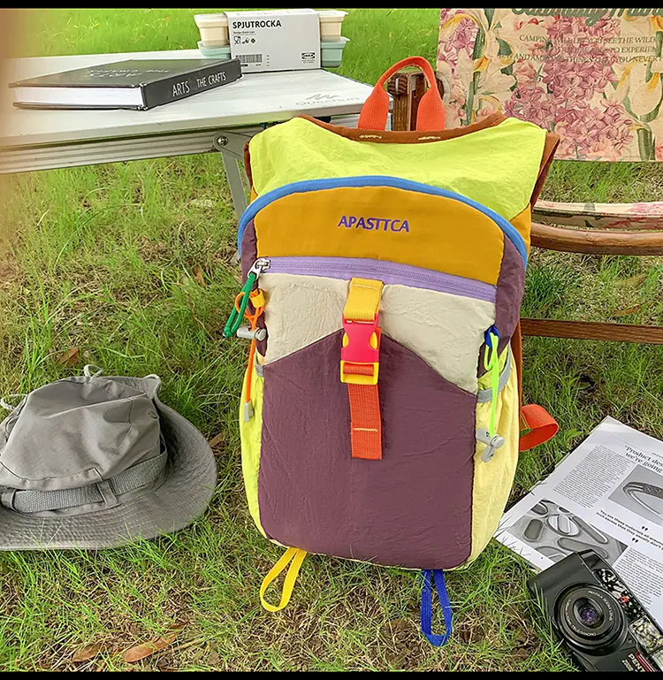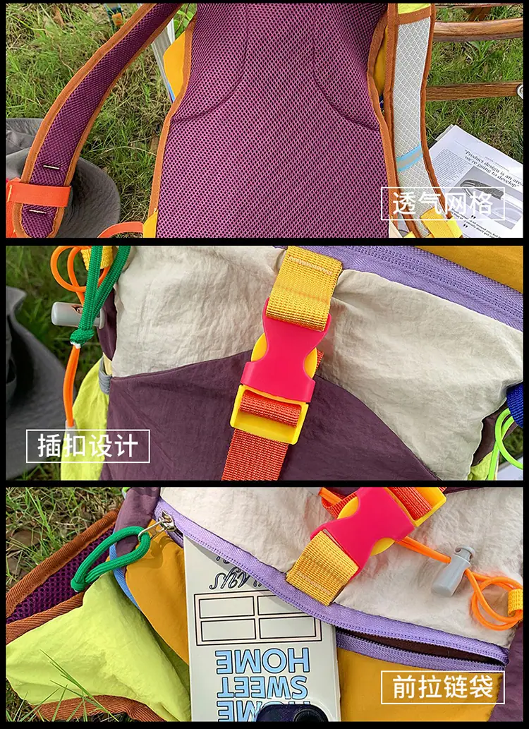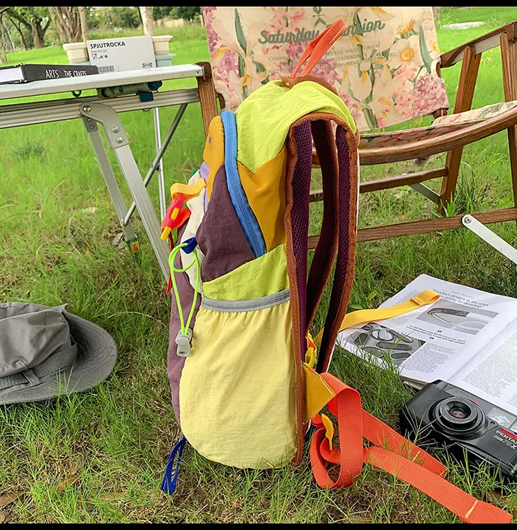 Mochila de Senderismo Impermeable con Bloques de Color de Moda Verano 2025, Mochila de Viaje Ligera y Moderna de Gran Capacidad