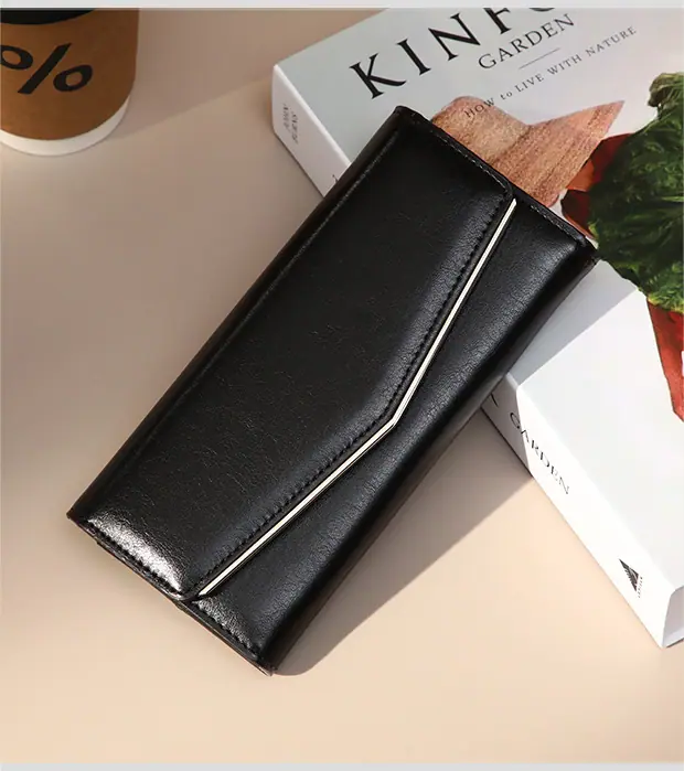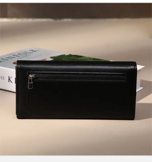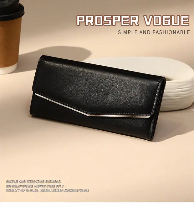 Billetera Larga Europea y Americana de Cuero PU Antirrobo RFID con Solapa y Cierre a Presión, Clutch de Noche con Ranuras para Múltiples Tarjetas y Clip para Billetes