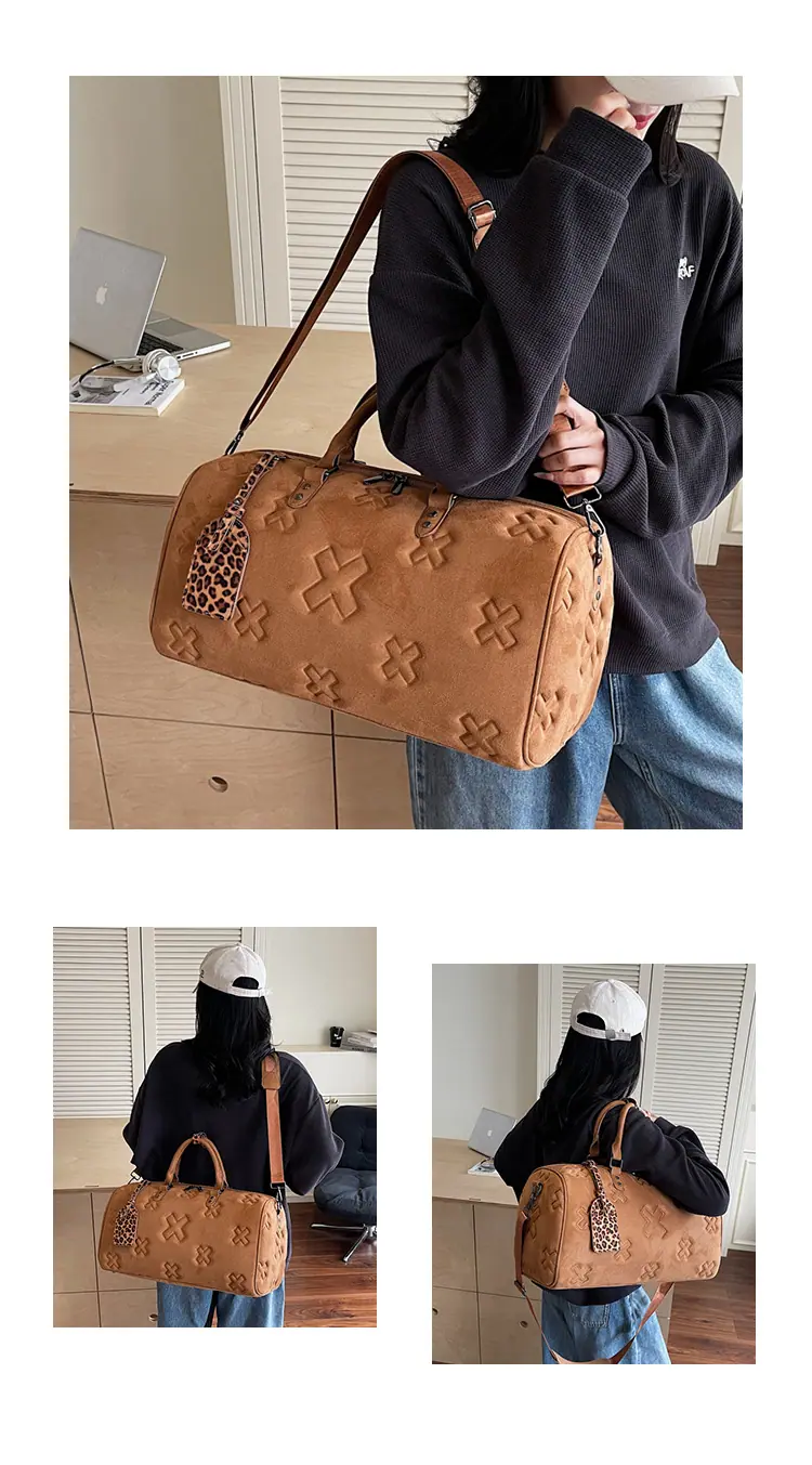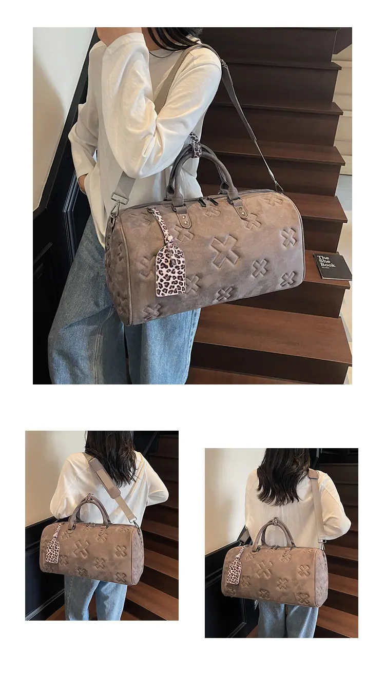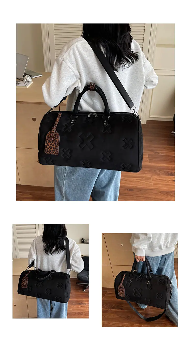 Estilo Coreano Nueva Moda Bolsa de Viaje en Relieve Gran Capacidad Viaje de Negocios de Corta Distancia Bolsa de Almacenamiento de Equipaje Bolsa Deportiva Diagonal para Fitness