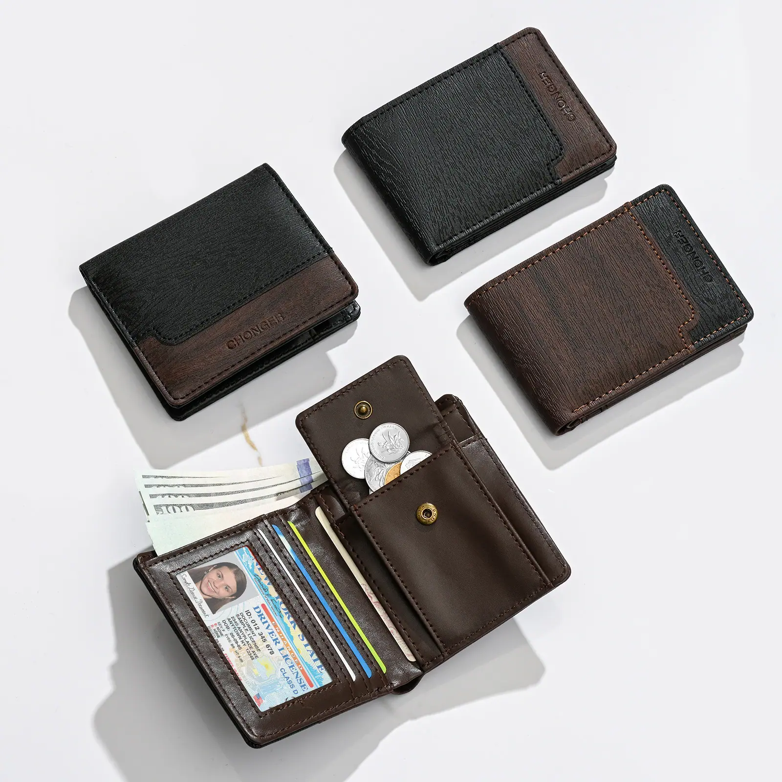 Cartera para hombre productos genuinos para hombre cartera corta sencilla con costuras delgada cartera retro estudiante fabricantes en stock mayoreo