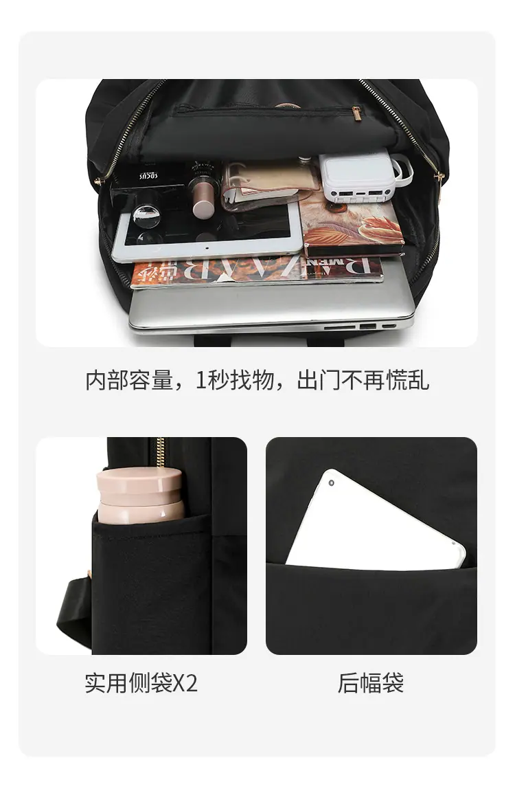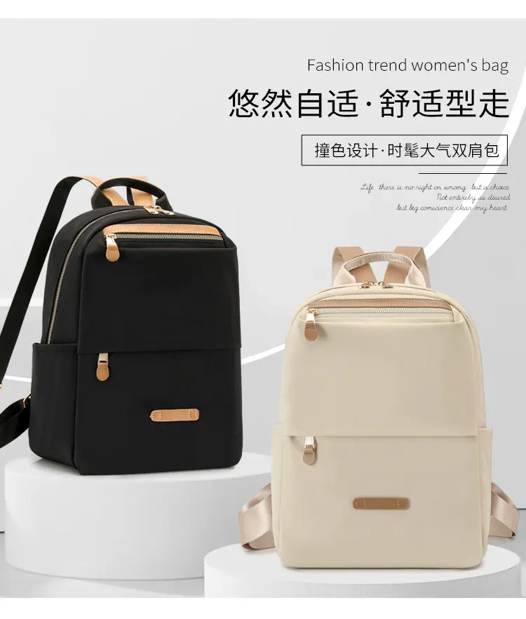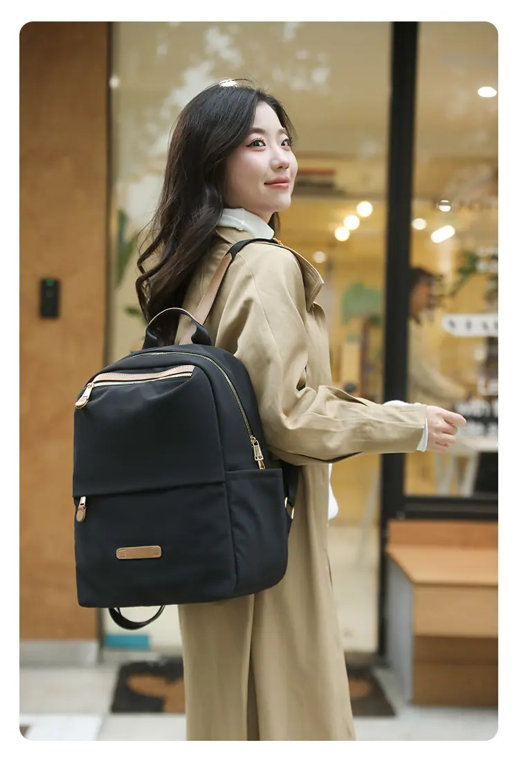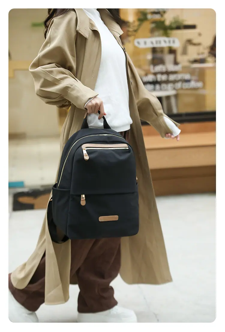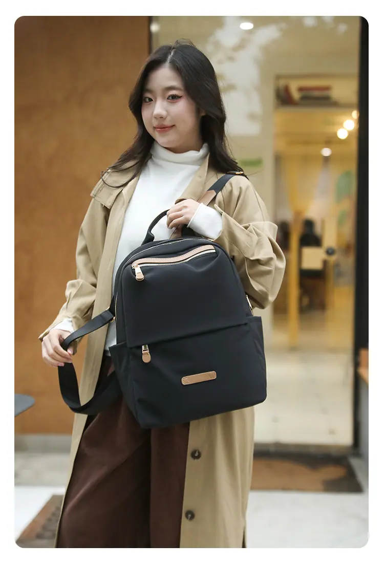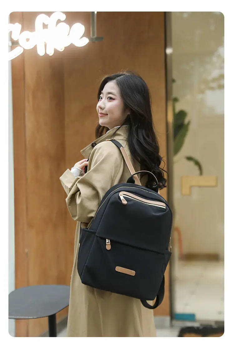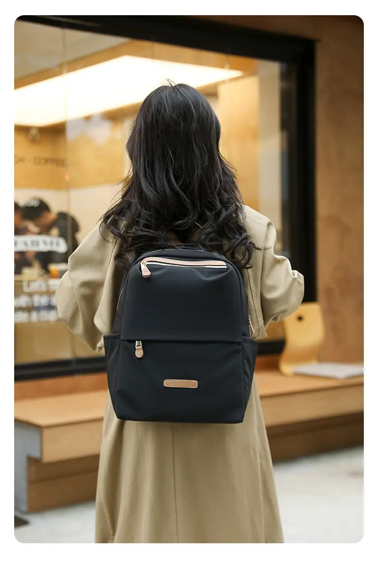 Mochila de estudiante de gran capacidad de nailon casual versátil de moda para mujer, bolsa para computadora portátil, mochila de viaje para exteriores