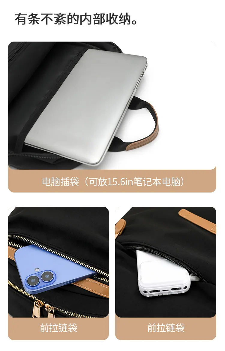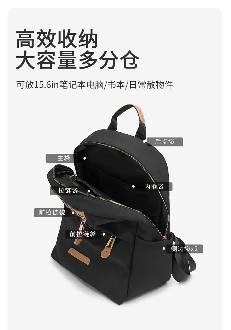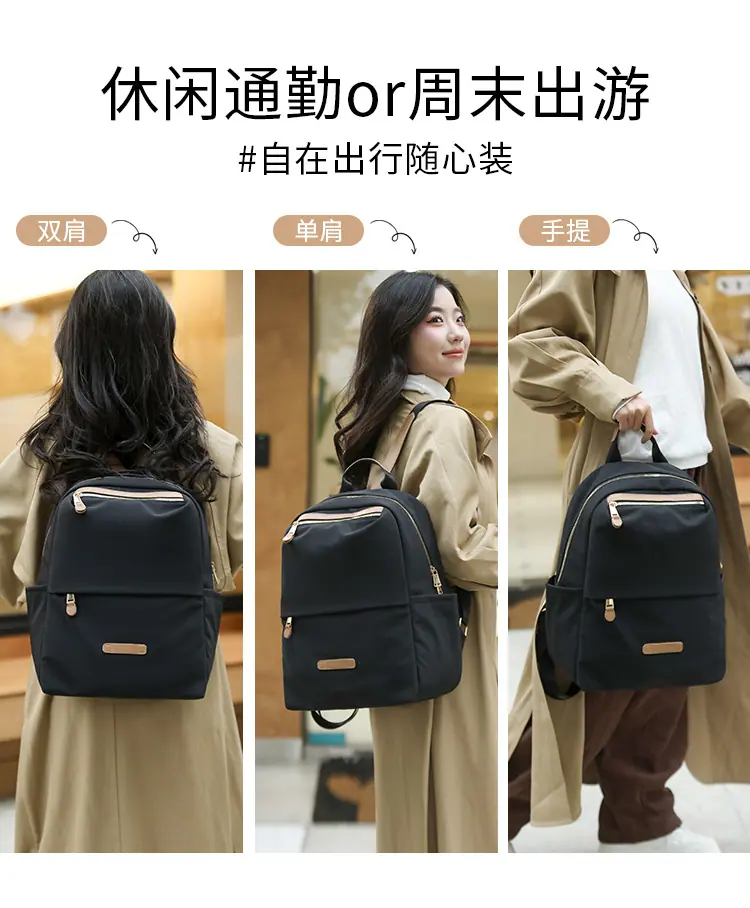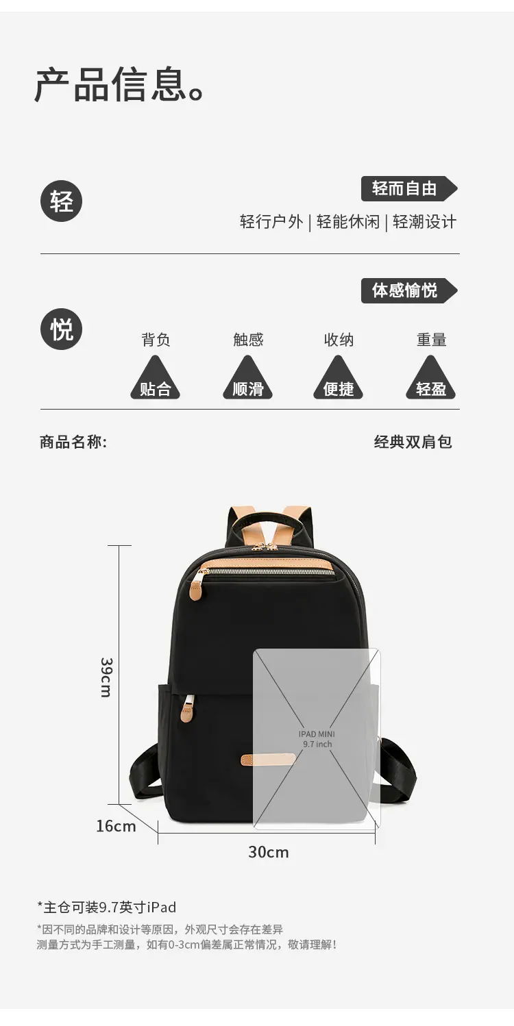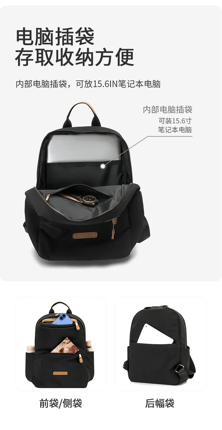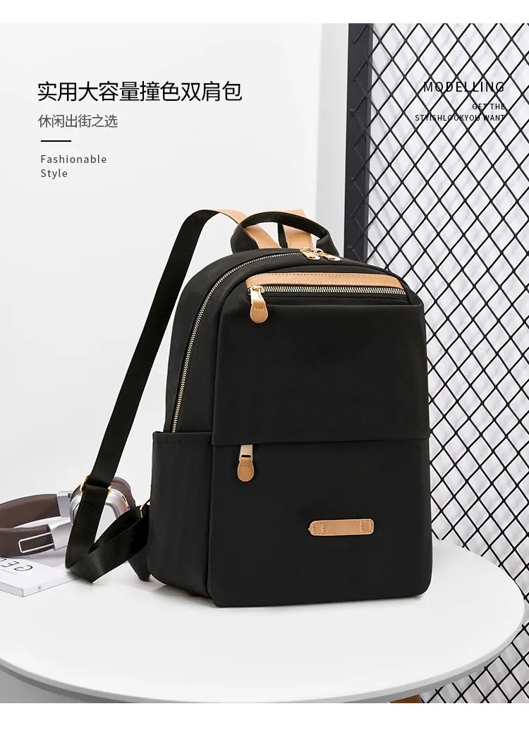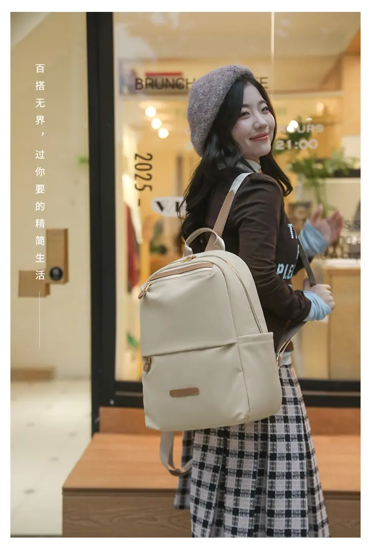 Mochila de estudiante de gran capacidad de nailon casual versátil de moda para mujer, bolsa para computadora portátil, mochila de viaje para exteriores