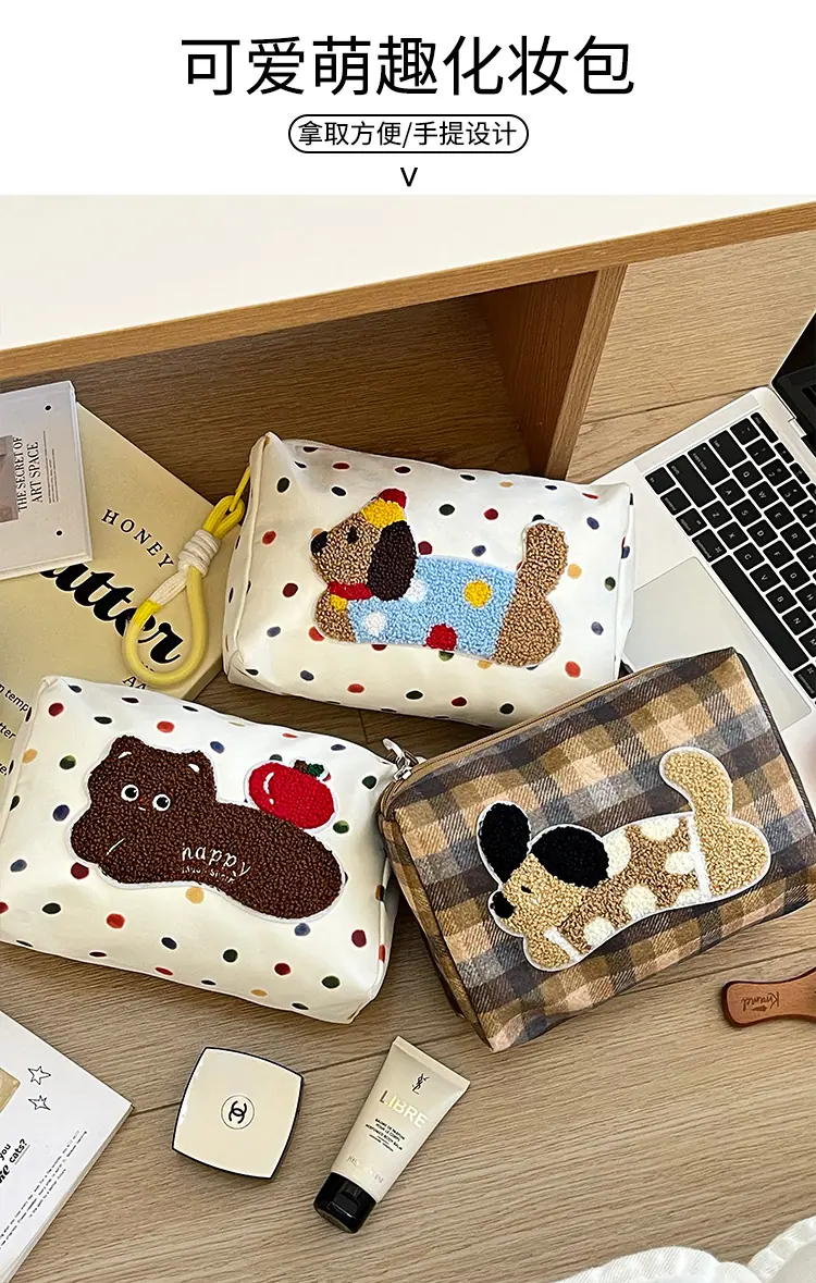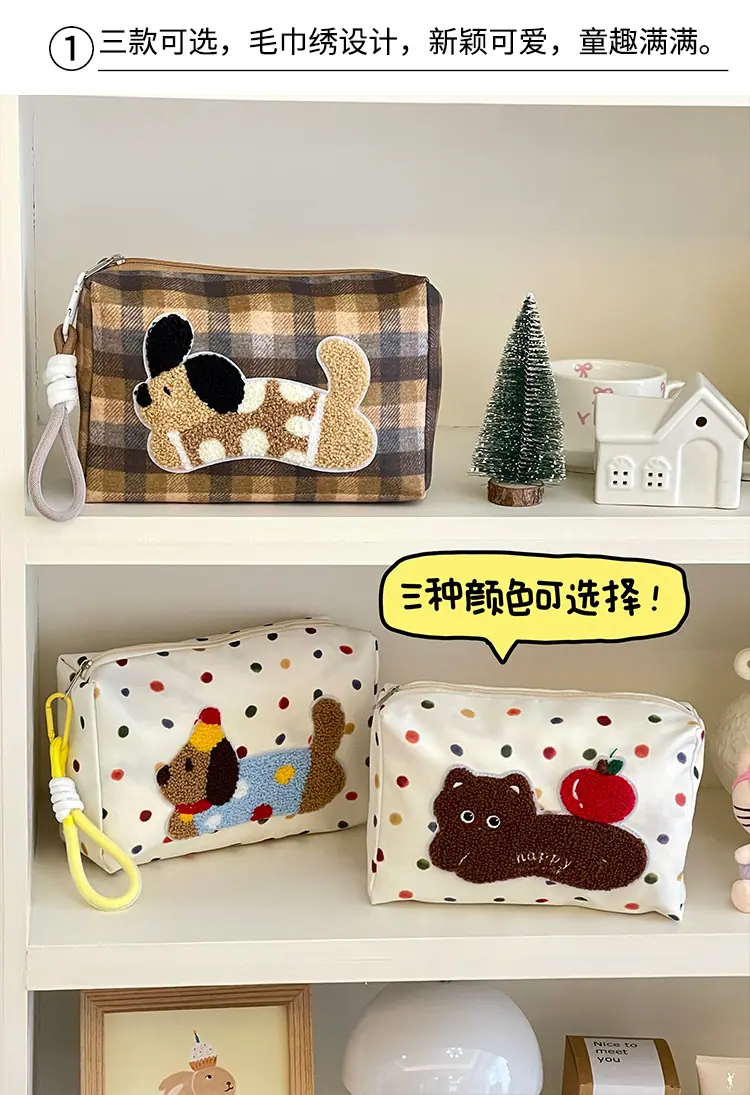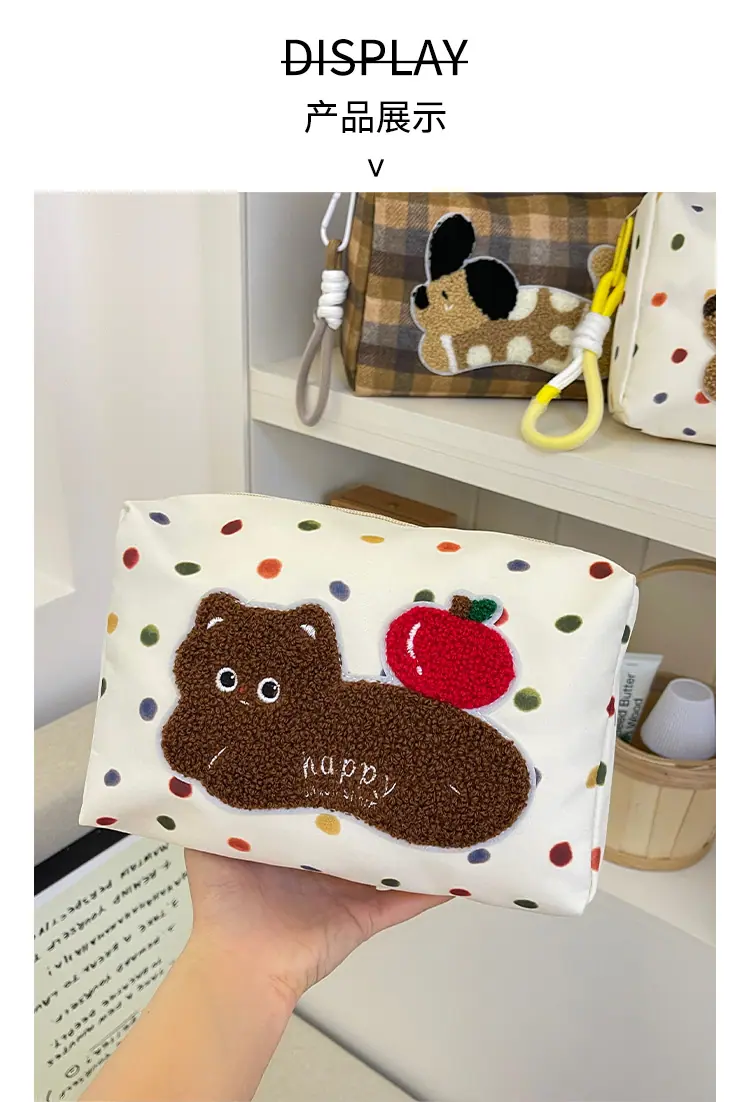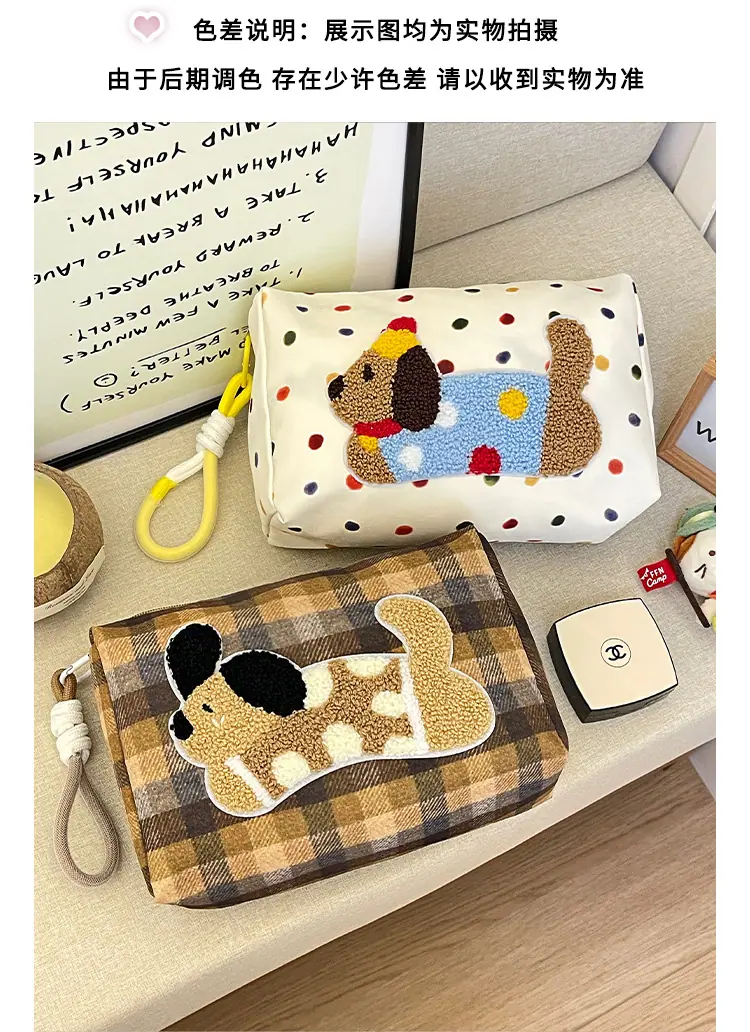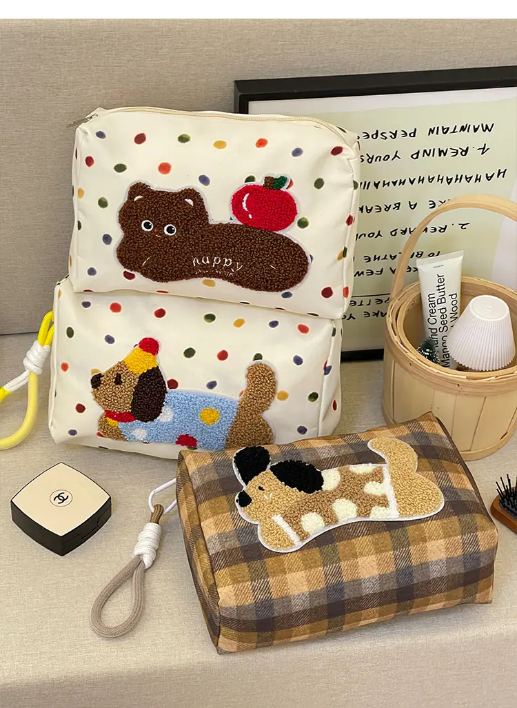 Apple cat cosmetic bag [cordless], Polka dot dachshund cosmetic bag, Plaid puppy cosmetic bag