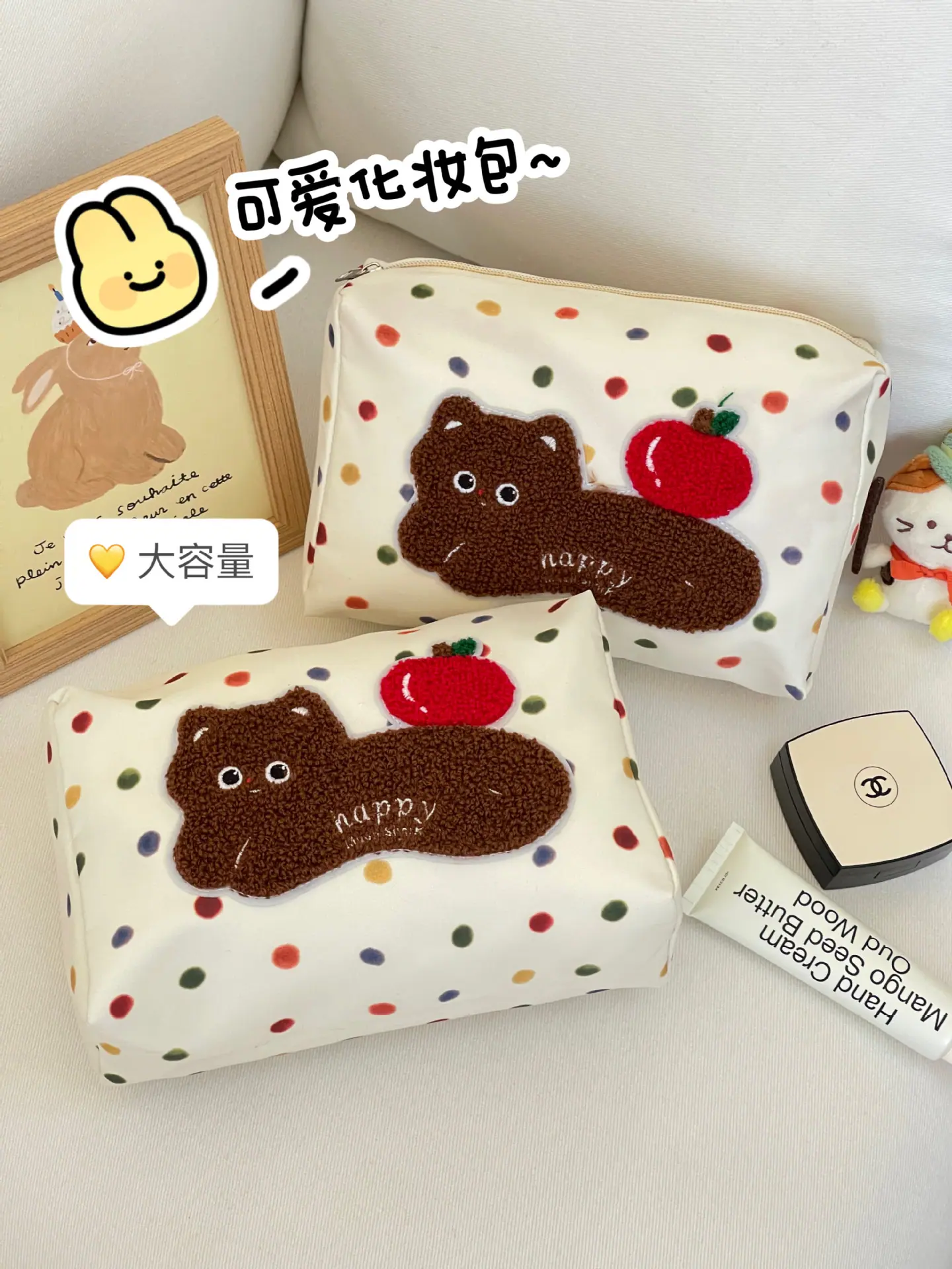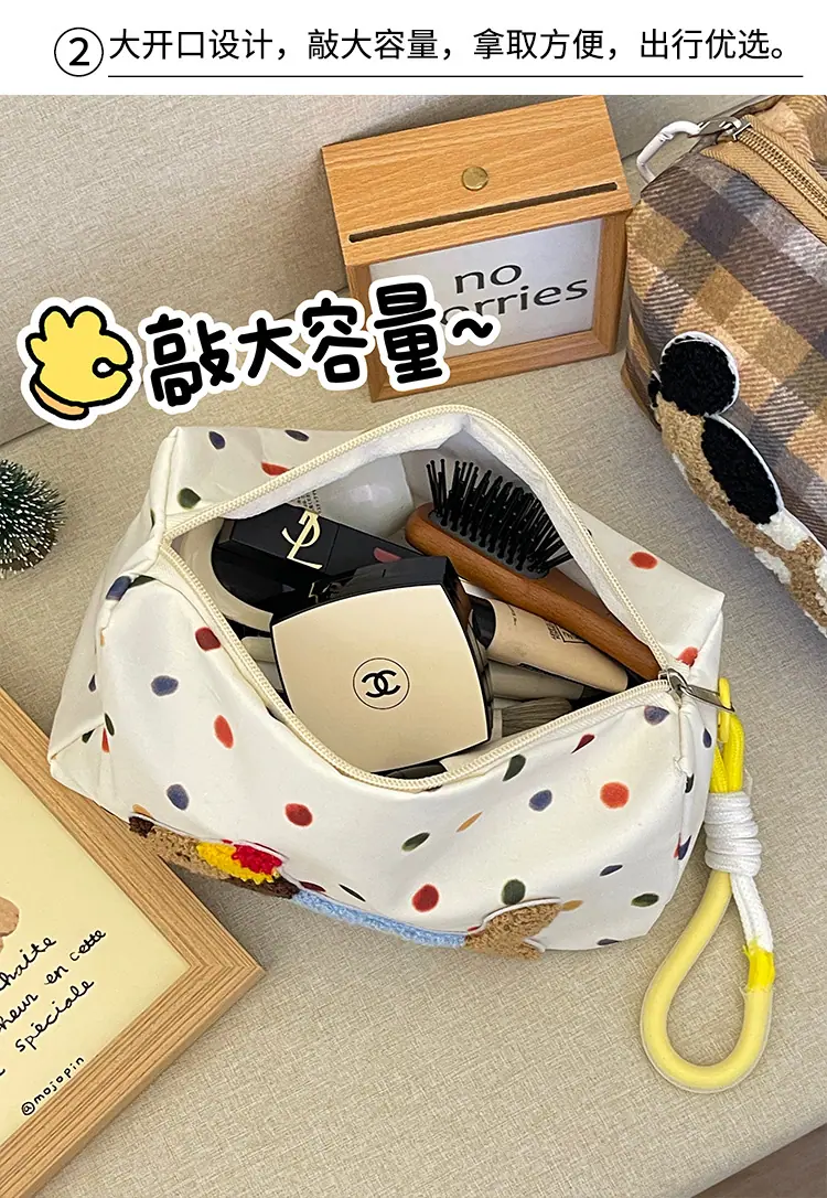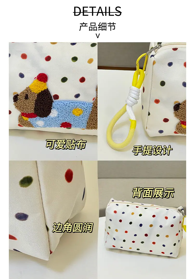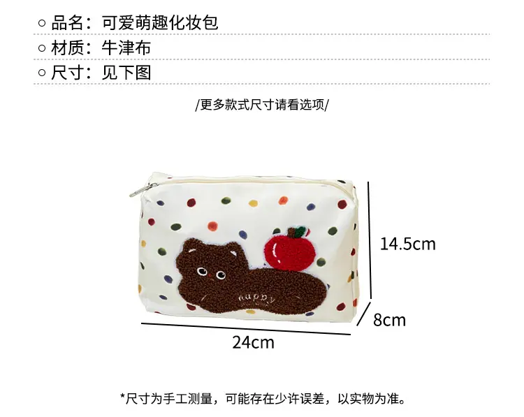 Apple cat cosmetic bag [cordless], Polka dot dachshund cosmetic bag, Plaid puppy cosmetic bag