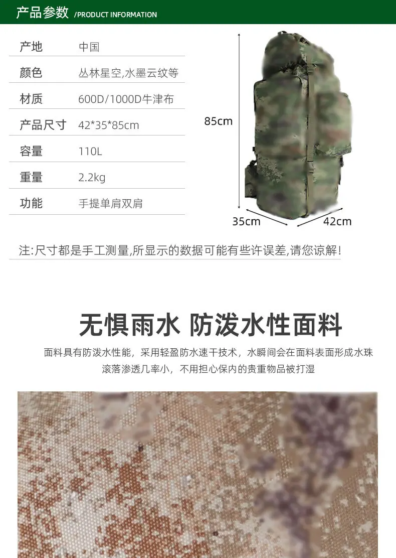 Compra Mochila Camuflaje 1000D Gran Capacidad Mochila Doble Hombro Equipo de Transporte Universal Mochila 110L Equipo para Exteriores al por mayor en Joom.pro