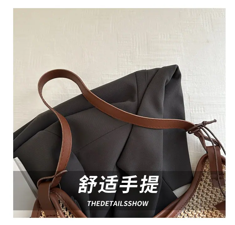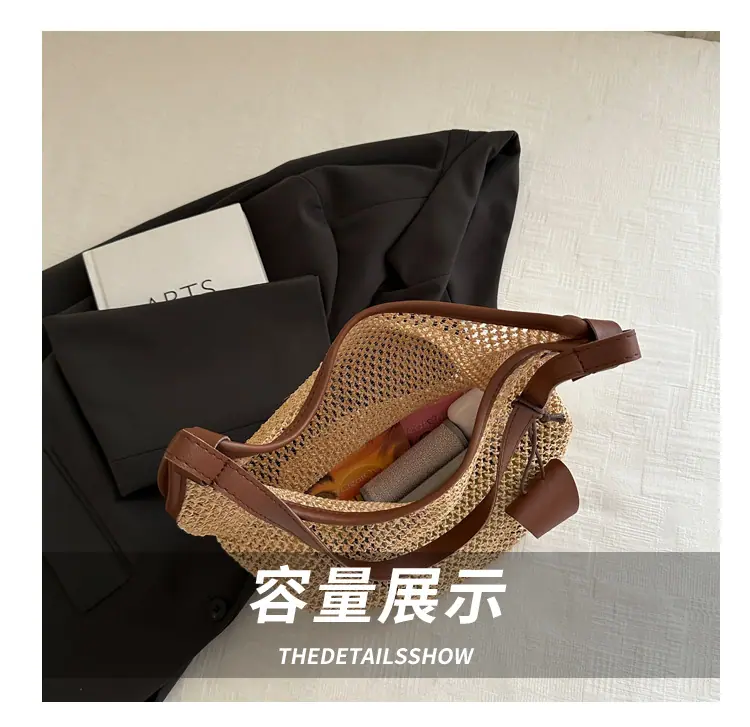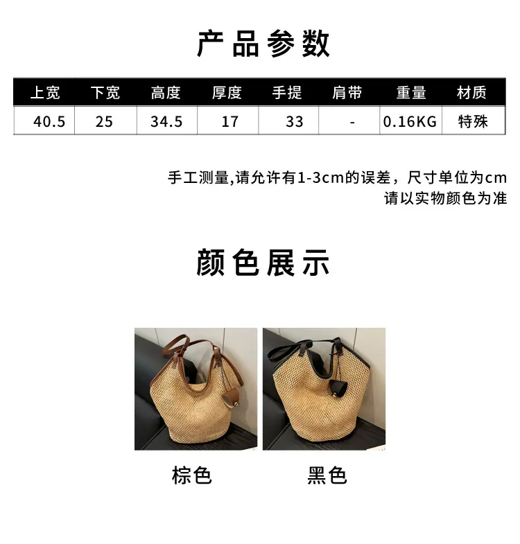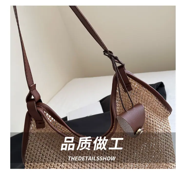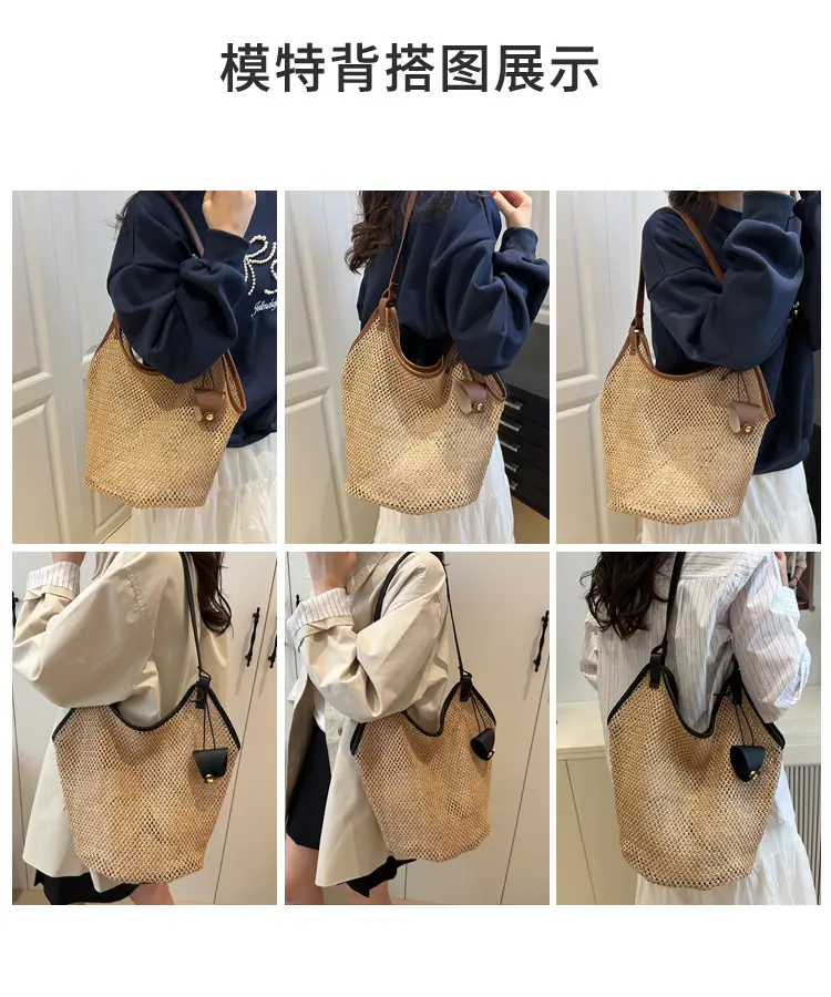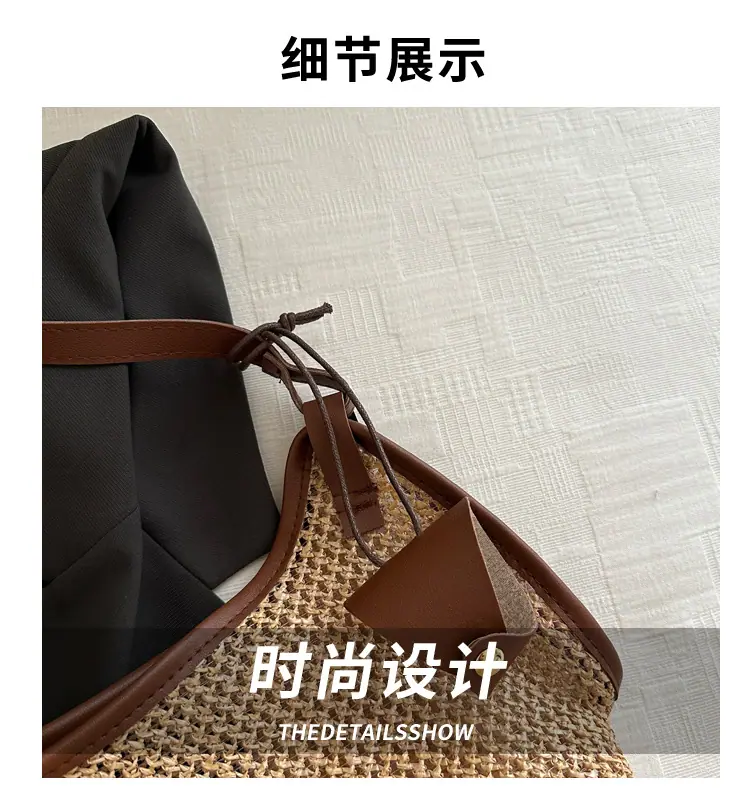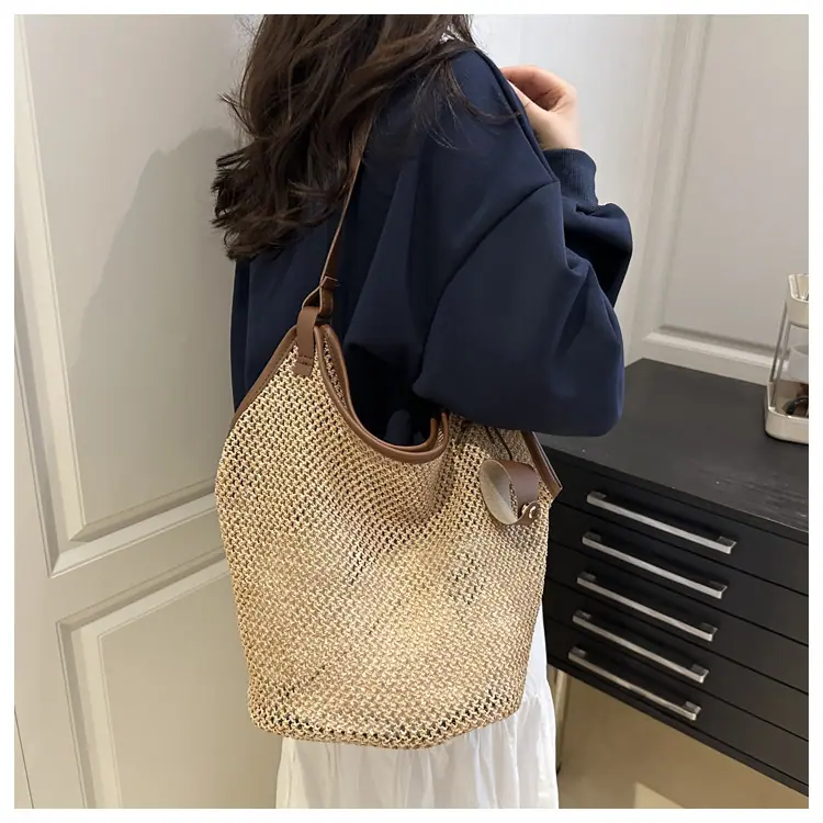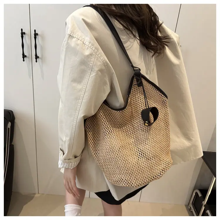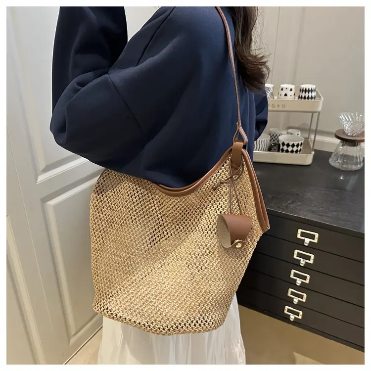 Verano 2025 Nuevo Bolso de Paja Tejida Moda Mujer Coreano Nicho Un Solo Hombro Bolso Balde Bolso de Playa para la Orilla del Mar