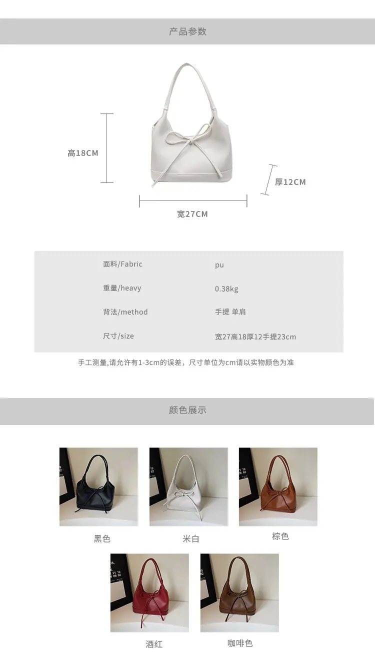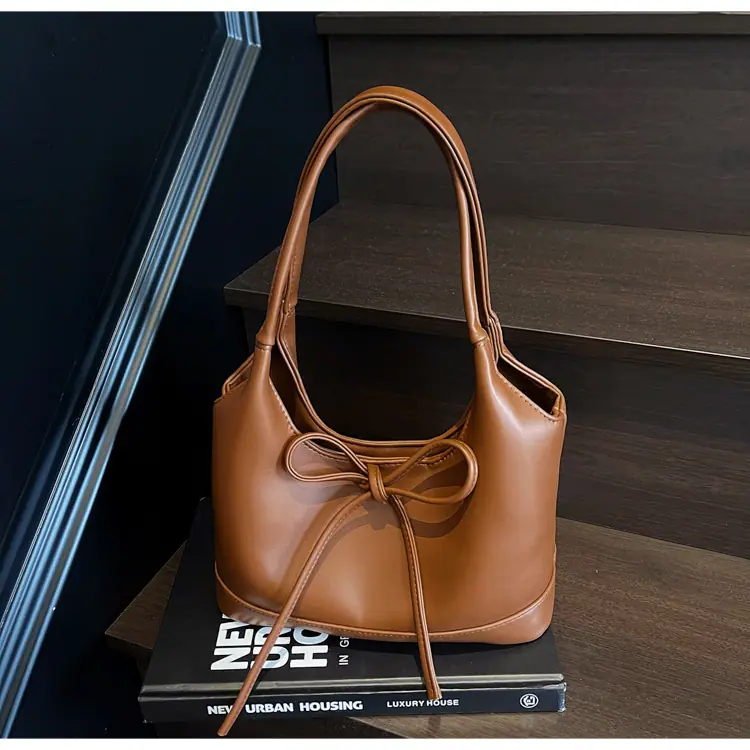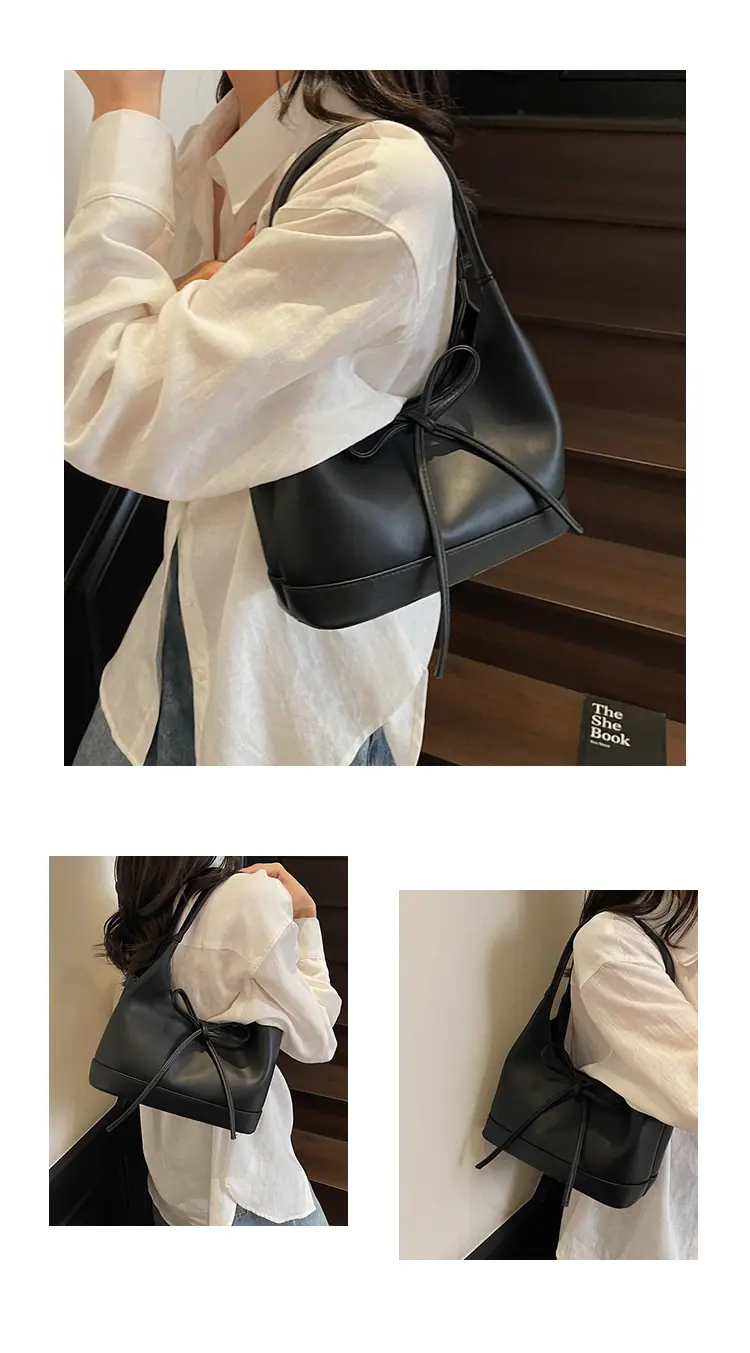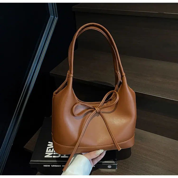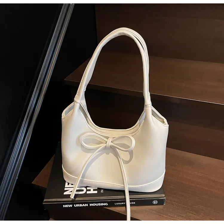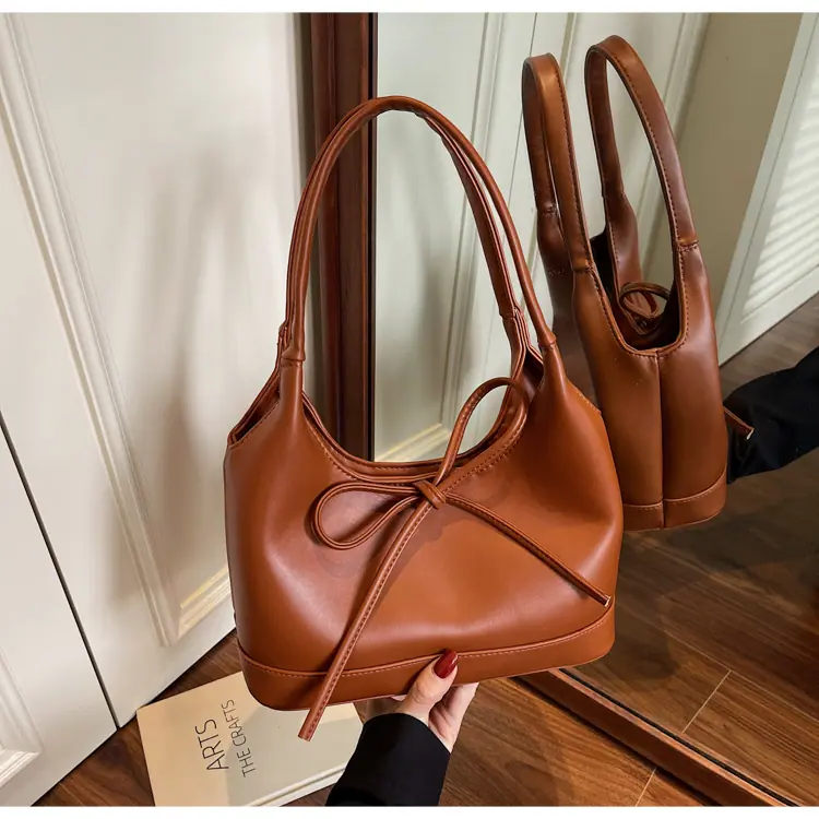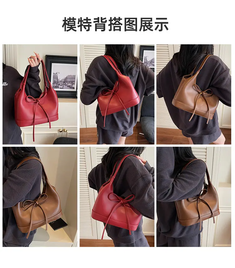Bolso de Hombro Sobaco Retro Transfronterizo Moda para Mujer Nuevo Lazo Gran Capacidad Versátil Bolso de Mano para Desplazamiento Bolso Tote