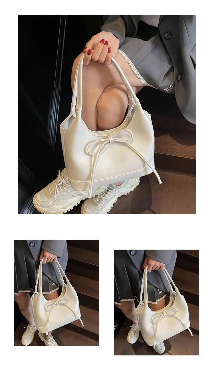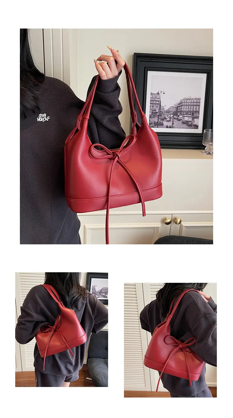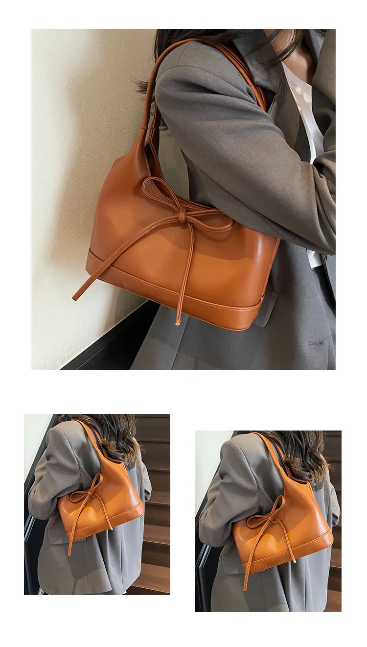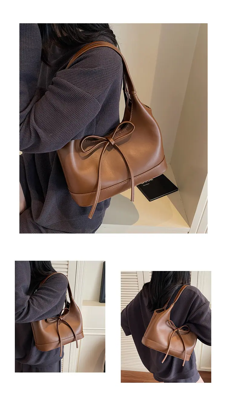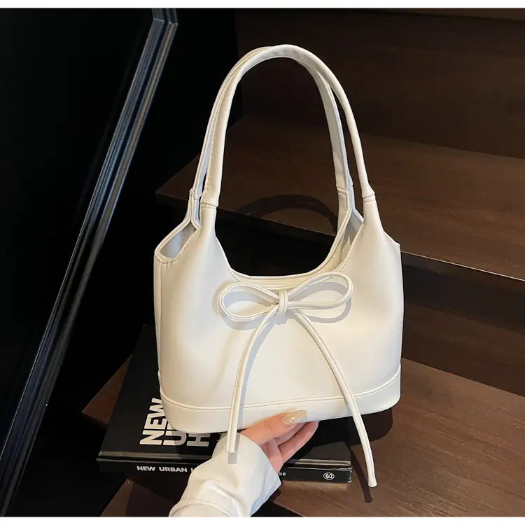 Bolso de Hombro Sobaco Retro Transfronterizo Moda para Mujer Nuevo Lazo Gran Capacidad Versátil Bolso de Mano para Desplazamiento Bolso Tote