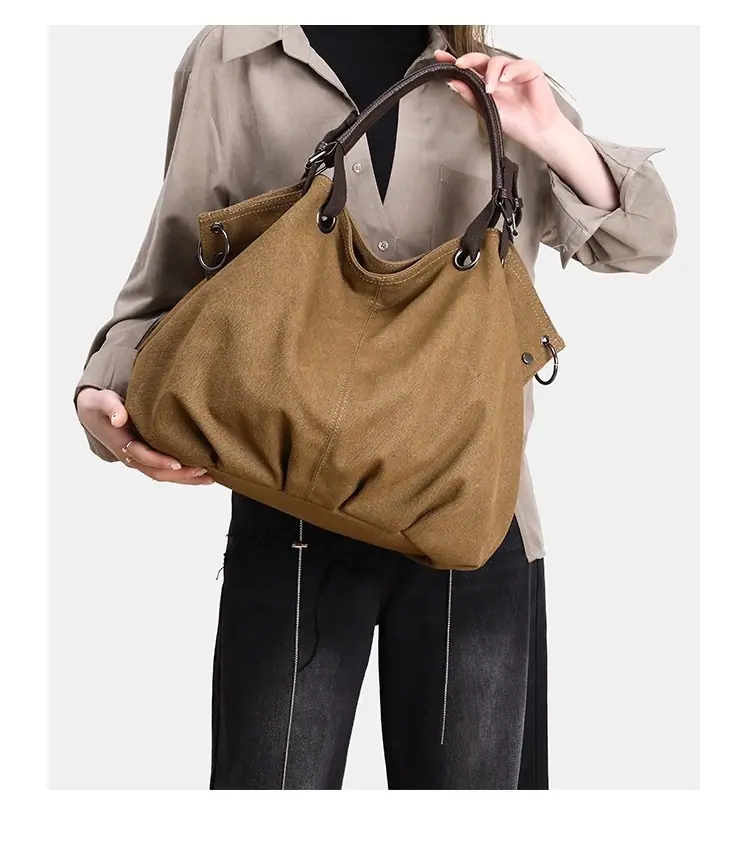 Compra Bolso Tote de Lona Americana Bolso de Mujer 2025 Nuevo Bolso Satchel para Viajeros Bolso de Hombro Cruzado de Gran Capacidad Bolso Casual Retro al por mayor en Joom.pro