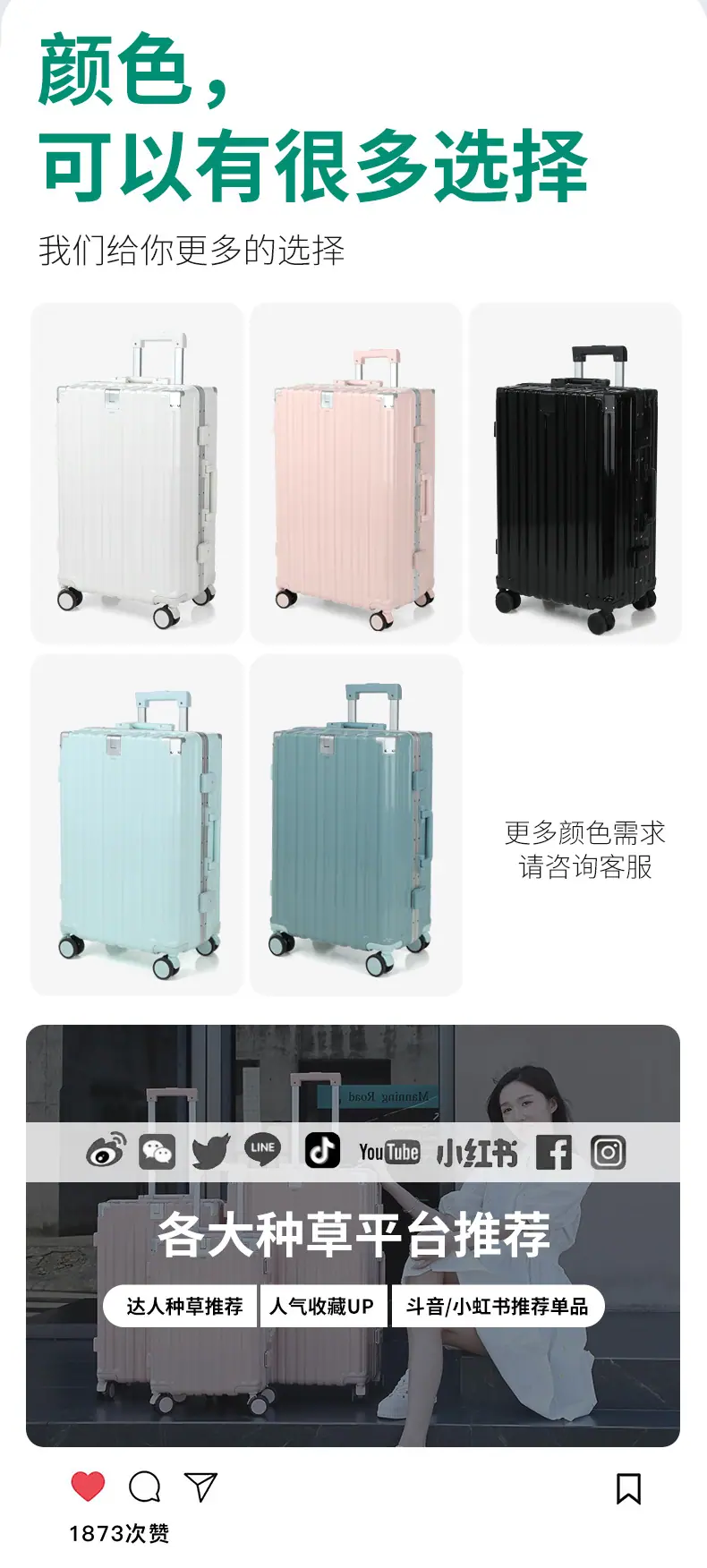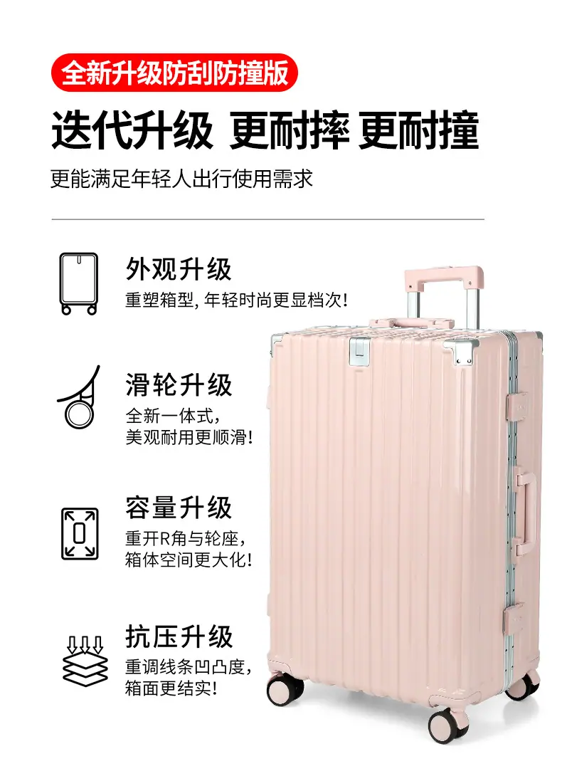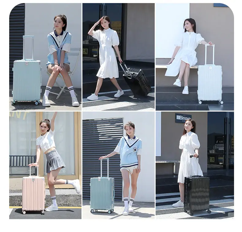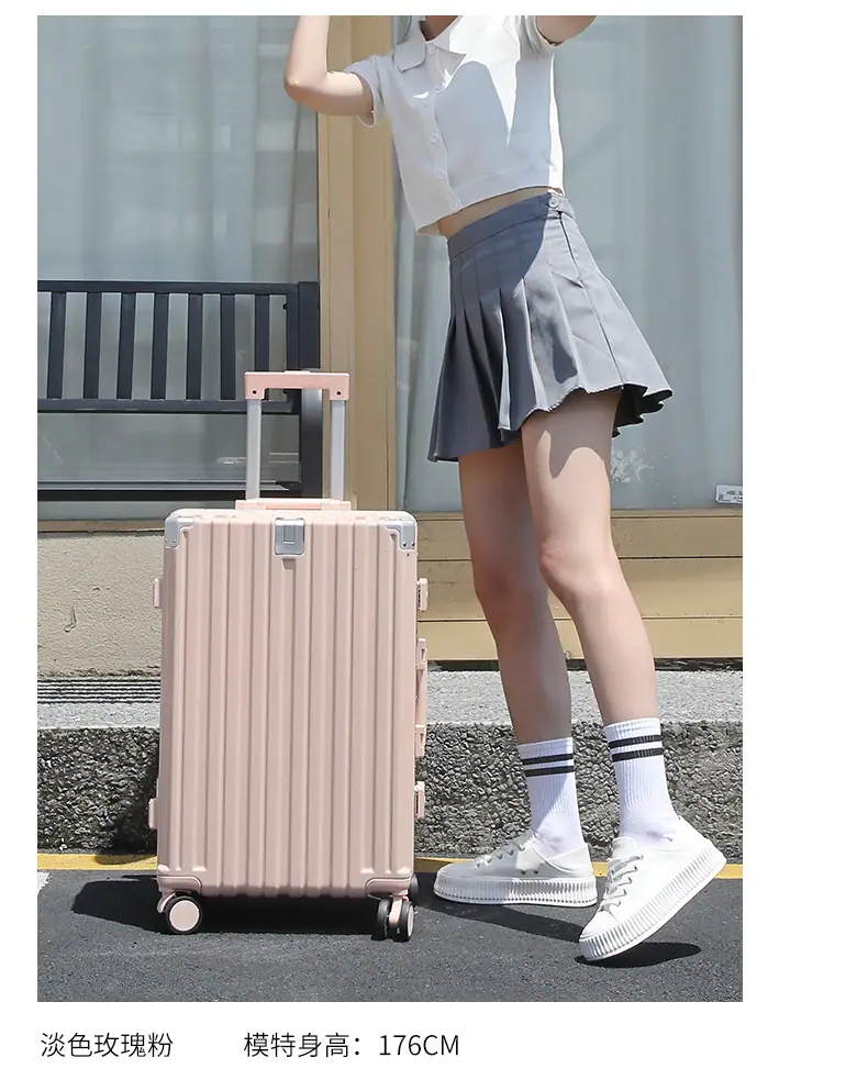 2023 Nuevo Equipaje Mujer 20 pulgadas Marco de Aluminio Maleta con Ruedas Universales 24 pulgadas Estudiante Masculino Contraseña Estuche de Cuero Maleta