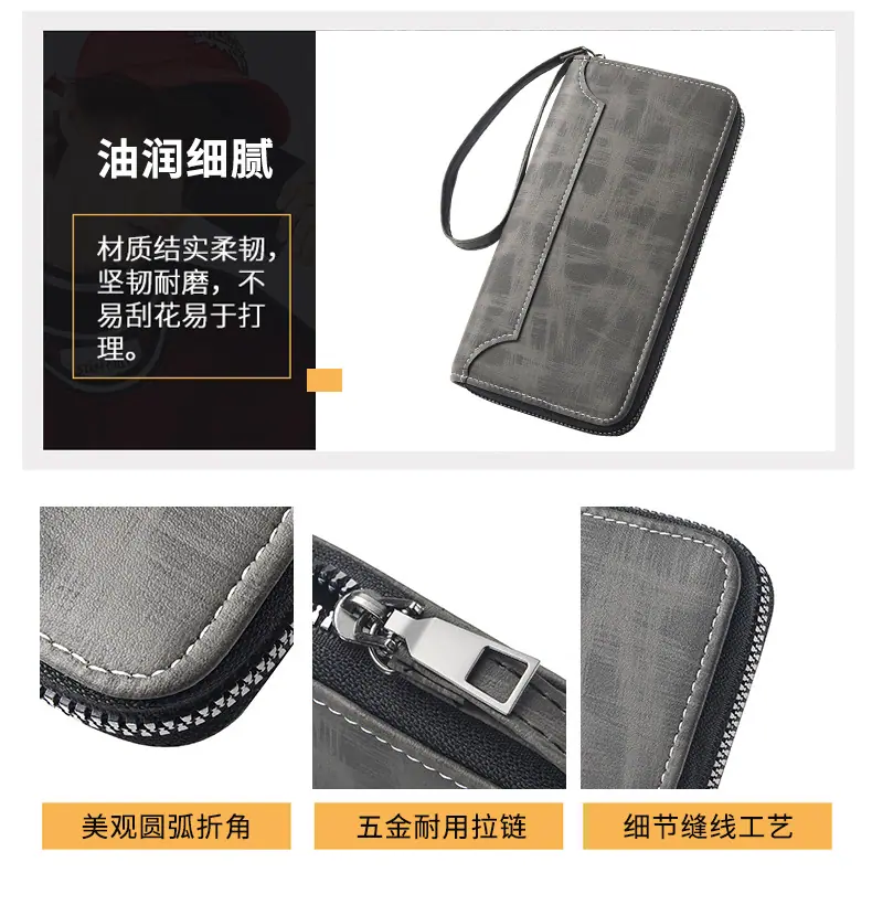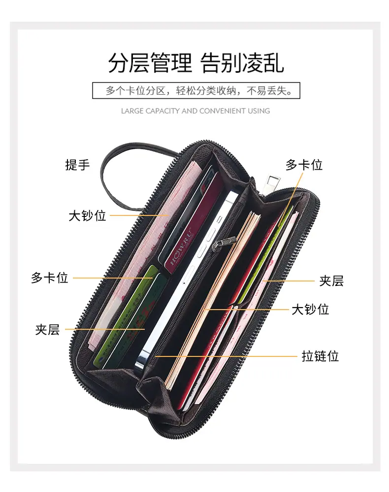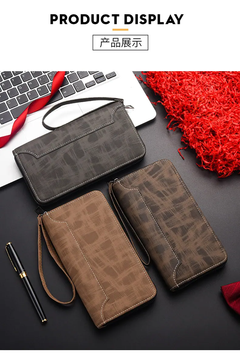 Billetera larga con cremallera para hombre nueva transfronteriza, casual de negocios, bolsa para teléfono móvil, multi-tarjeta, gran capacidad, bolso de mano para niño