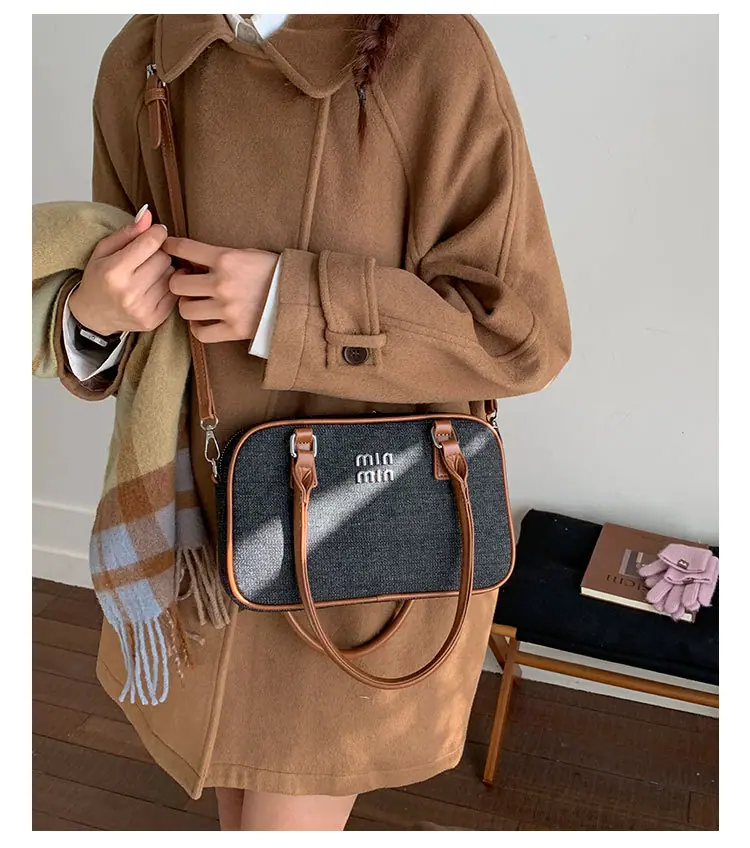 2025 Casual Retro Textura Simple Bolsa Cuadrada Pequeña Tendencia de Moda Nuevo Bolso de Mano Mujer Otoño Invierno Hombro Cruzado