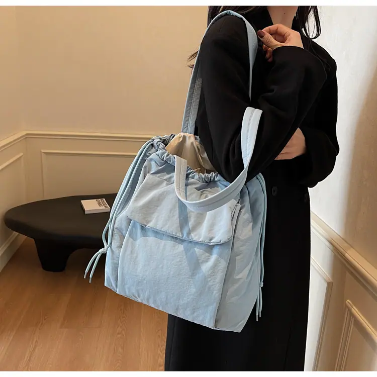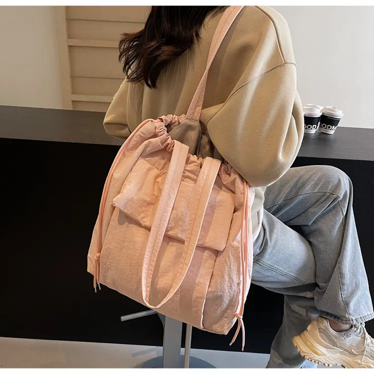 Bolsa Deportiva y de Fitness Color Sólido Simple Ligera Bandolera Individual Bolsa de Viaje Otoño Nuevo Bolso Tote de Yoga Moderno Plisado
