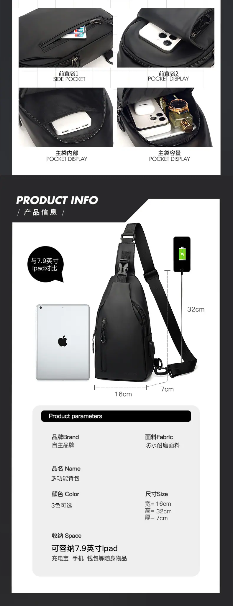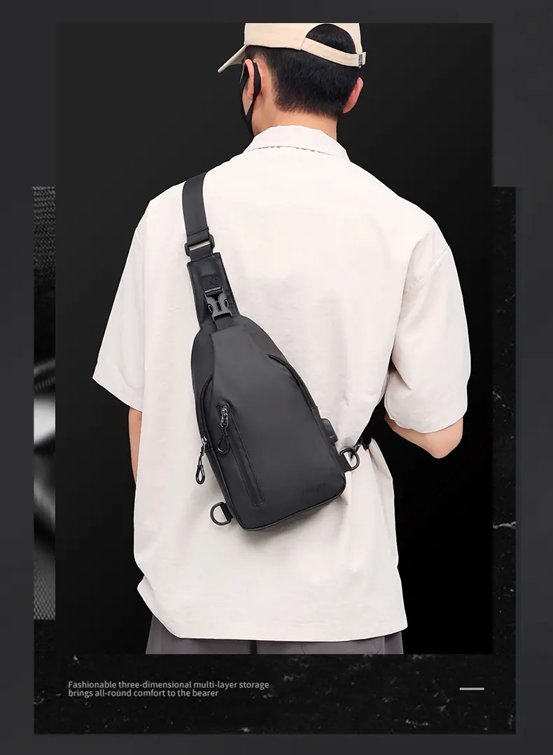 Bolsa de pecho cruzada para hombre de cuero casual color sólido bandolera mochila de moda riñonera moderna bandolera al por mayor