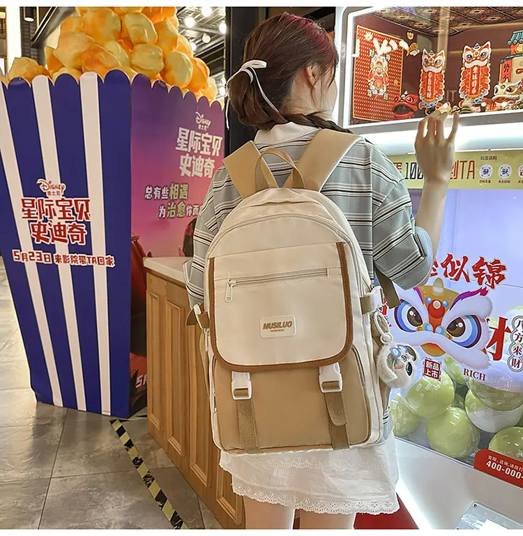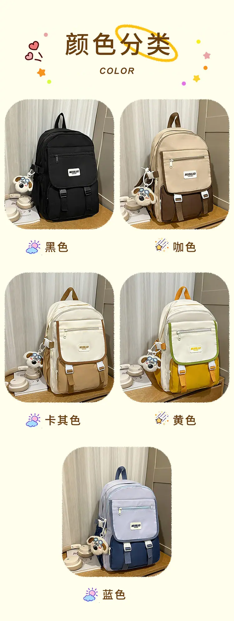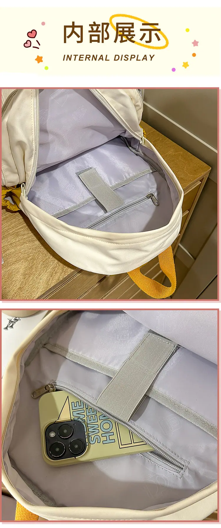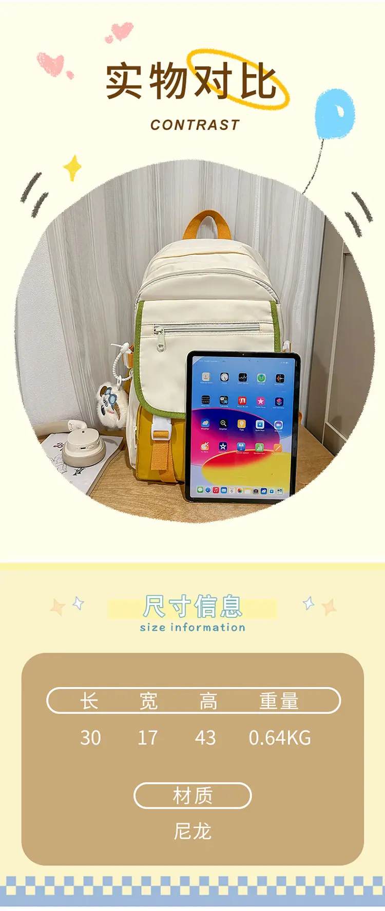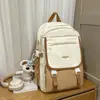 Mochila Escolar de Gran Capacidad para Mujer Estilo Coreano Ins Versátil Bloque de Color Mochila de Viaje Bolsa para Laptop Mochila para Estudiante de Preparatoria Secundaria