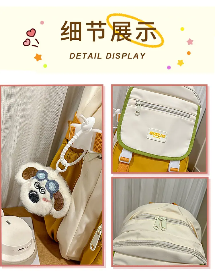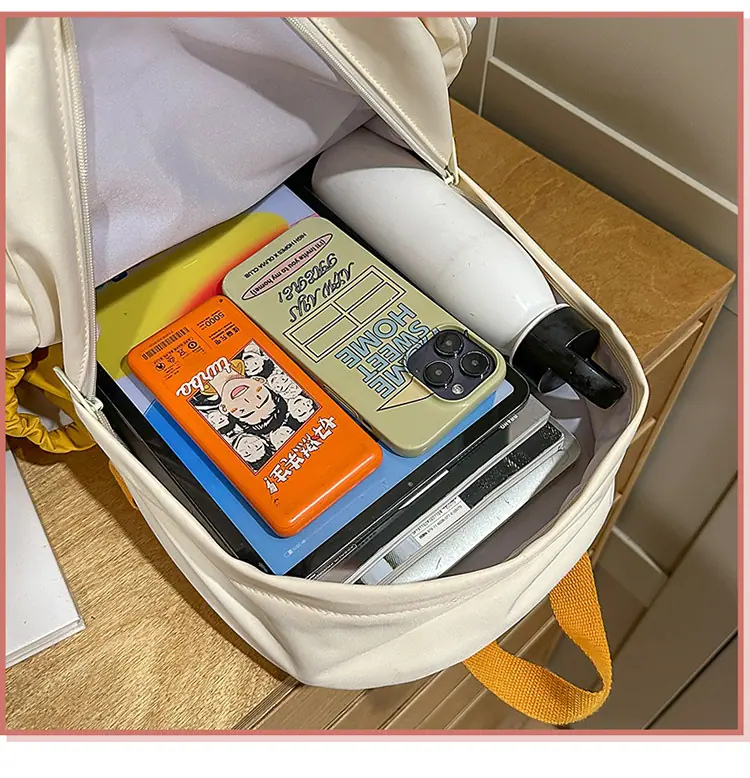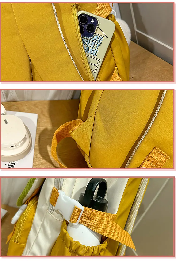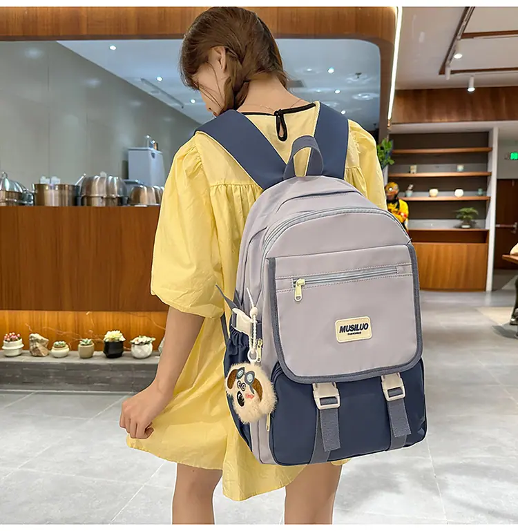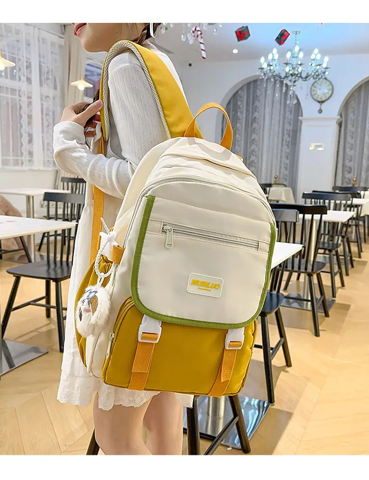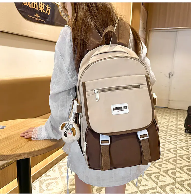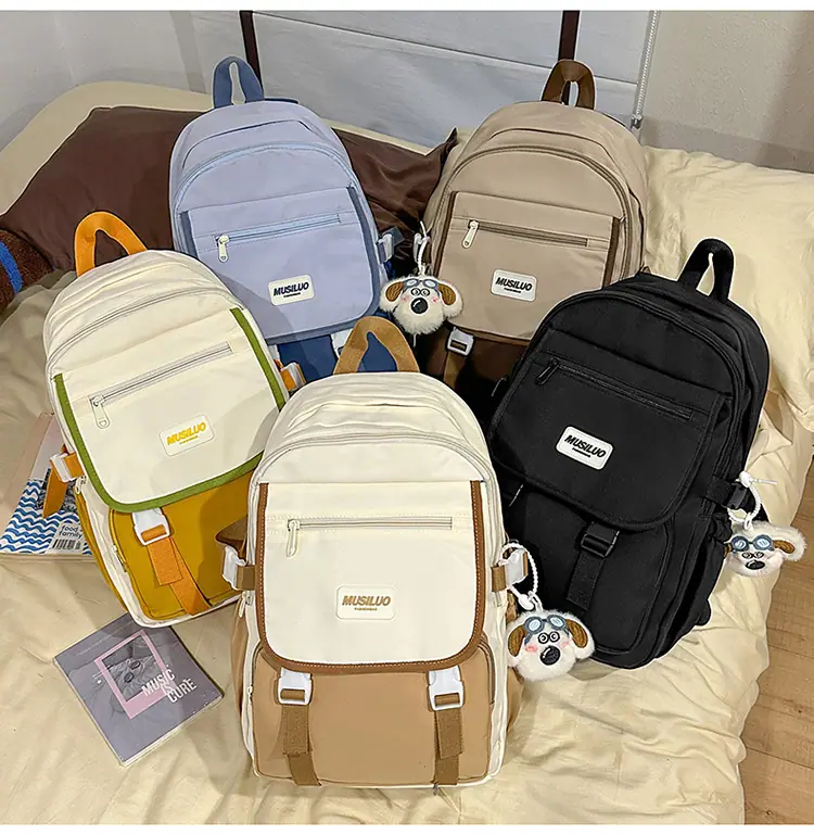 Mochila Escolar de Gran Capacidad para Mujer Estilo Coreano Ins Versátil Bloque de Color Mochila de Viaje Bolsa para Laptop Mochila para Estudiante de Preparatoria Secundaria