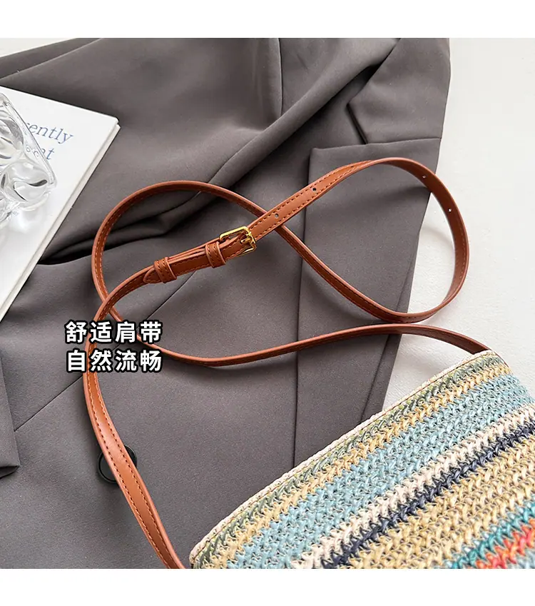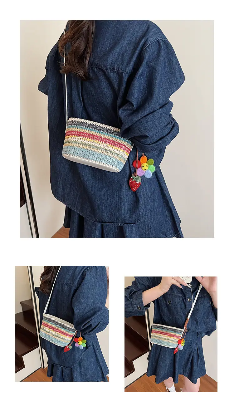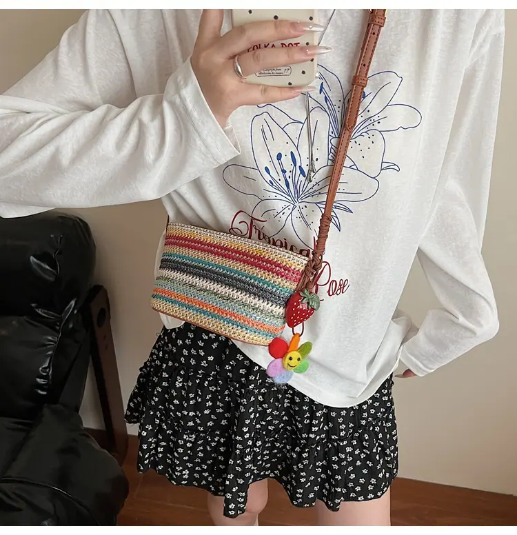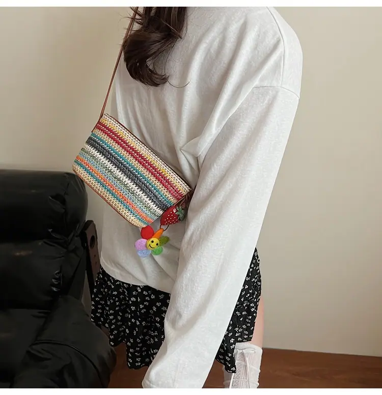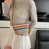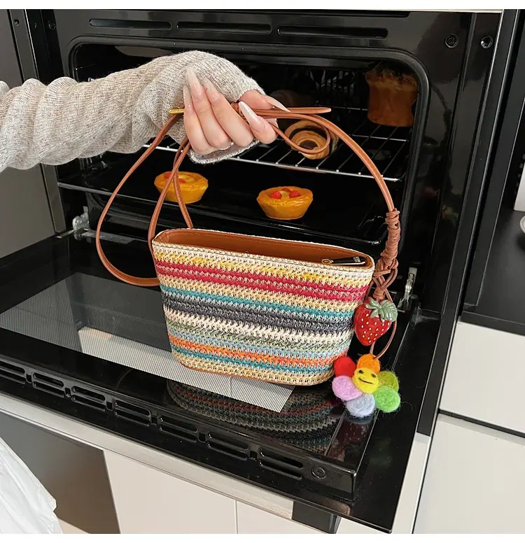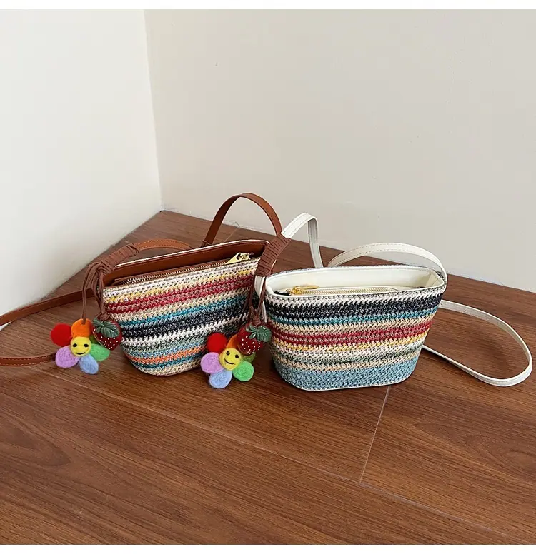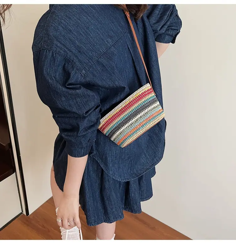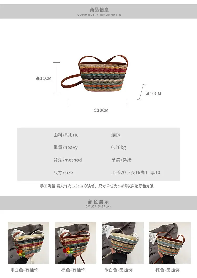 Bolso Pequeño de Paja Colorido de Playa 2025 Verano Nuevo Moderno de Un Hombro Cruzado Bajo el Brazo Bolso Cubo Tejido de Moda