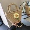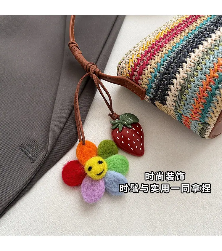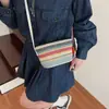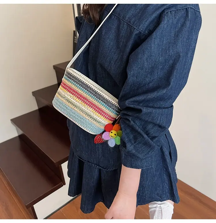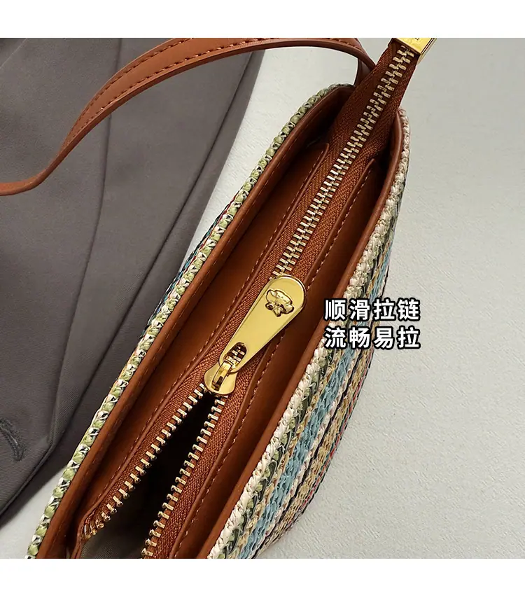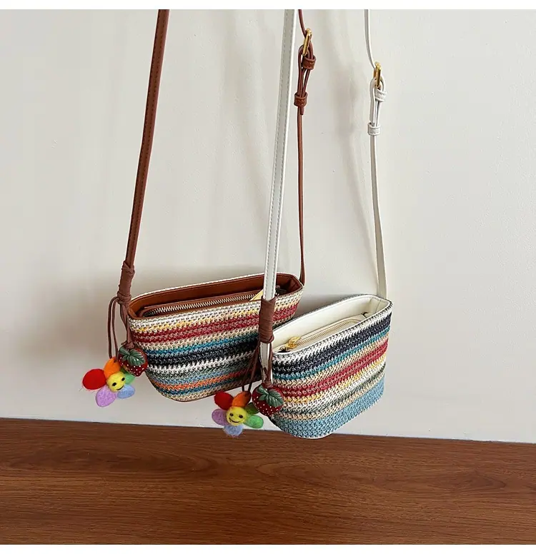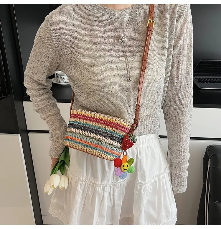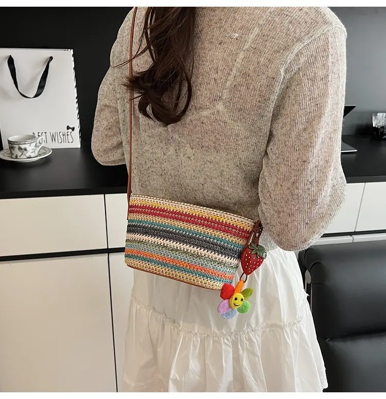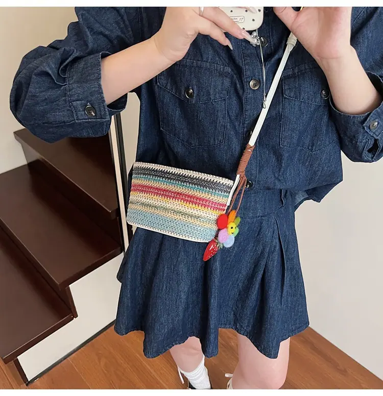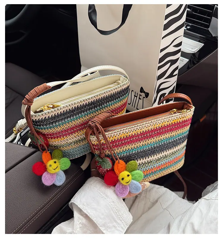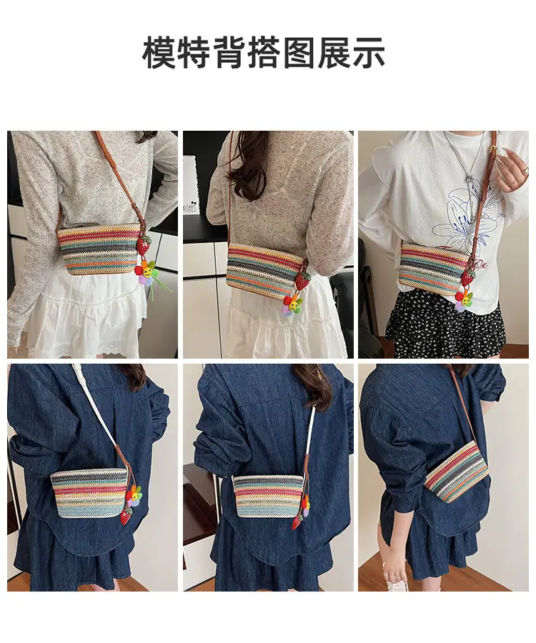 Bolso Pequeño de Paja Colorido de Playa 2025 Verano Nuevo Moderno de Un Hombro Cruzado Bajo el Brazo Bolso Cubo Tejido de Moda