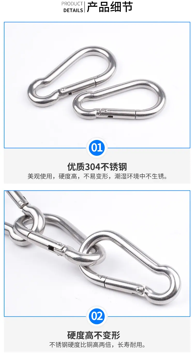 Mosquetón Galvanizado Gancho de Resorte Hebilla de Seguridad Hebilla de Conexión Mosquetón Gancho de Escalada Gancho de Resorte