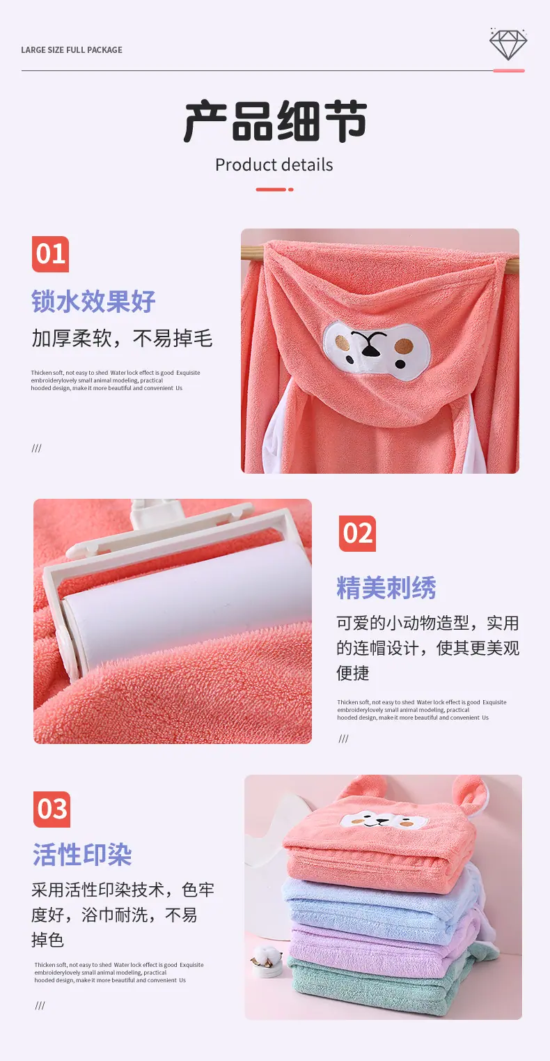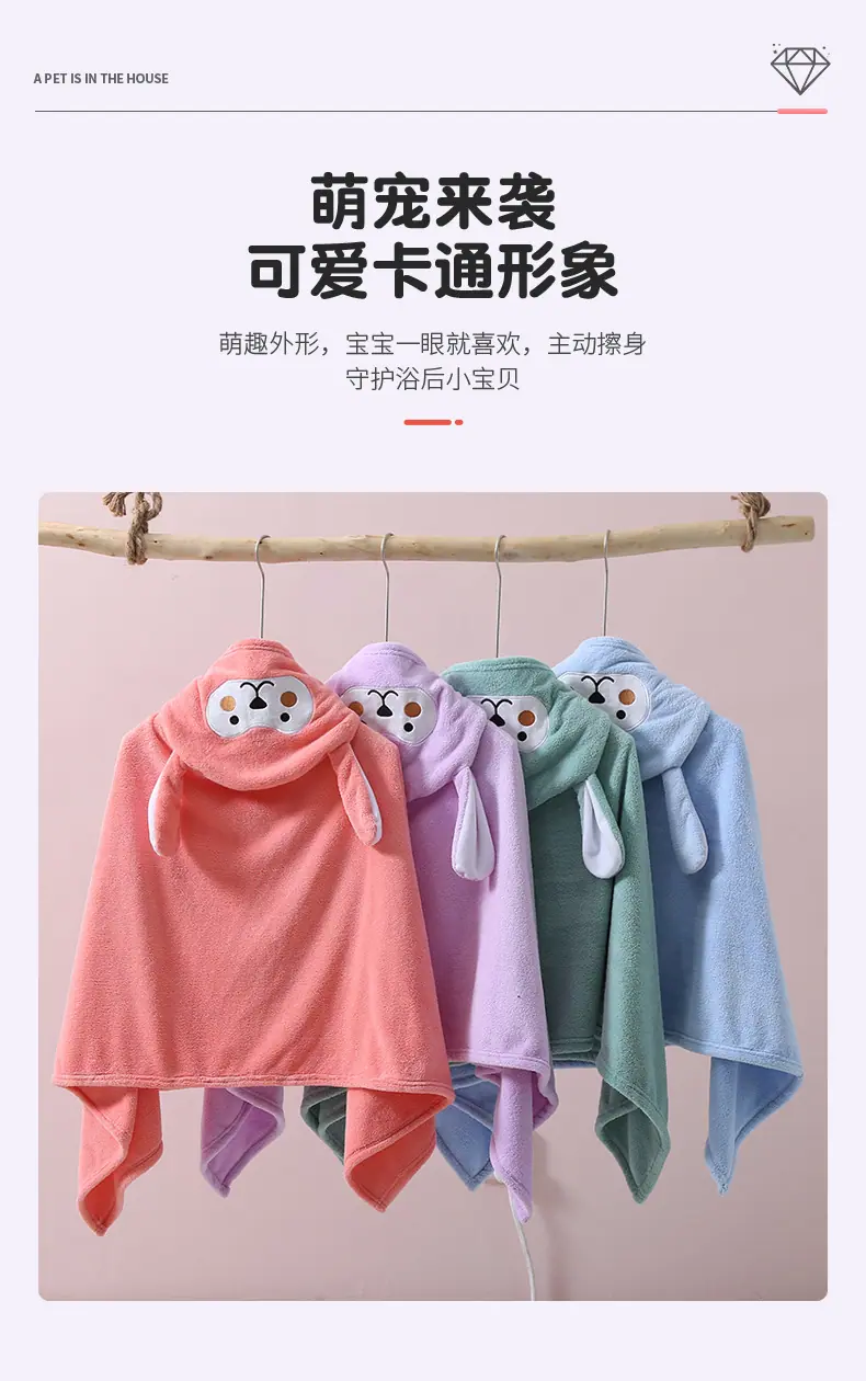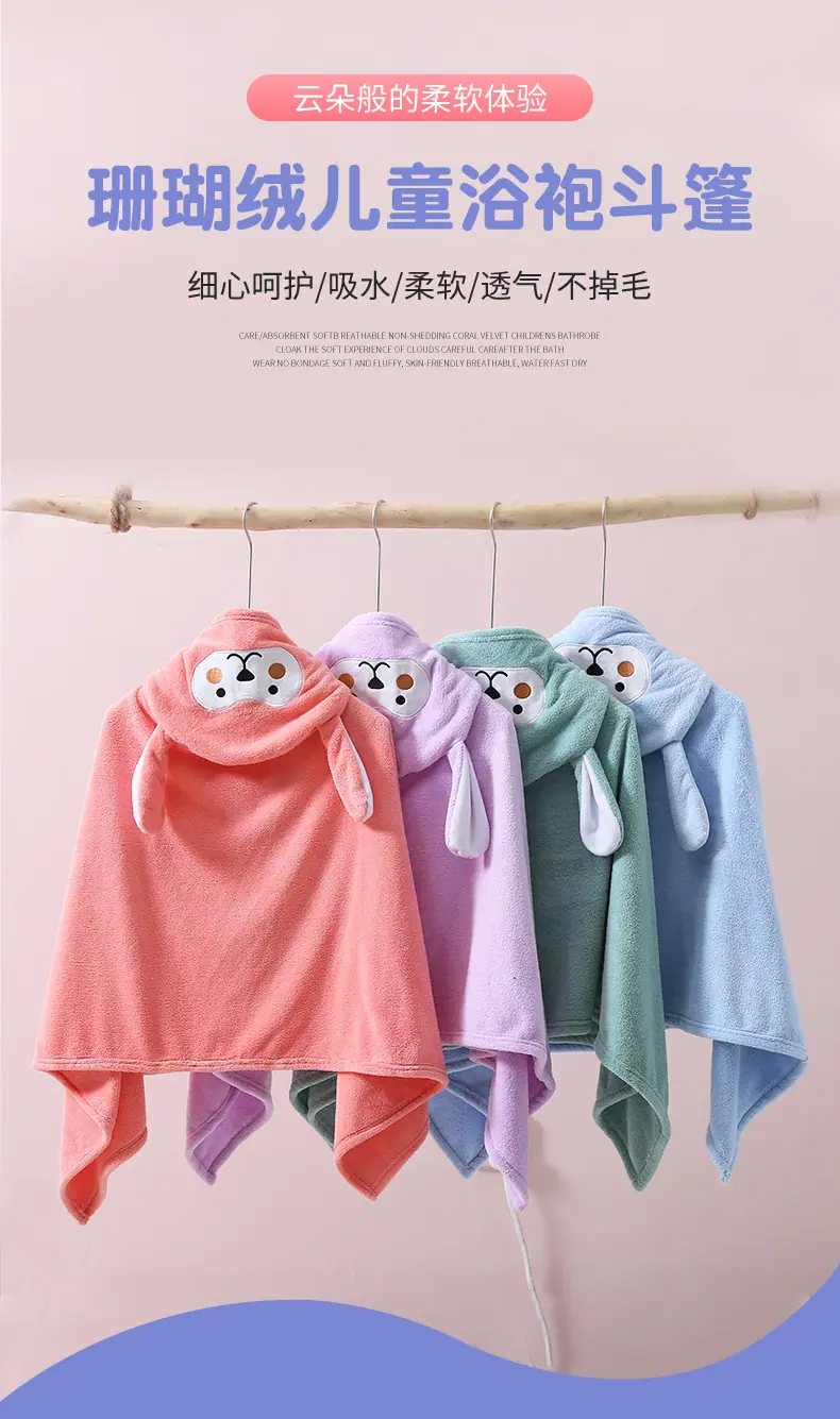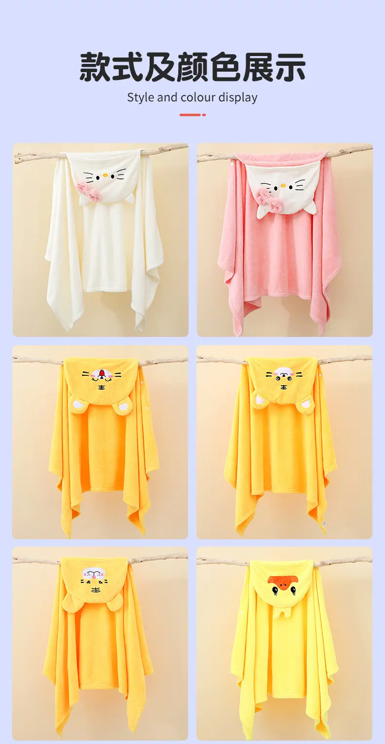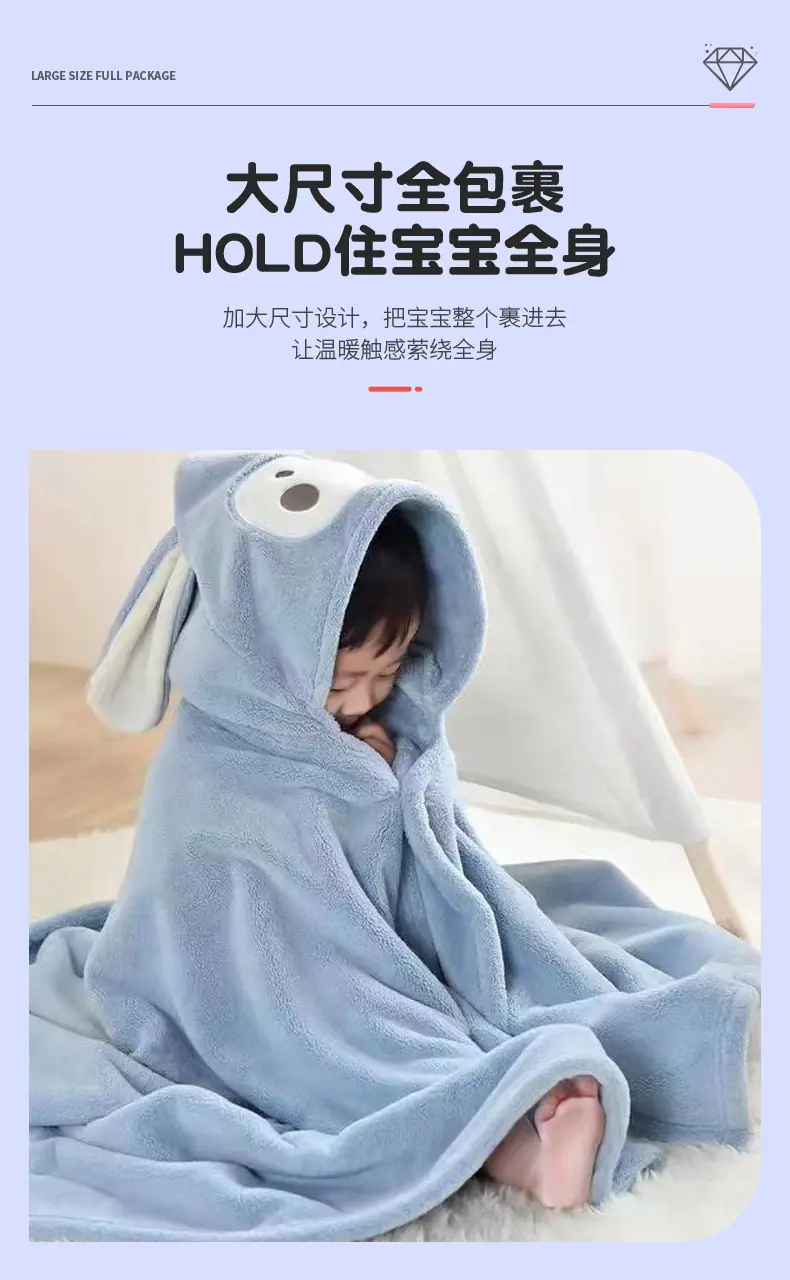 Capa Bata para Bebé y Niño de Felpa Coral de Dibujos Animados con Capucha Toalla Capa Suave Absorbente para Baño de Bebé