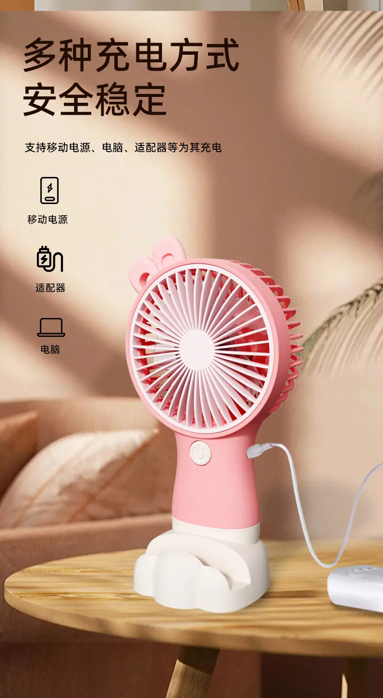 Ventilador Pequeño de Verano Enchufable Carga USB Ventilador Pequeño Portátil con Soporte Mini de Mano Ventilador Pequeño al por Mayor