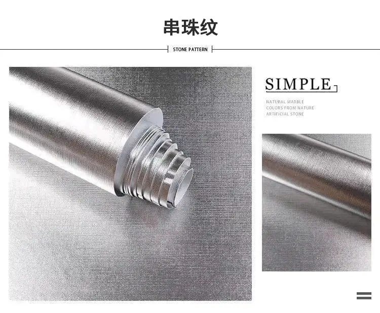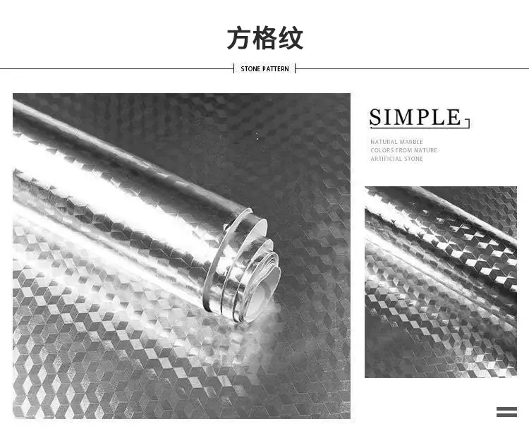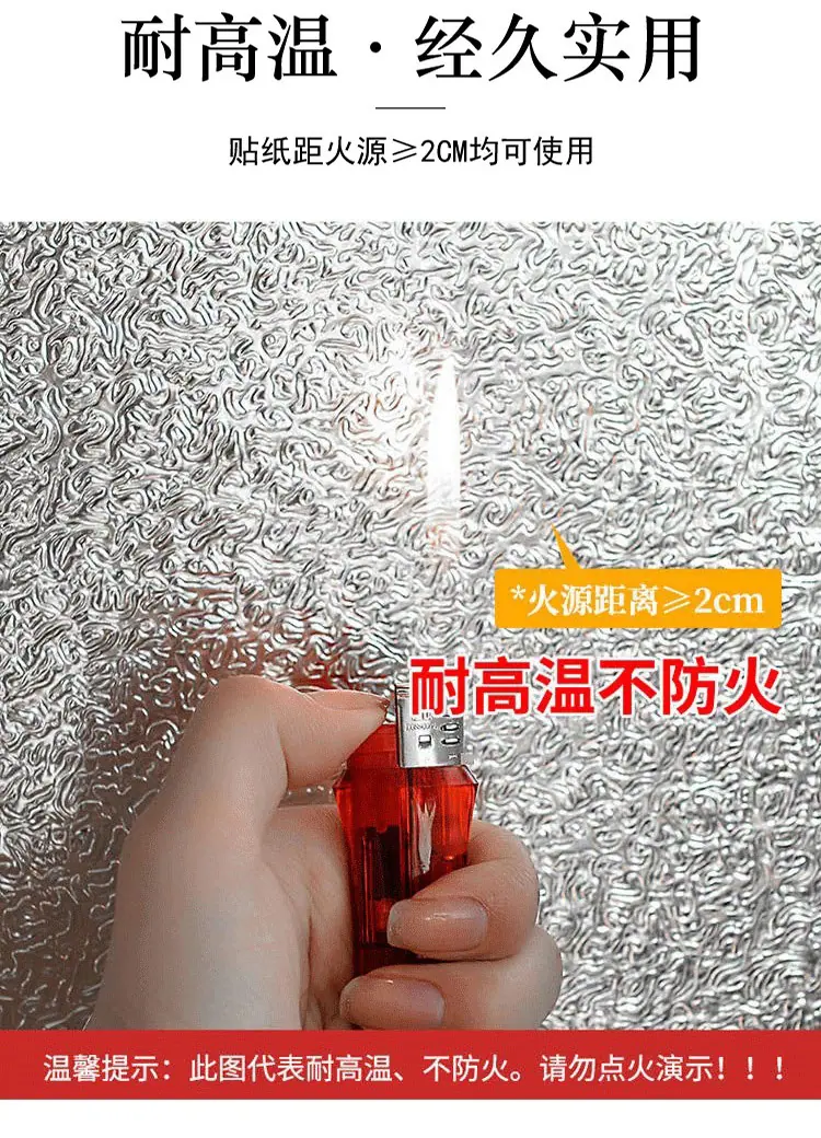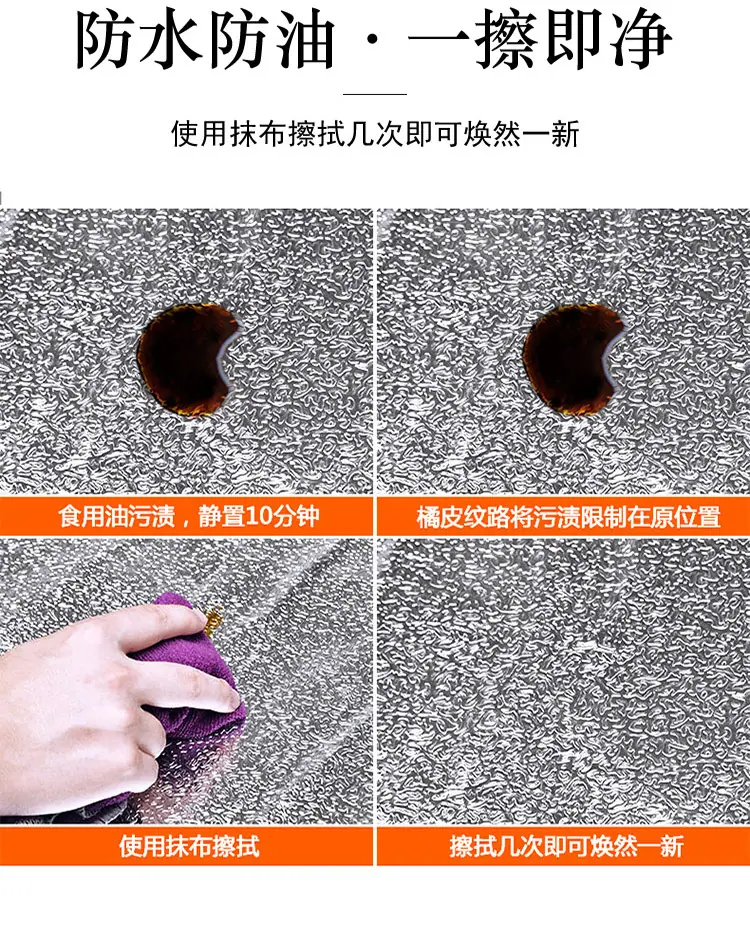 El papel de aluminio autoadhesivo para cocina está hecho de material de PVC saludable y no tóxico. Es a prueba de aceite, a prueba de humedad, ignífugo, fácil de limpiar y el frente se puede fregar.