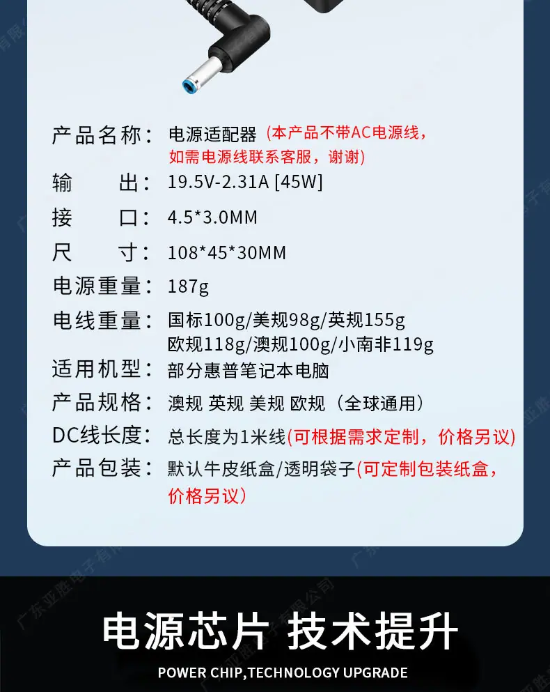 Brand new, 19.5v-2.31a 45w [4.5*3.0mm] small blue port