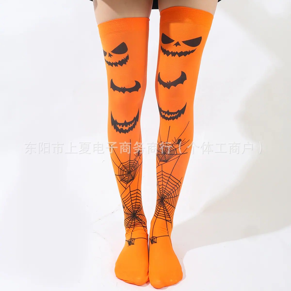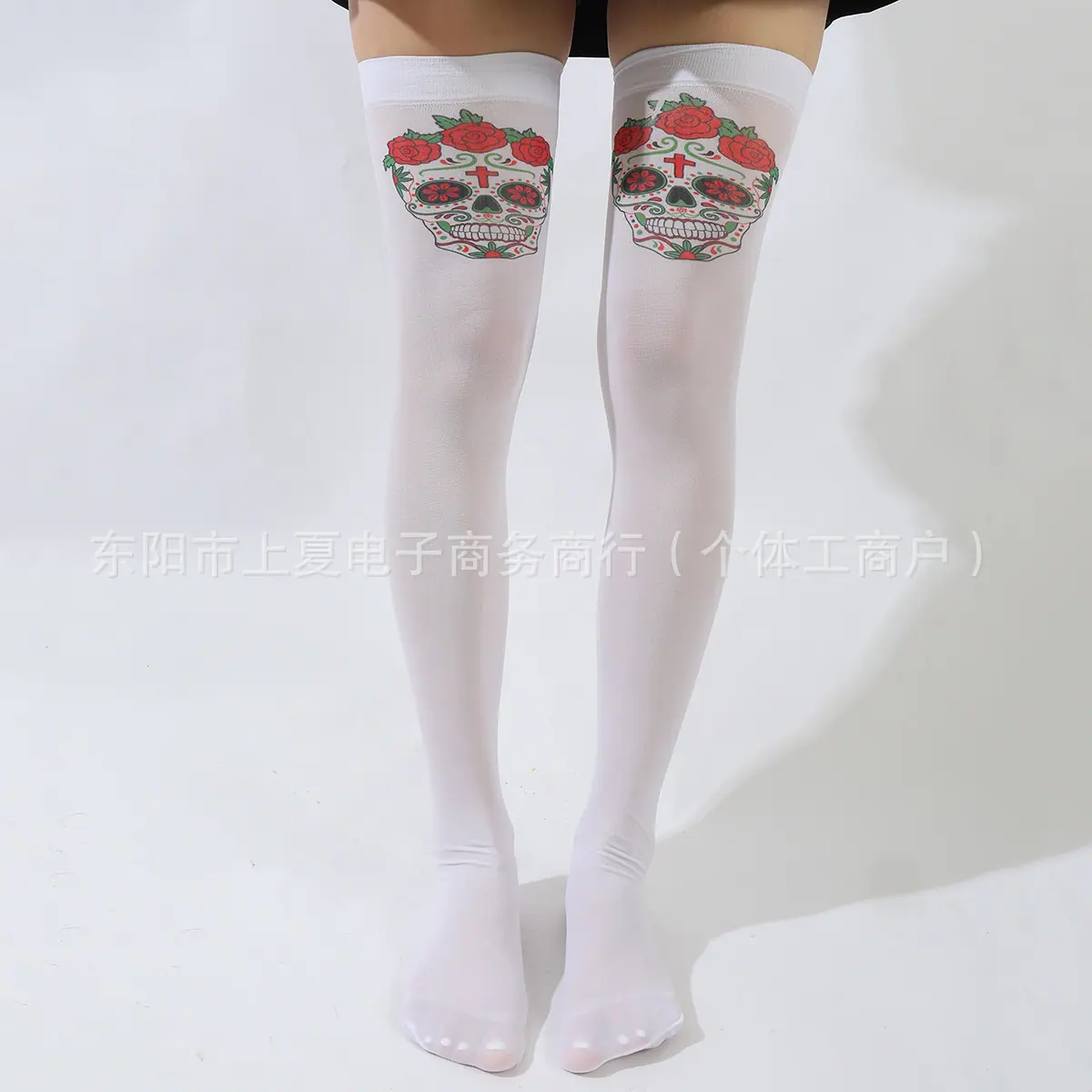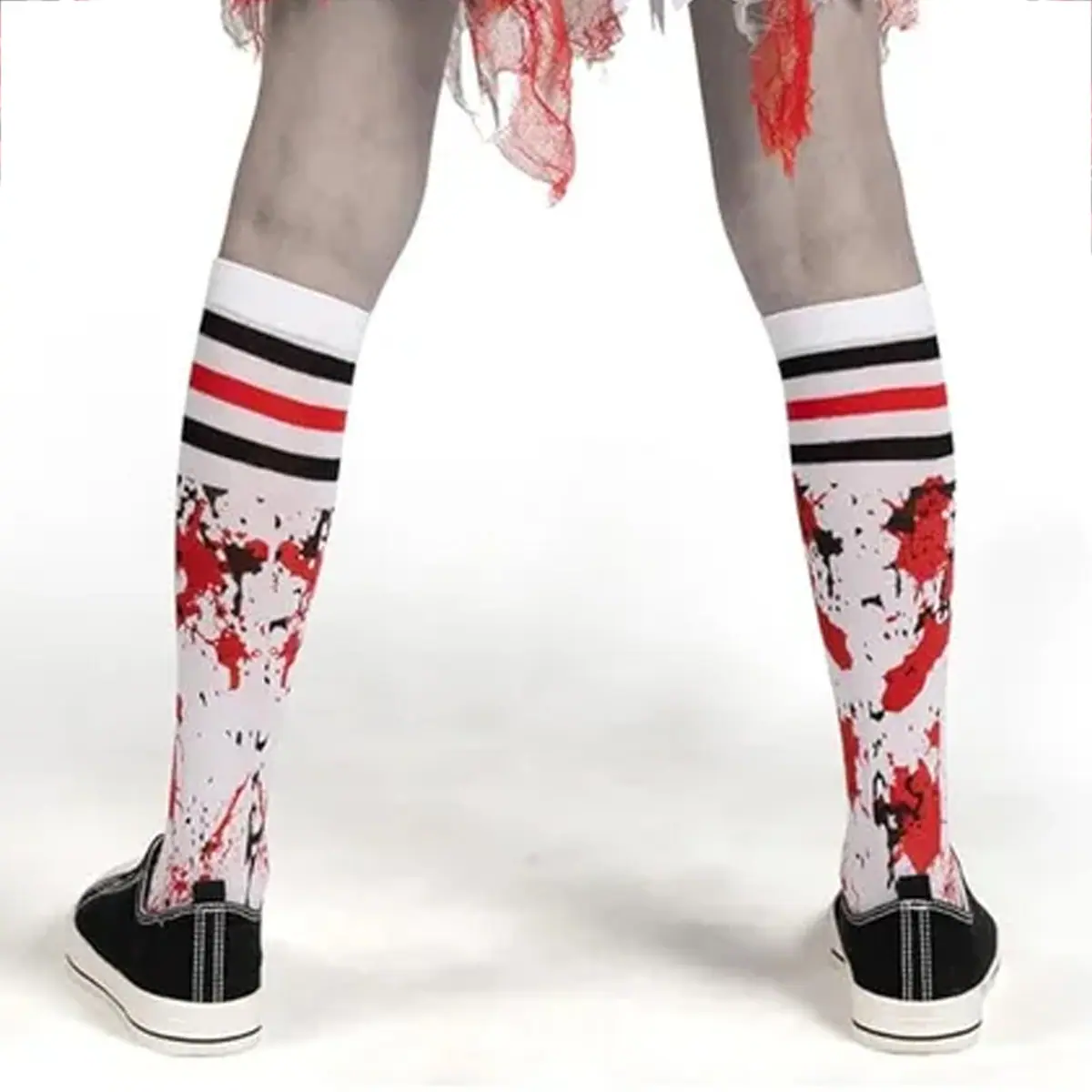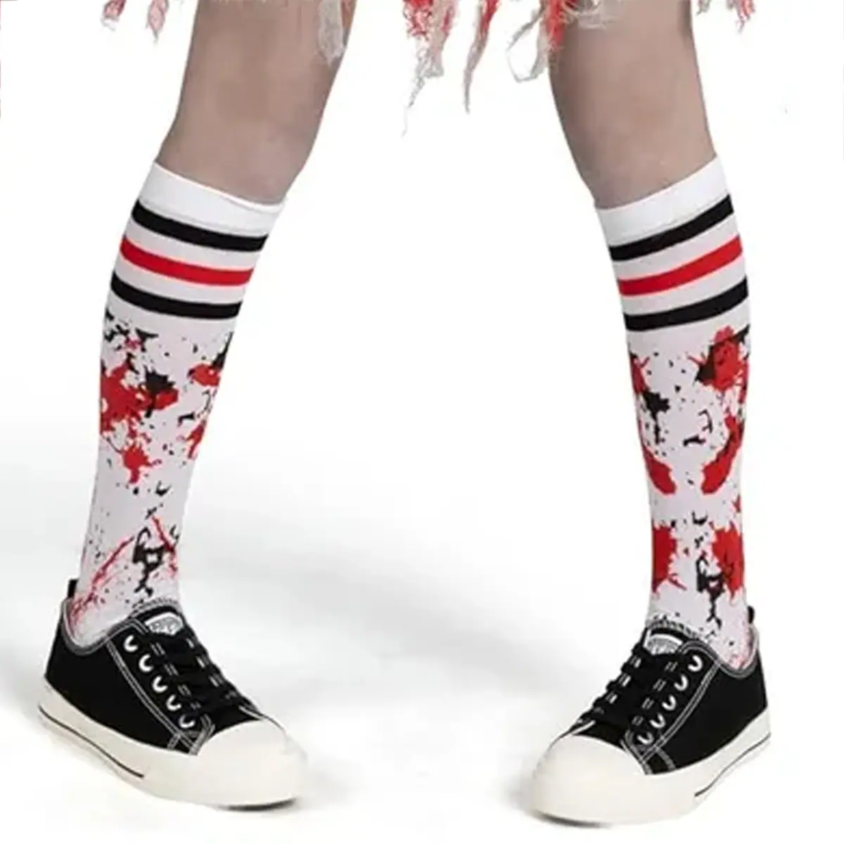 Calcetines estampados de Halloween transfronterizos, calcetines largos hasta la rodilla en forma de diamante con corazón para fiesta, cosplay, atuendo moderno