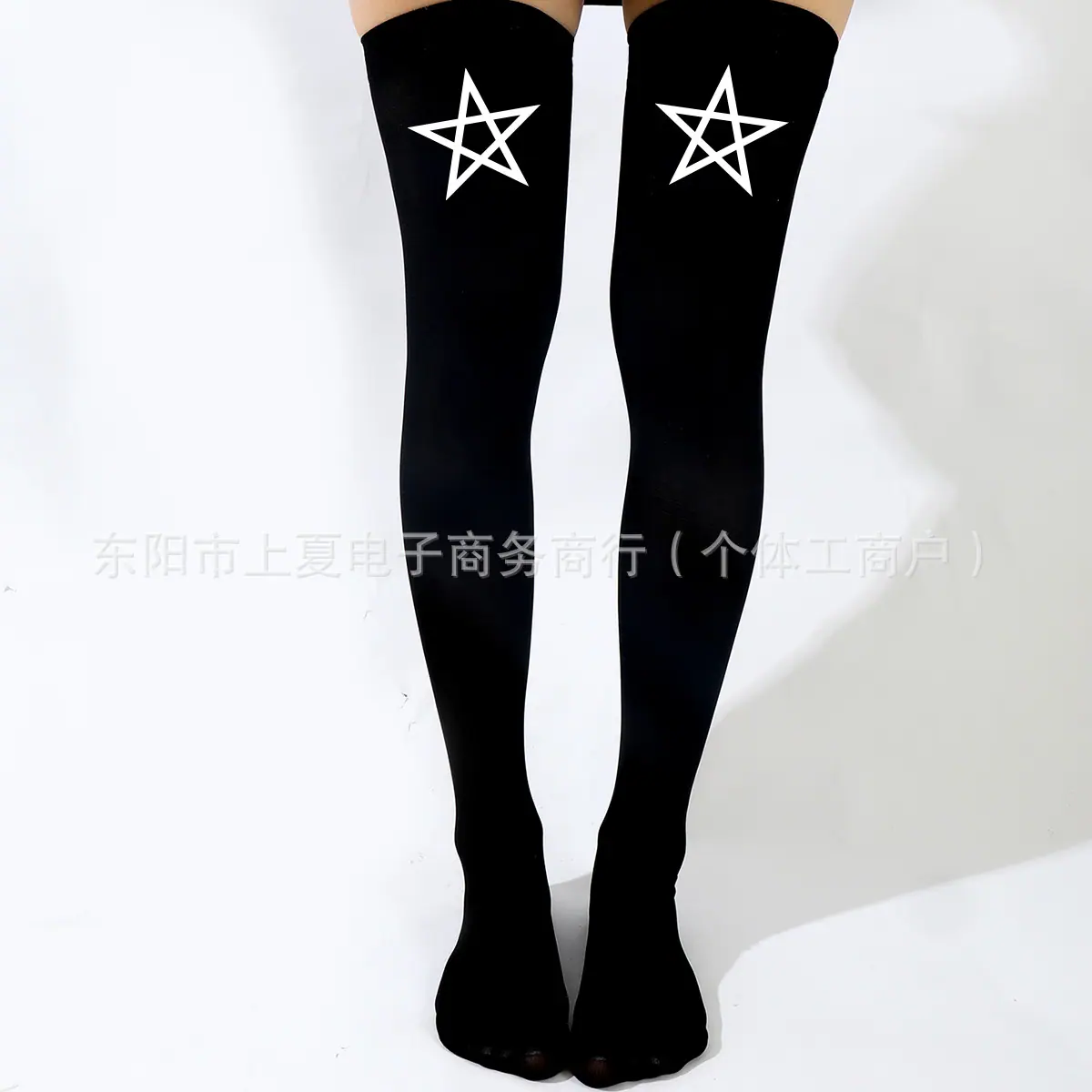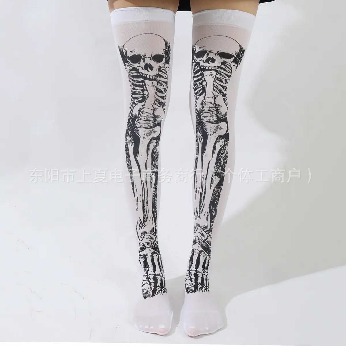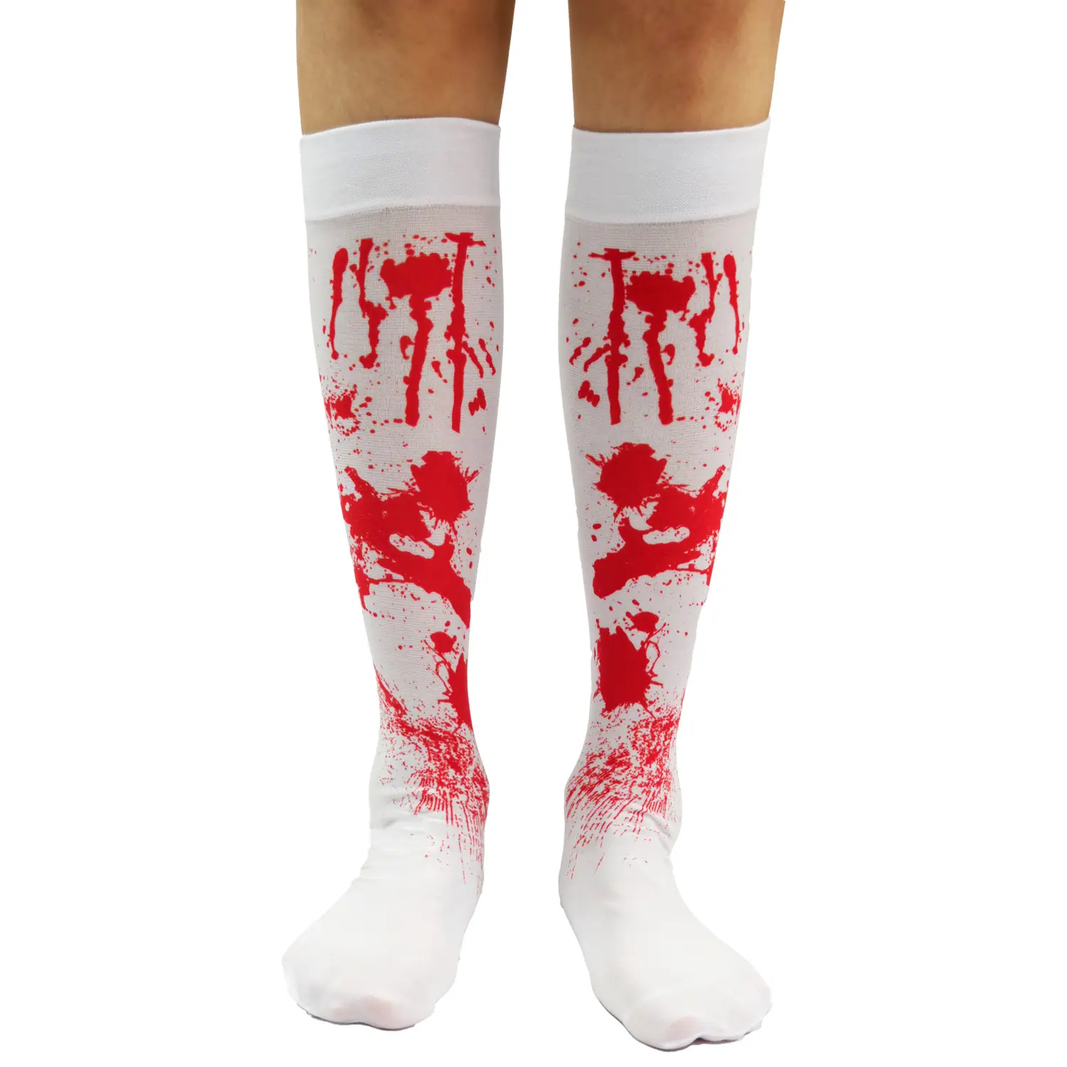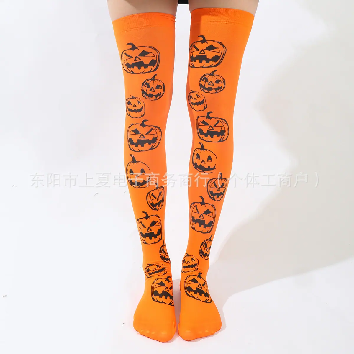 Calcetines estampados de Halloween transfronterizos, calcetines largos hasta la rodilla en forma de diamante con corazón para fiesta, cosplay, atuendo moderno