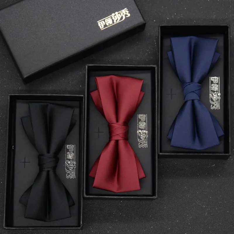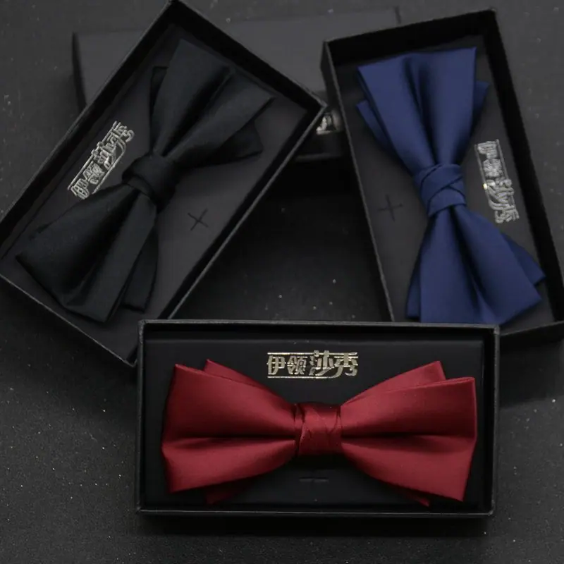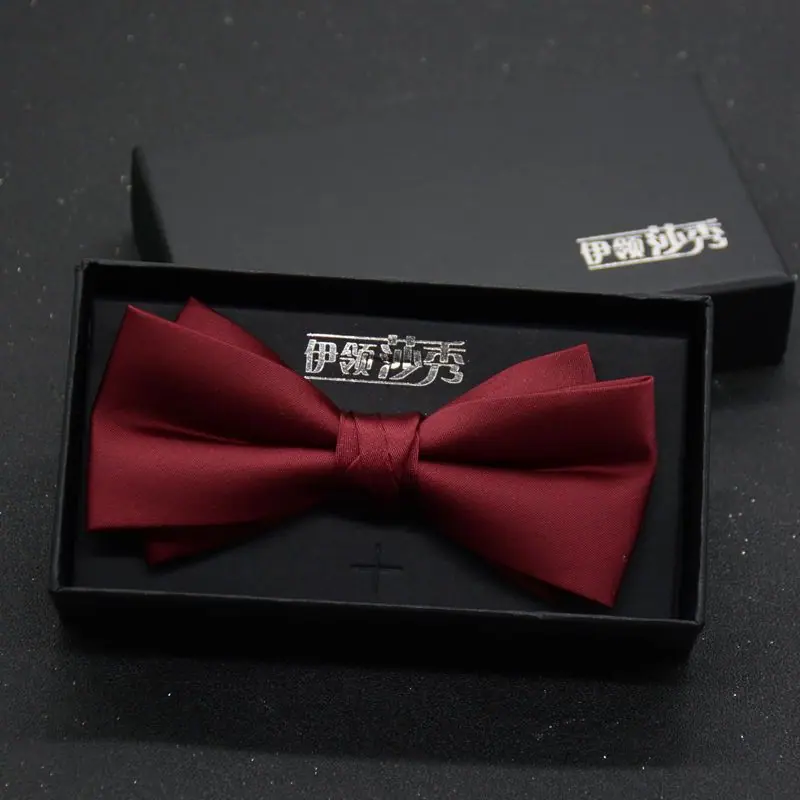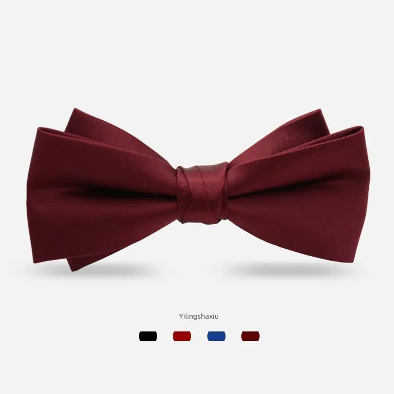 Corbata de Lazo Vestido de Hombre Estilo Coreano Británico Negocios Novio Padrino Hermanos Boda Boda vino tinto Lazo Negro