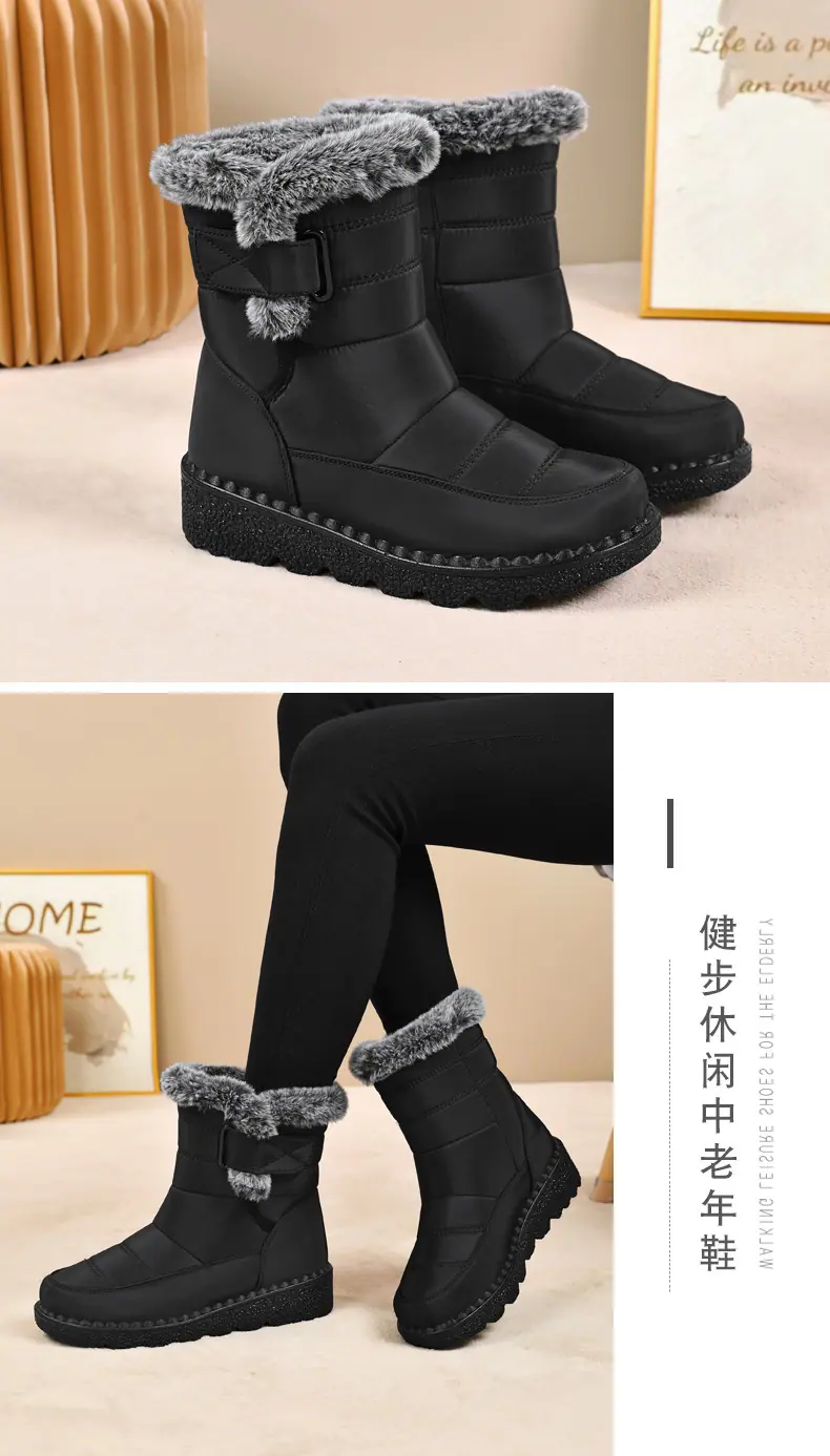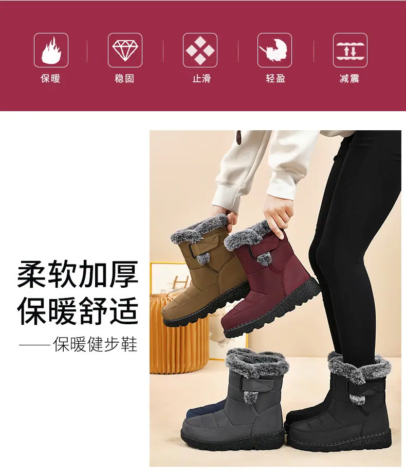 Botas de Nieve para Mujer Invierno Transfronterizo Talla Grande Botas de Mujer Poliuretano Más Terciopelo Engrosado Algodón Botas de Caña Alta Suela Gruesa Zapatos de Algodón Venta al por Mayor