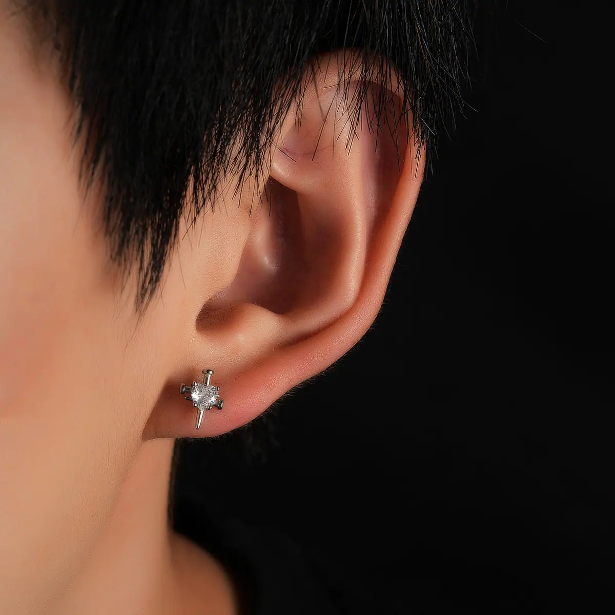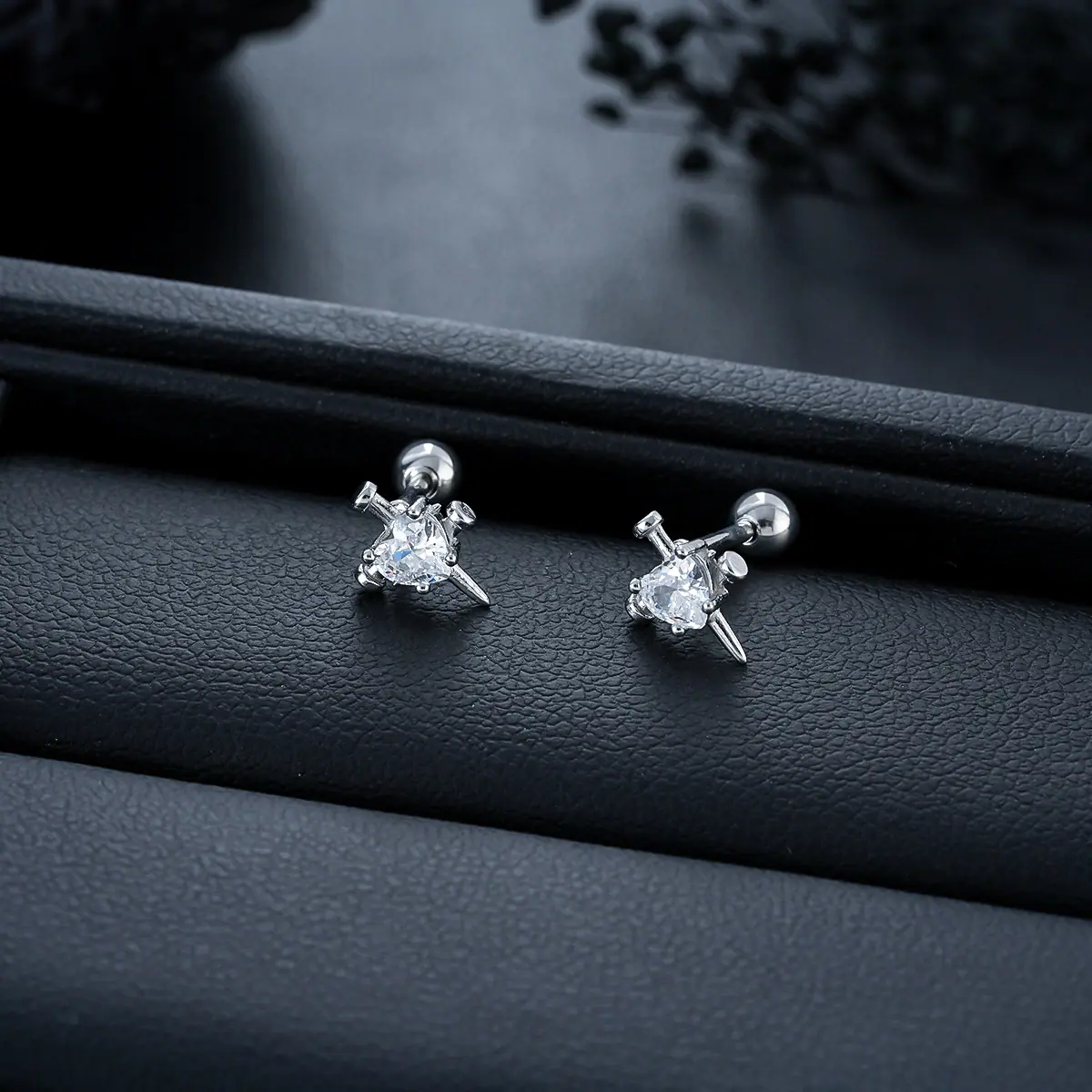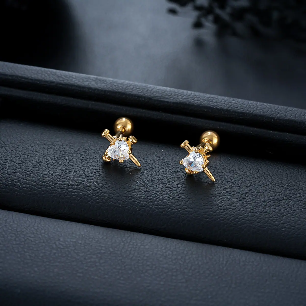 Nuevos Pendientes de Tuerca de Acero de Titanio con Zircón en Forma de Corazón de Amor para Hombre Pendientes de Cruz con Tornillo de Alta Gama Modernos para Mujer Joyería de Nicho al Por Mayor