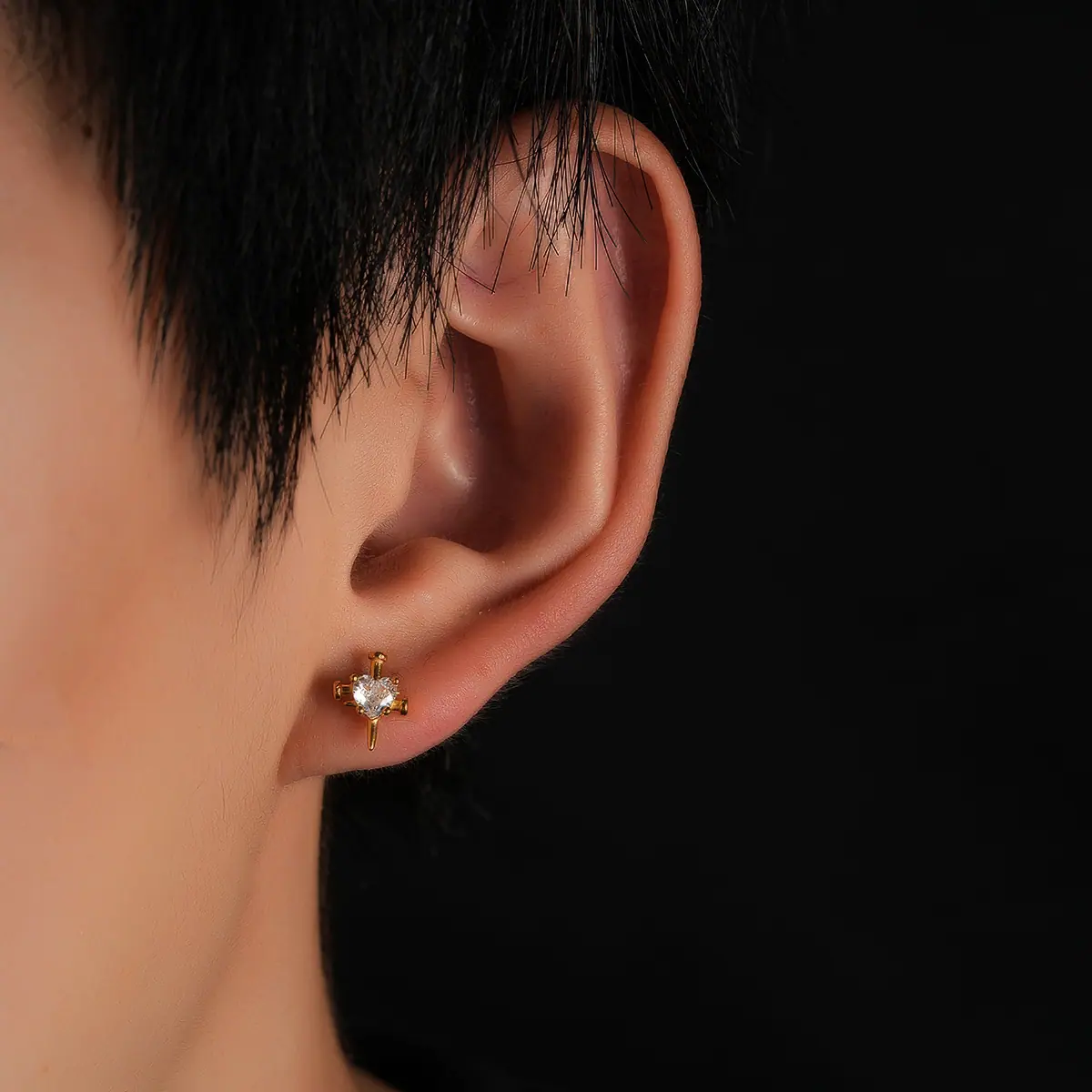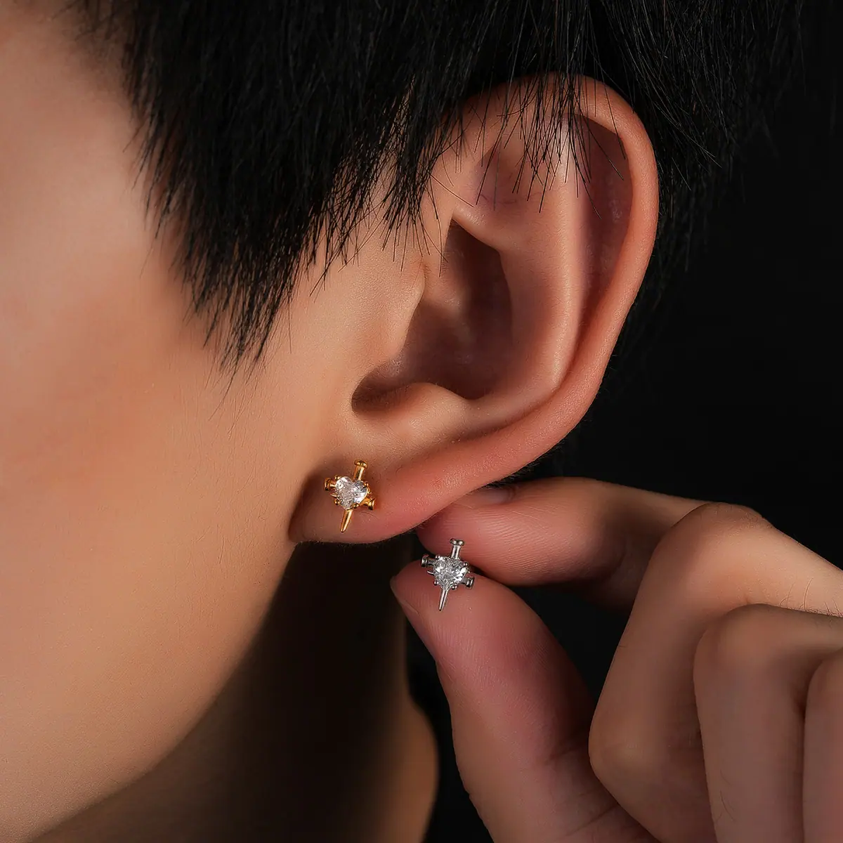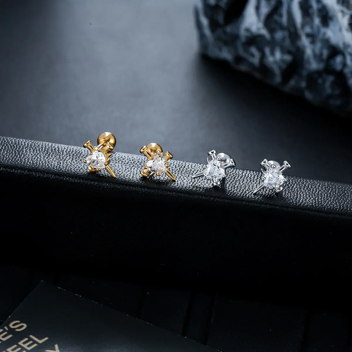 Nuevos Pendientes de Tuerca de Acero de Titanio con Zircón en Forma de Corazón de Amor para Hombre Pendientes de Cruz con Tornillo de Alta Gama Modernos para Mujer Joyería de Nicho al Por Mayor