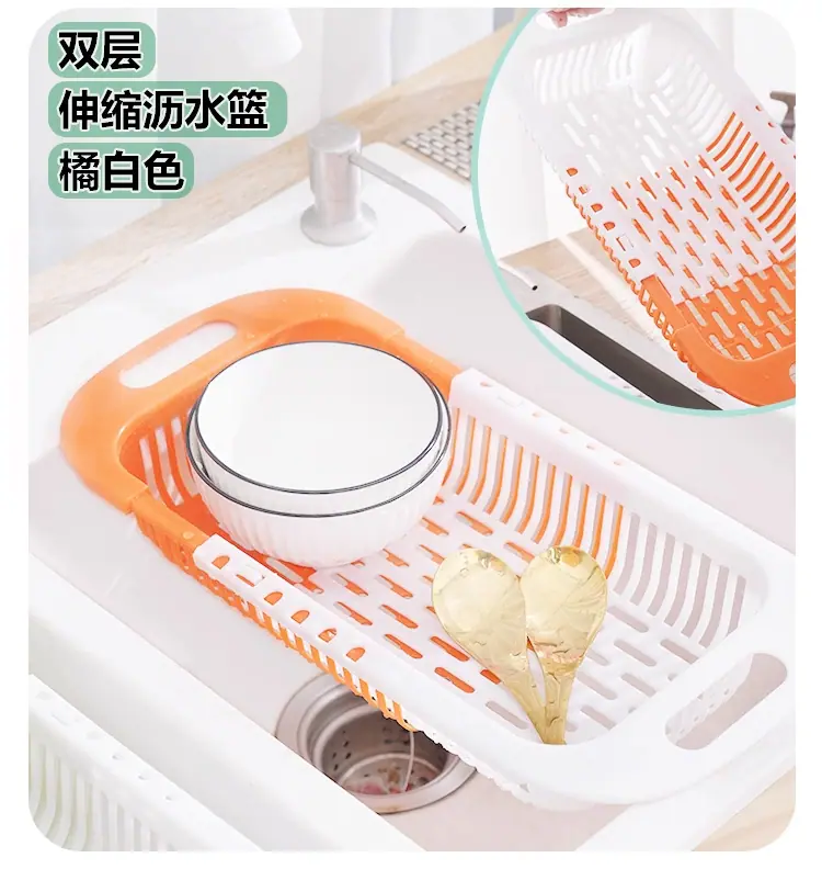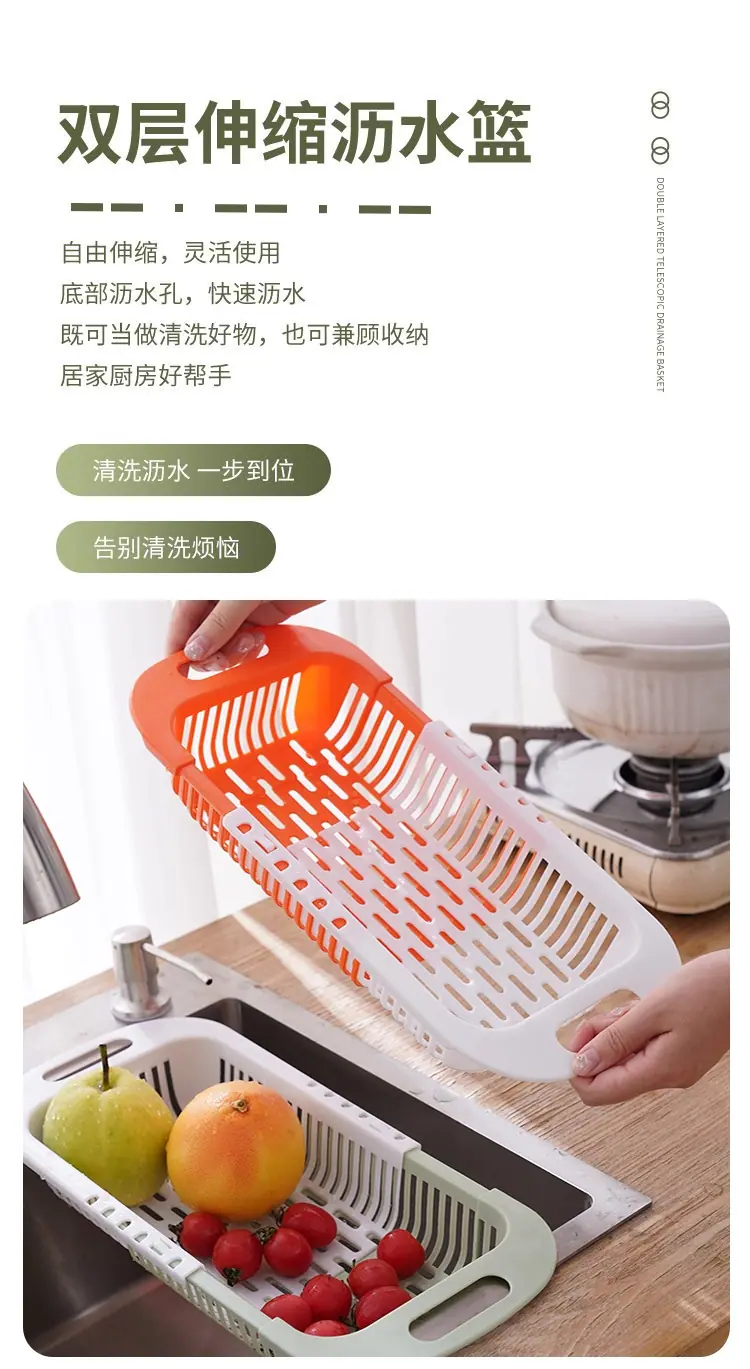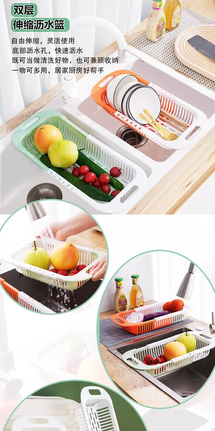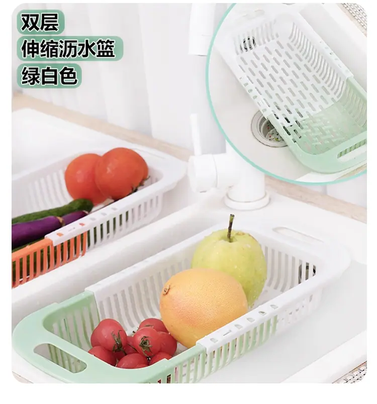 Compra Cesta de Drenaje Doble Capa para Lavar Verduras Multifuncional Retráctil Doble Capa Almacenamiento de Cocina Sala de Estar Fregadero para Frutas Fregadero para Lavar Platos Plástico al por mayor en Joom.pro