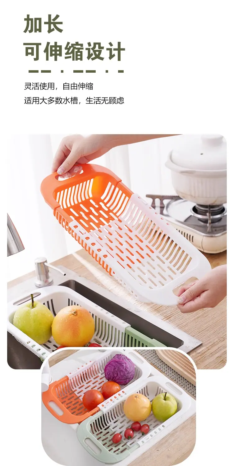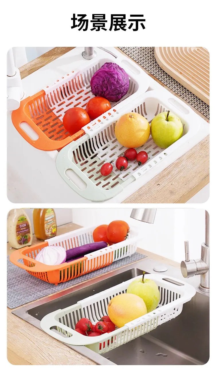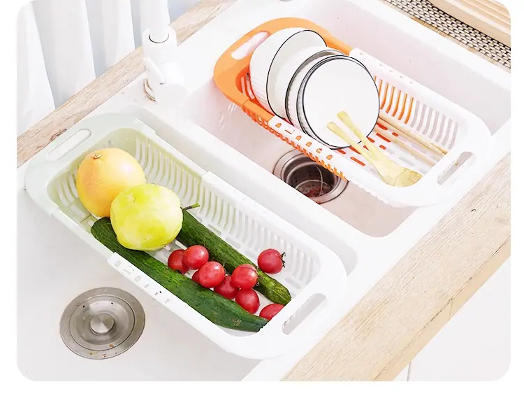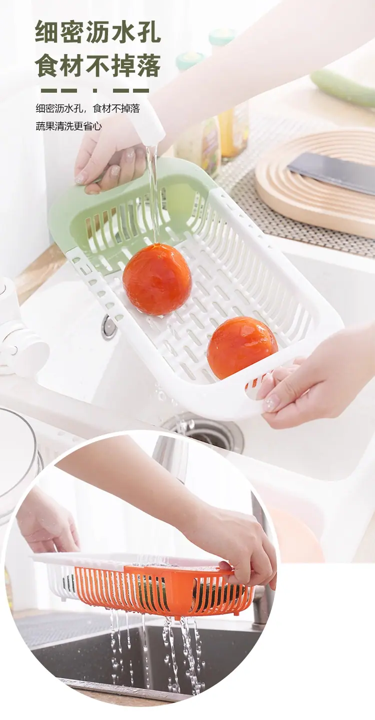 Compra Cesta de Drenaje Doble Capa para Lavar Verduras Multifuncional Retráctil Doble Capa Almacenamiento de Cocina Sala de Estar Fregadero para Frutas Fregadero para Lavar Platos Plástico al por mayor en Joom.pro