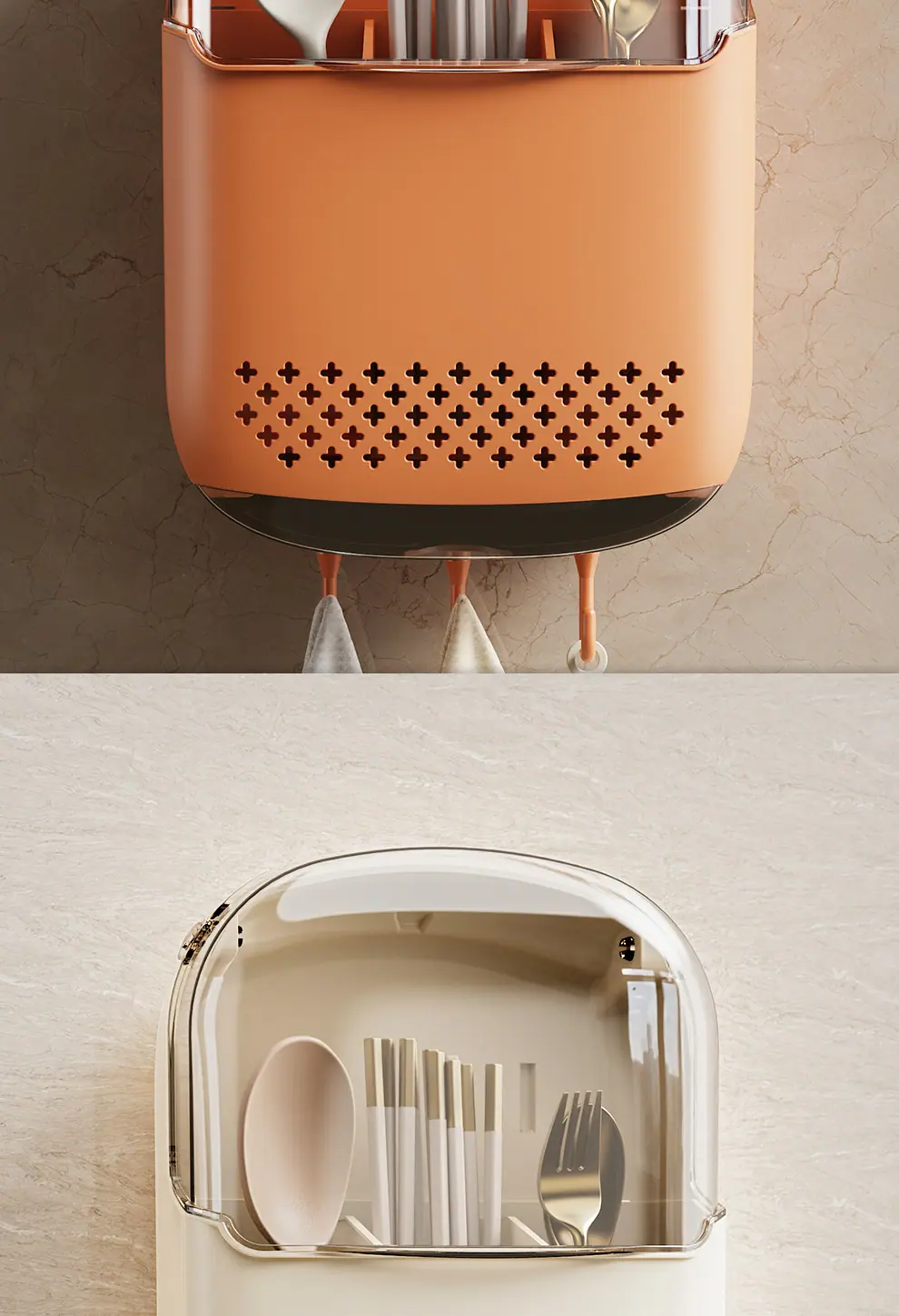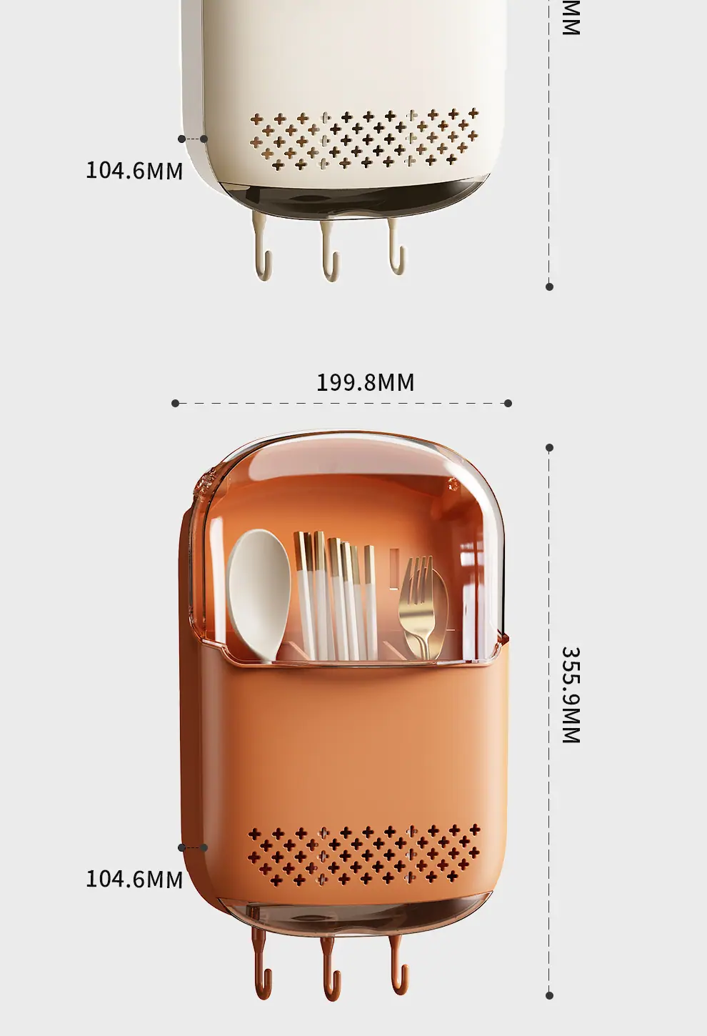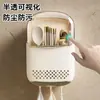 Soporte para Palillos de Montaje en Pared para Uso Doméstico, Caja de Almacenamiento Transparente para Utensilios de Cocina y Palillos, Rejilla Multifuncional para Palillos a Prueba de Polvo y con Drenaje de Agua