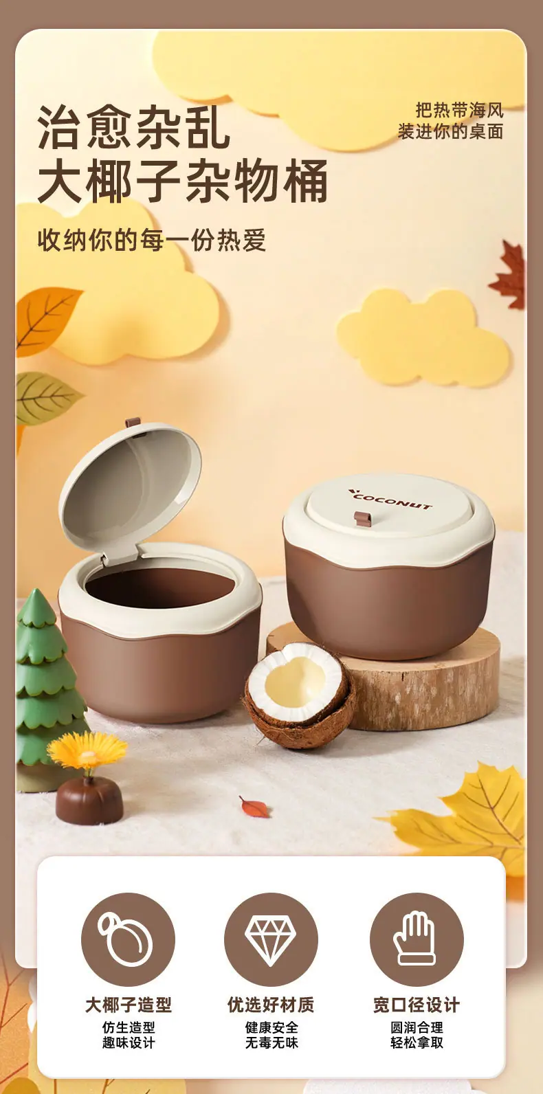 Bote de Basura de Escritorio Lindo Pequeño Tipo Presión Mini Cubo de Almacenamiento Creativo Oficina Tapa Abatible Cesto de Papelera Caja de Almacenamiento