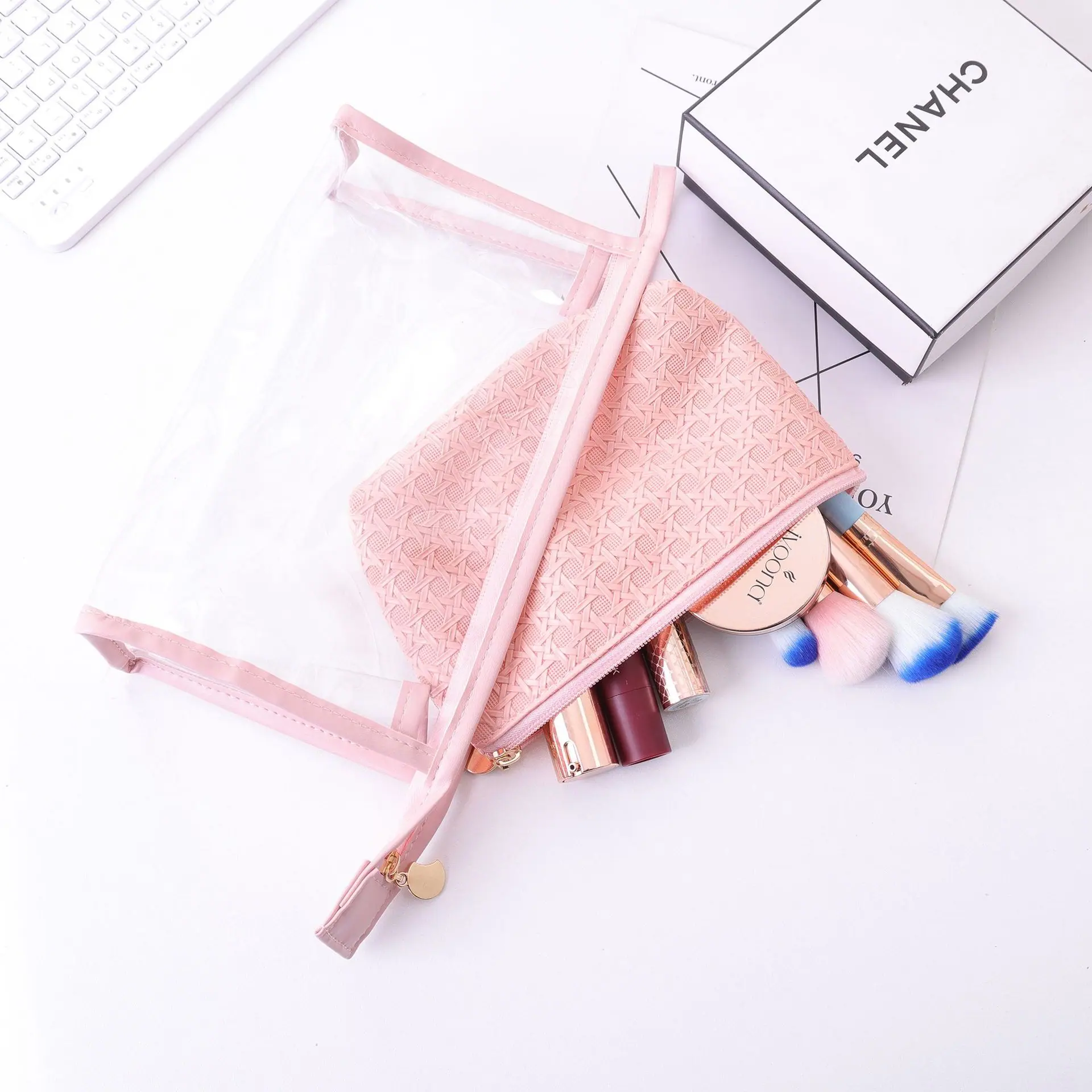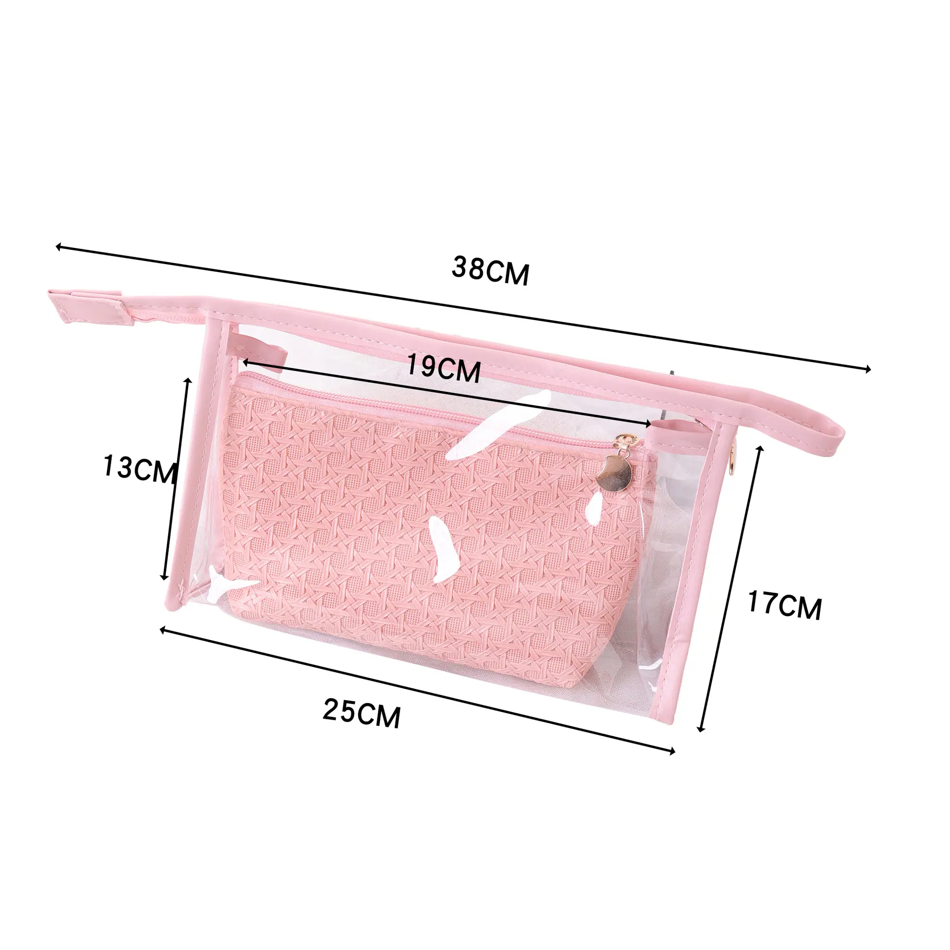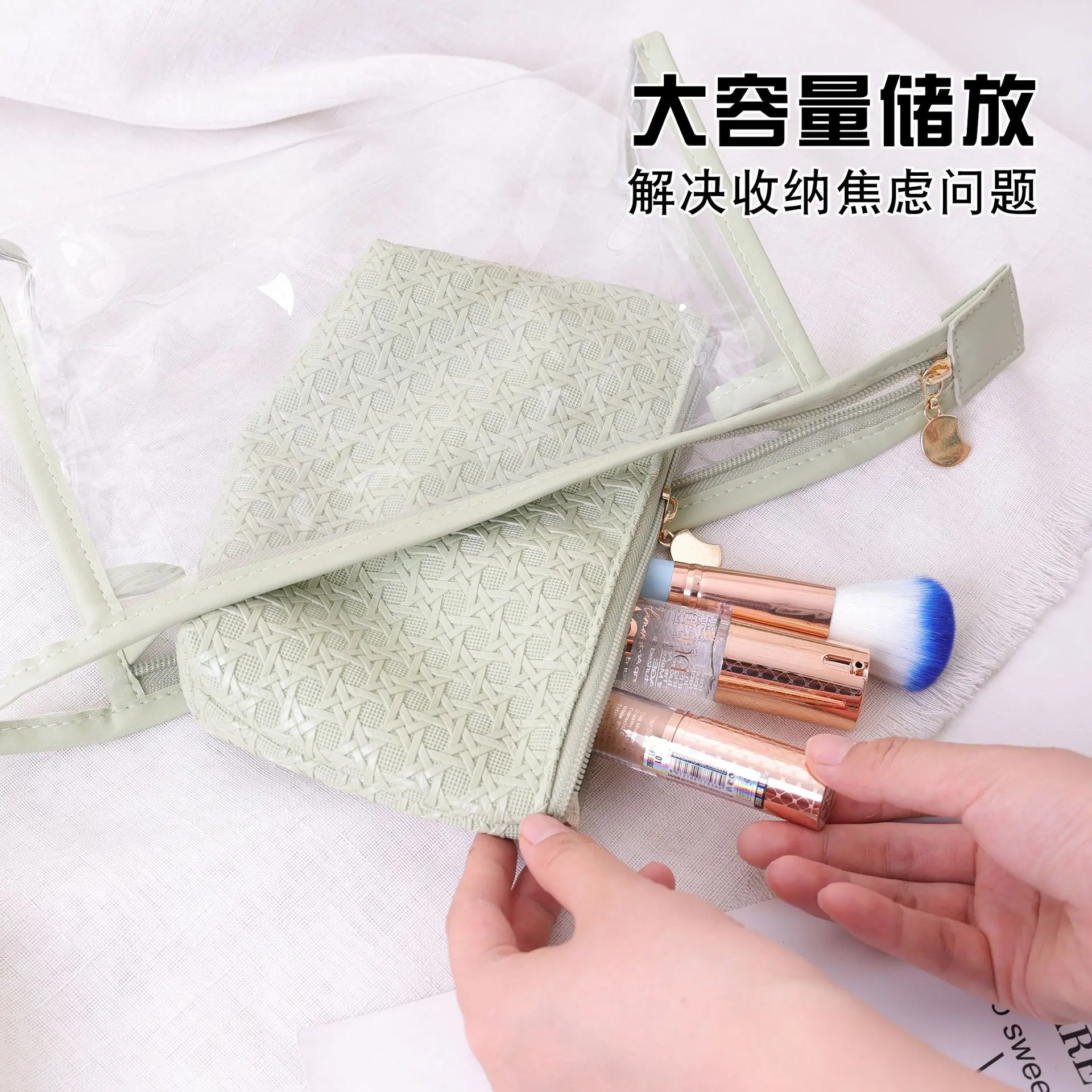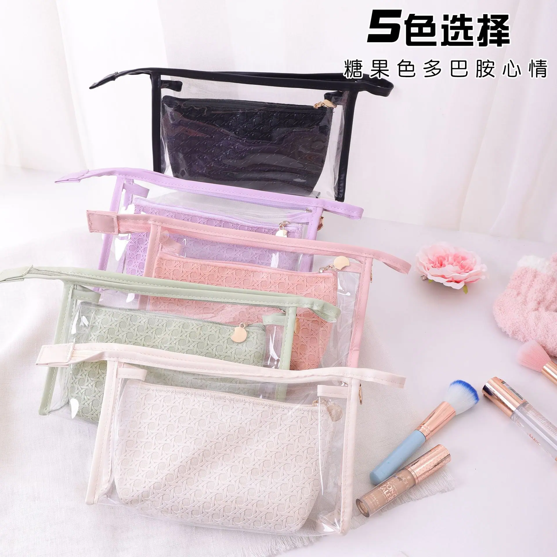 Bolsa de Cosméticos Dos en Uno de PVC Bolsa de Aseo para Mujer Bolsa de Almacenamiento de Cosméticos para Mujer Impermeable Gran Capacidad Color Caramelo