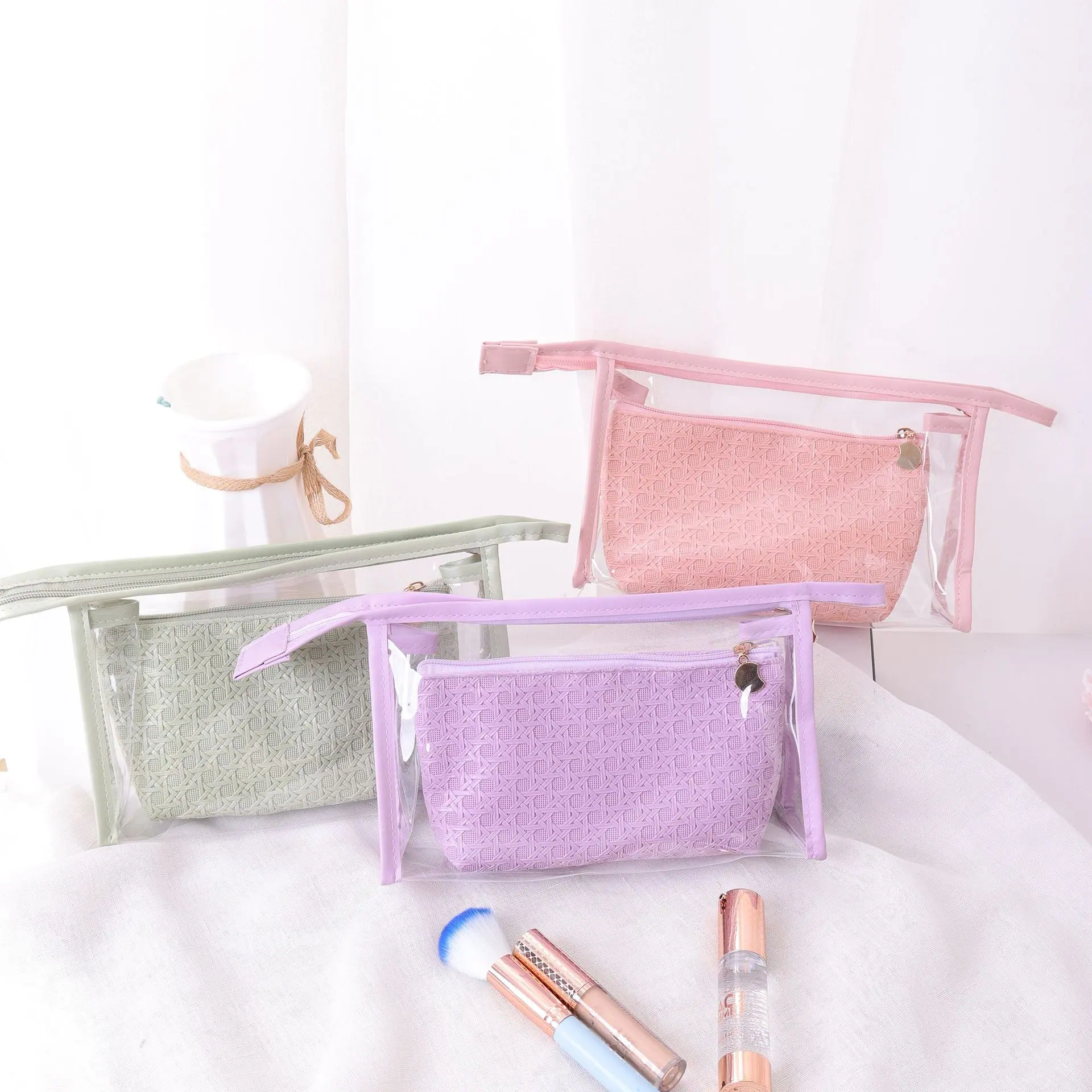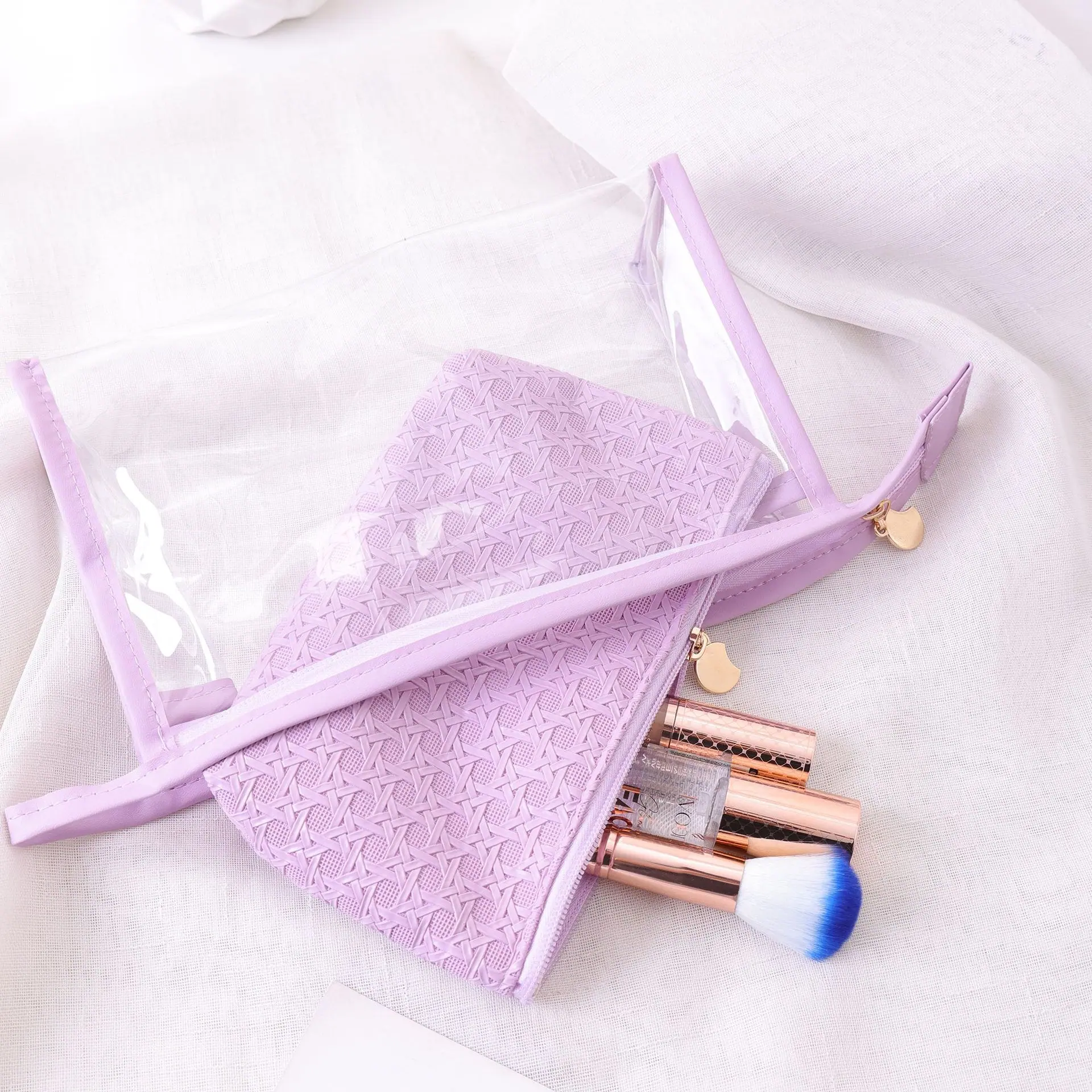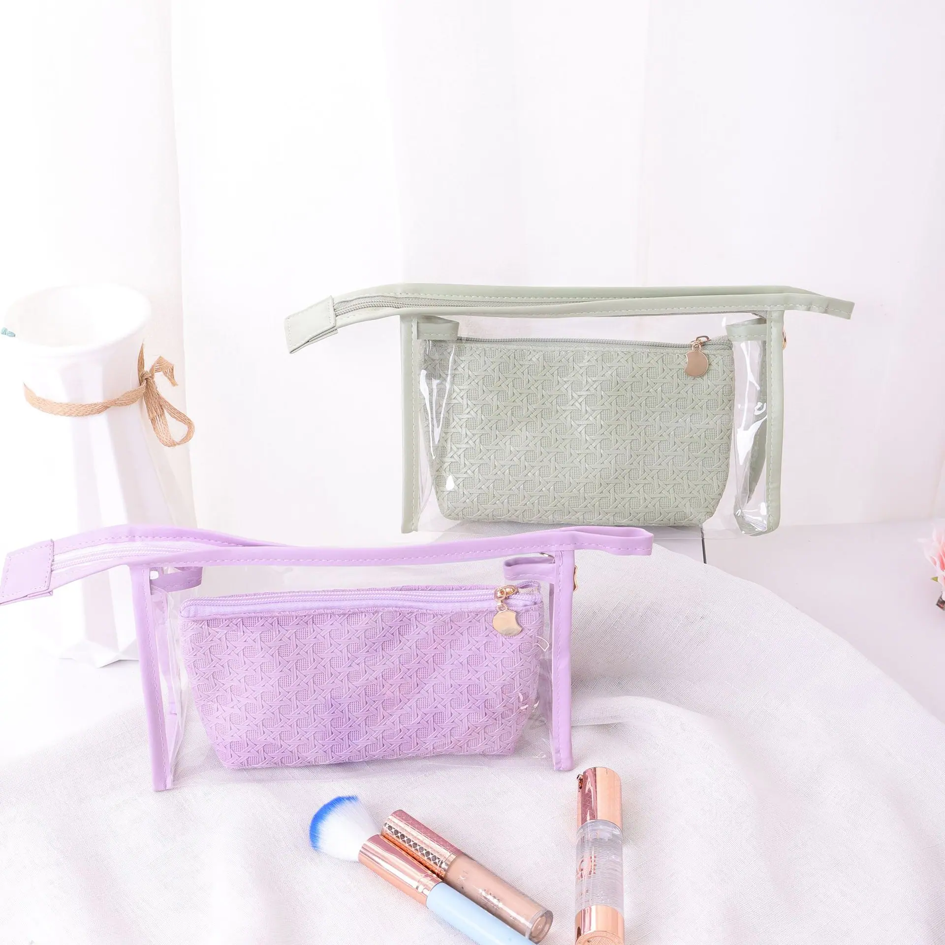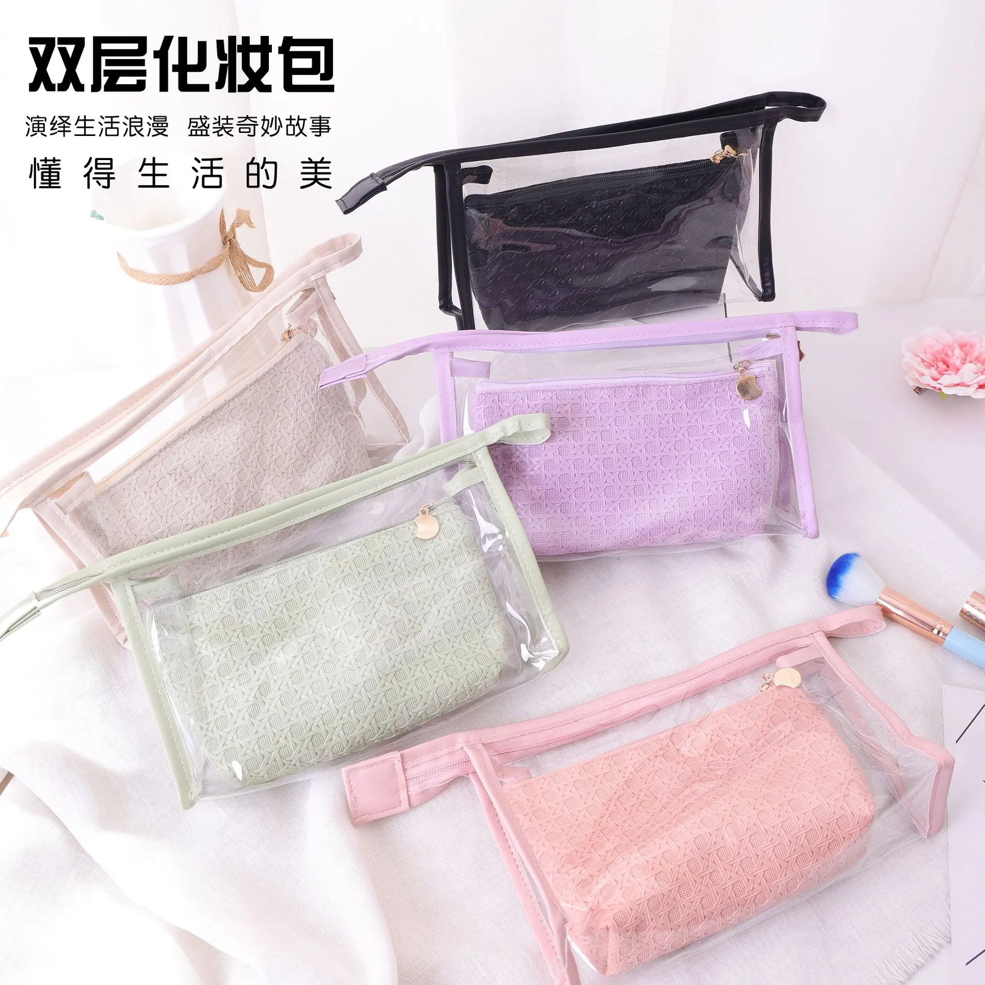 Bolsa de Cosméticos Dos en Uno de PVC Bolsa de Aseo para Mujer Bolsa de Almacenamiento de Cosméticos para Mujer Impermeable Gran Capacidad Color Caramelo