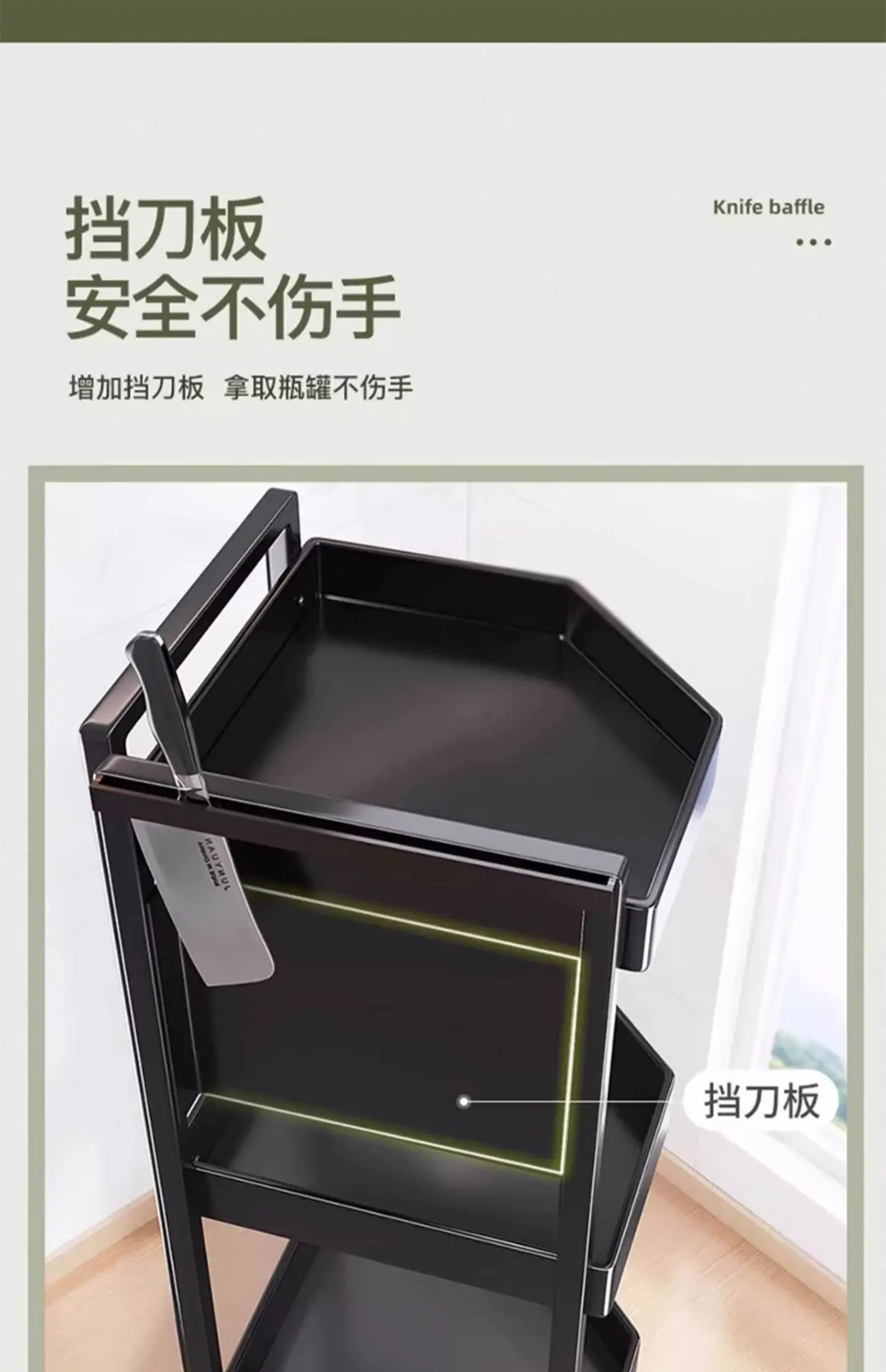 Black - 3 layers [large] triangle anti-rust carbon steel + knife holder + chopstick tube + hook * 3