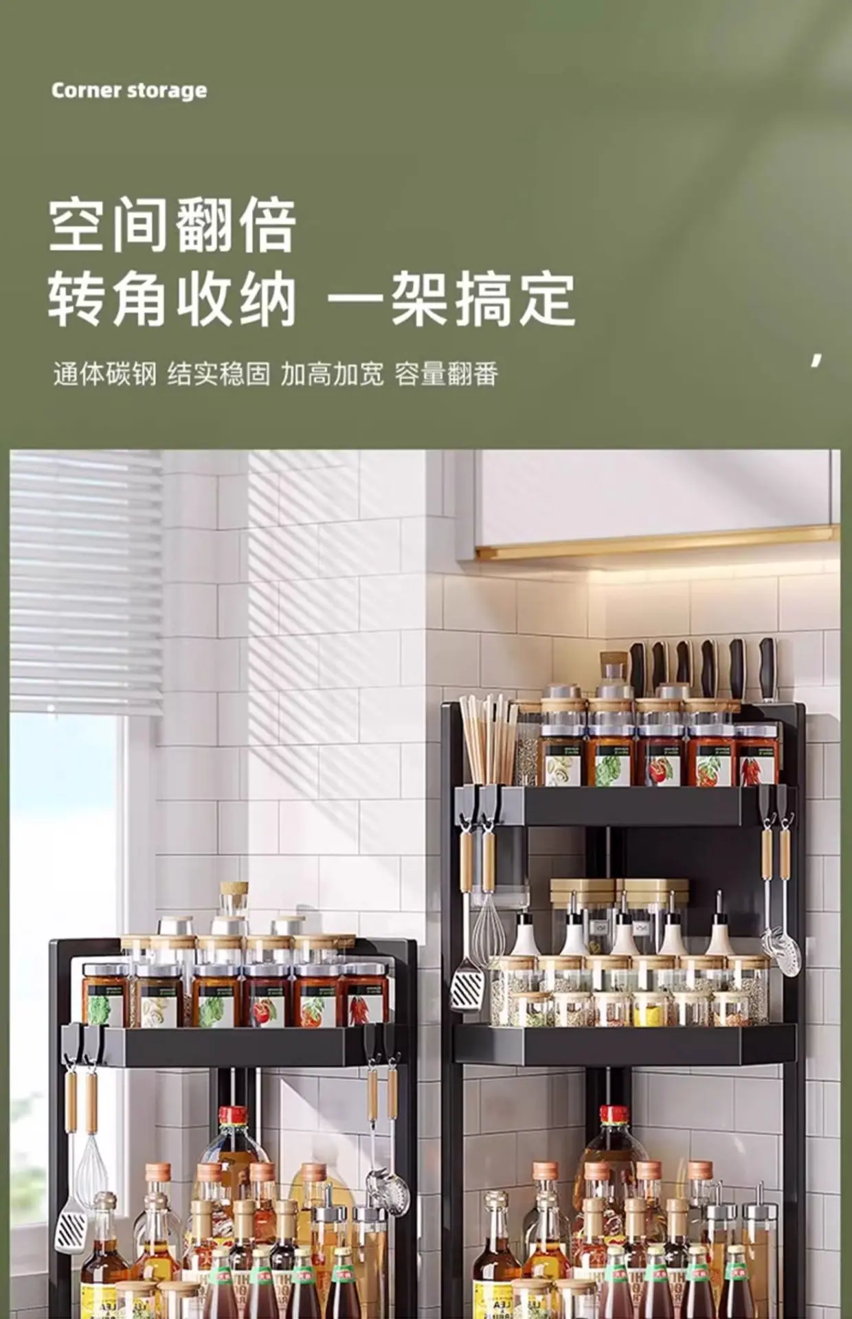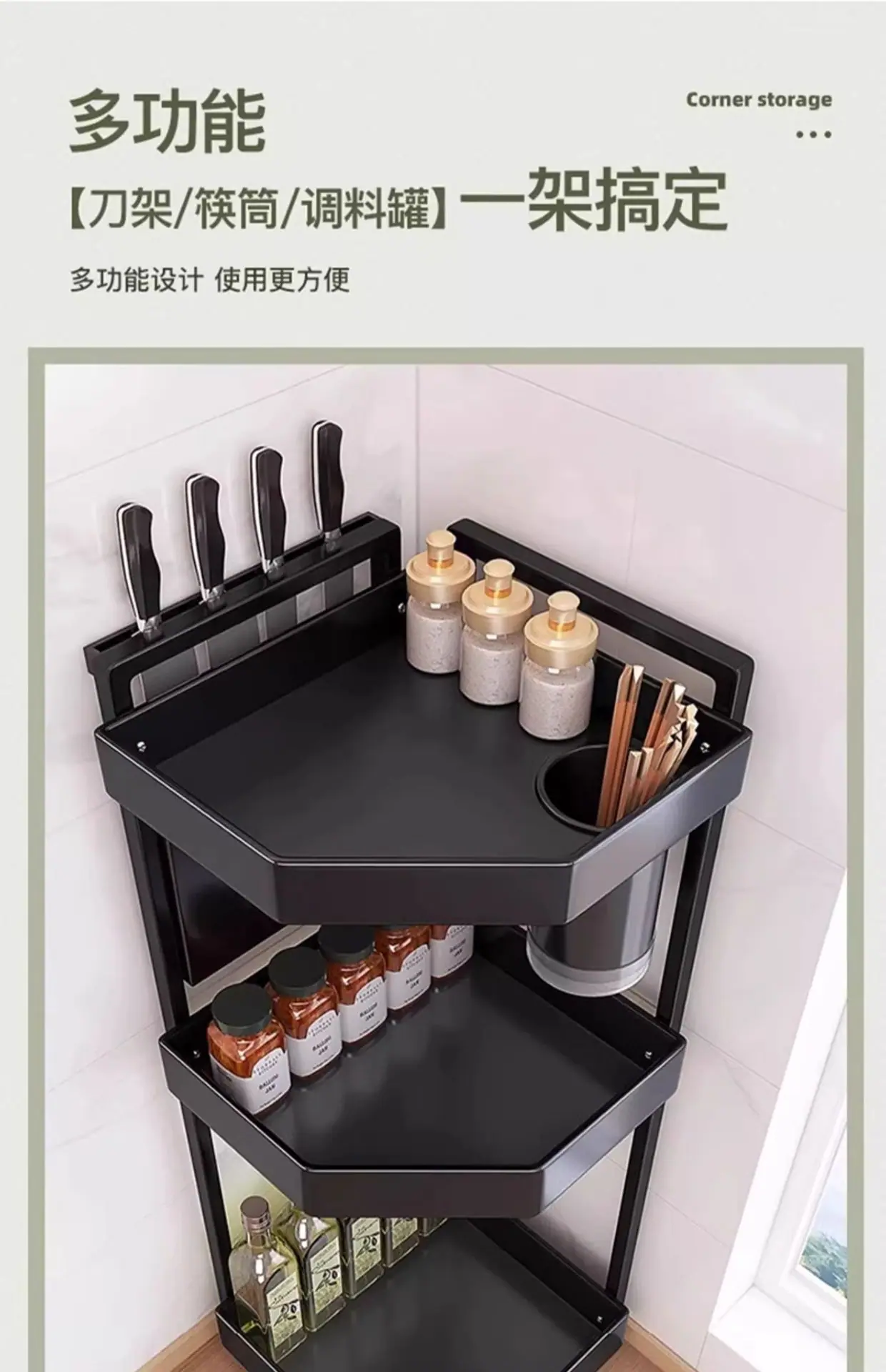 Estante de cocina esquinero multifuncional triangular para condimentos, ahorra espacio